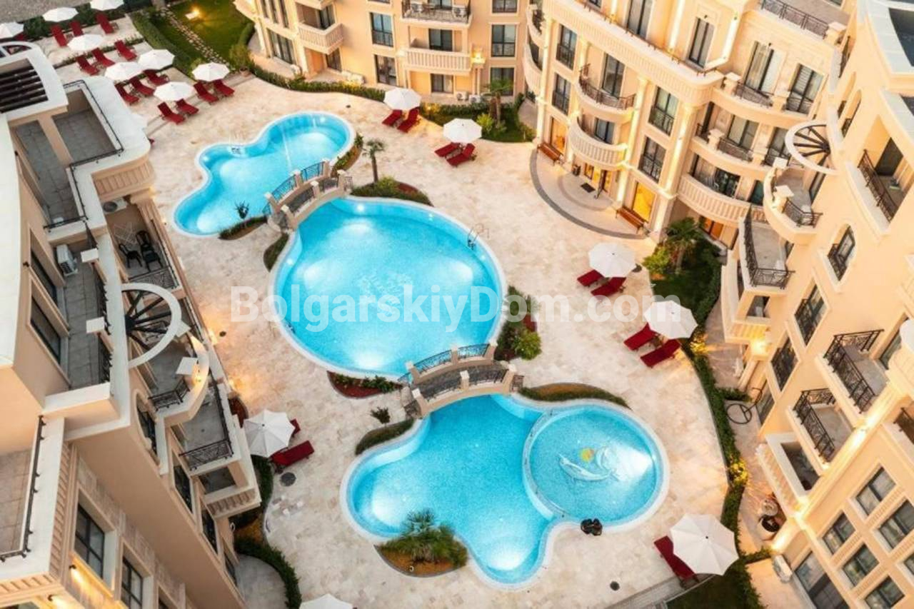 Комплекс Афродита Парк выделяется своей оригинальной архитектурой и считается одним из самых стильных на курорте. Он расположен в благоустроенном юго-западном районе, всего в 600 метрах от пляжа. Территория комплекса отличается уникальным ландшафтным дизайном, большим бассейном и зонами для отдыха. Здесь есть стойка регистрации, парковка и круглосуточная охрана. В шаговой доступности расположена развитая инфраструктура: кафе, рестораны, крупные супермаркеты и остановка общественного транспорта. Комплекс сдан в эксплуатацию с Актом 16.