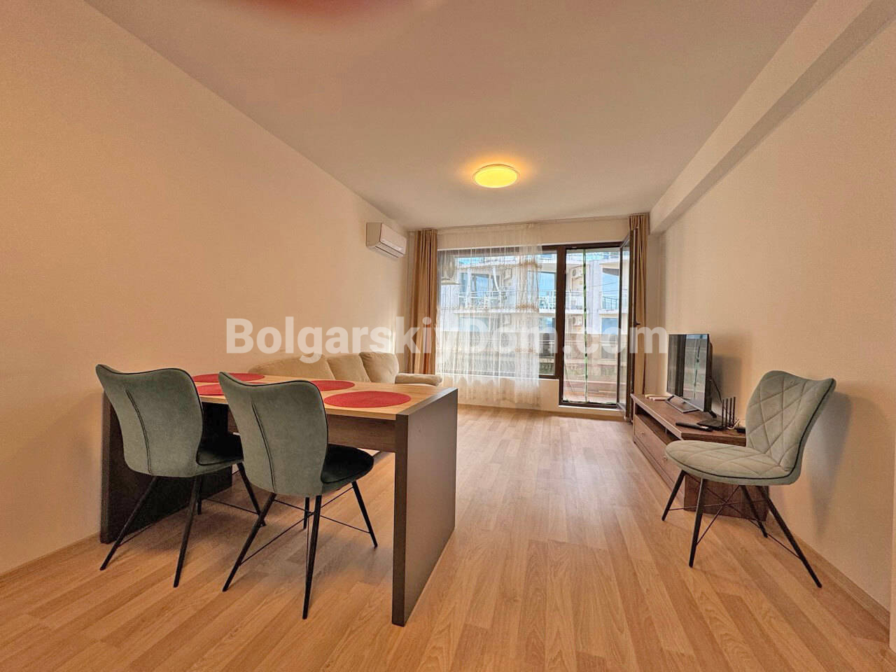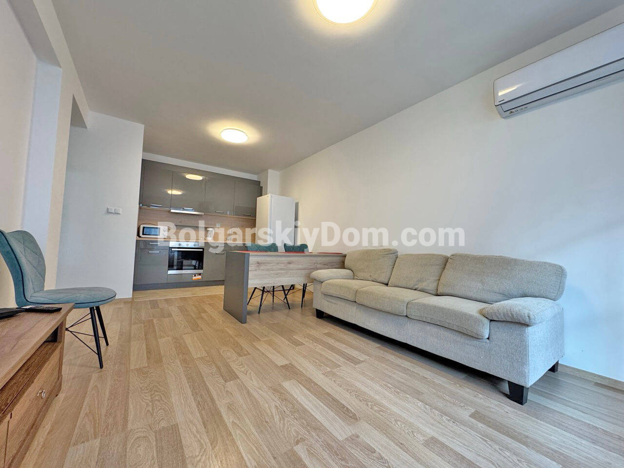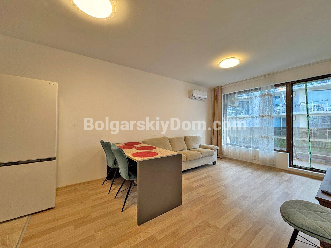 Редкий лот в центре Сарафово с минутным доступом к пляжу! Для осмотров, покупки и счастливого обладания мы предлагаем вам двухкомнатную квартиру площадью 58 кв.м. в жилом доме Хелена, топовом квартале Бургаса. Апартамент расположен на первом этаже и состоит из коридора, гостиной, спальни и террасы. Это удобное жилье с функциональной планировкой, готовое для комфортного проживания. Расположение на первом этаже обеспечивает легкий доступ и удобство. Лаконичный, даже минималистичный интерьер включает все необходимое для проживания: мебель и технику. Кухня удобно утоплена в нише, а стиральная машину вынесена в зону прихожей.
