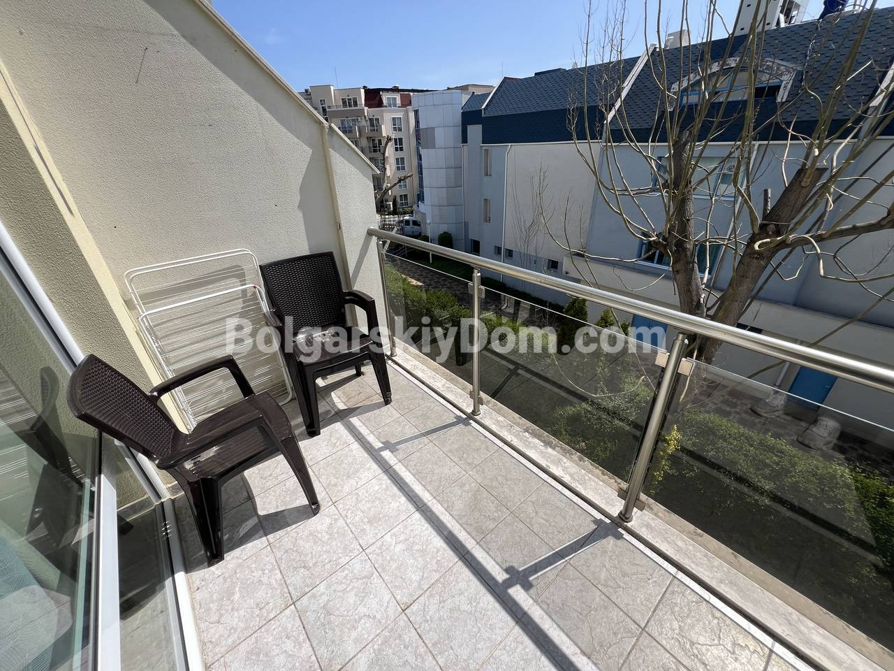 Ликвидный объект во второй линии Святого Власа! Команда агентства недвижимости Болгарский Дом предлагает тем. кто заинтересован в рациональной покупке, двухкомнатный апартамент квадратурой 50 кв.м. в комплексе Блу Скай. Квартира расположена на 3 этаже, имеет функциональную планировку (гостиная с кухней, отдельная спальня и терраса). Жилье полностью меблировано и оборудовано техникой, а значит, приобретая его, вы получаете мгновенную готовность к заселению. Это компактное решение для активного отдыха или инвестиций в центральной части курорта, поскольку ЖК расположен в самой топовой локации - между Диневи и Юртой.