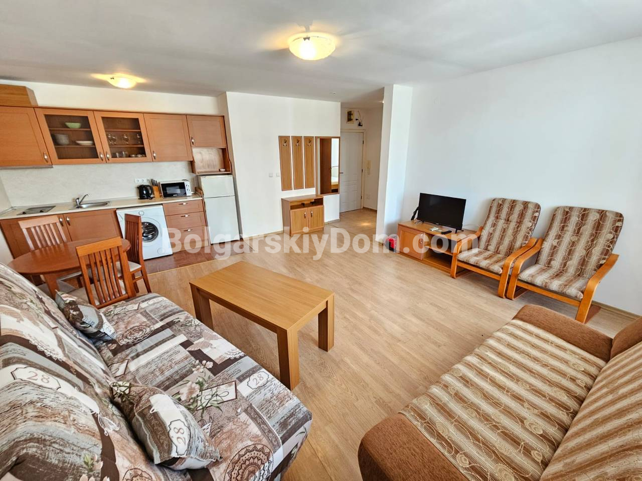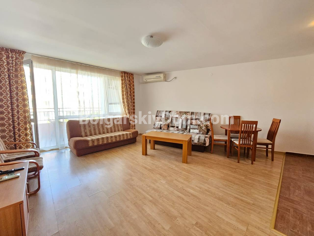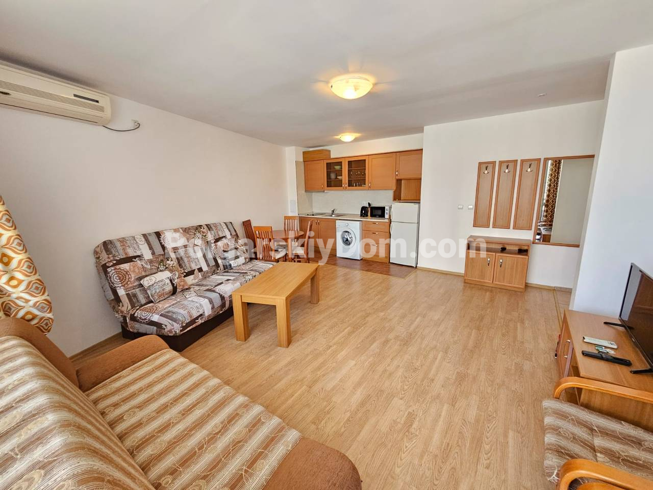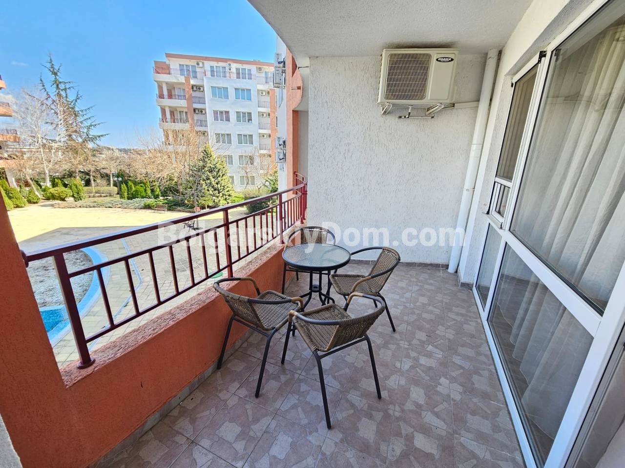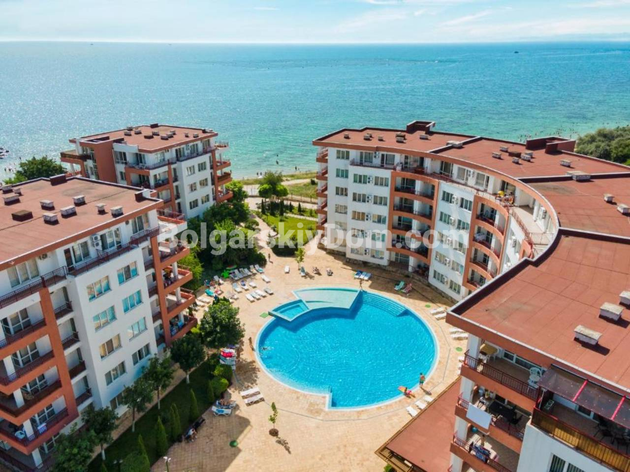 Ключевой объект на первой линии в ЖК с теннисным кортом! Наше агентство Болгарский Дом представляет просторную двухкомнатную квартиру площадью 79 кв.м. в комплексе Ривьера Форт Бич, уютном поселке Равда. Квартира расположена на 2 этаже, продается полностью меблированной и оснащенной техникой. Планировка включает гостиную с зоной кухни/столовой, отдельную спальню и террасу с видом на бассейн. Интерьер стандартный и светлый, полностью укомплектован: гарнитур в спальне, кухня в полунише, мягкая часть. Объект отлично подойдет для комфортного круглогодичного проживания или сдачи в аренду с высоким доходом.