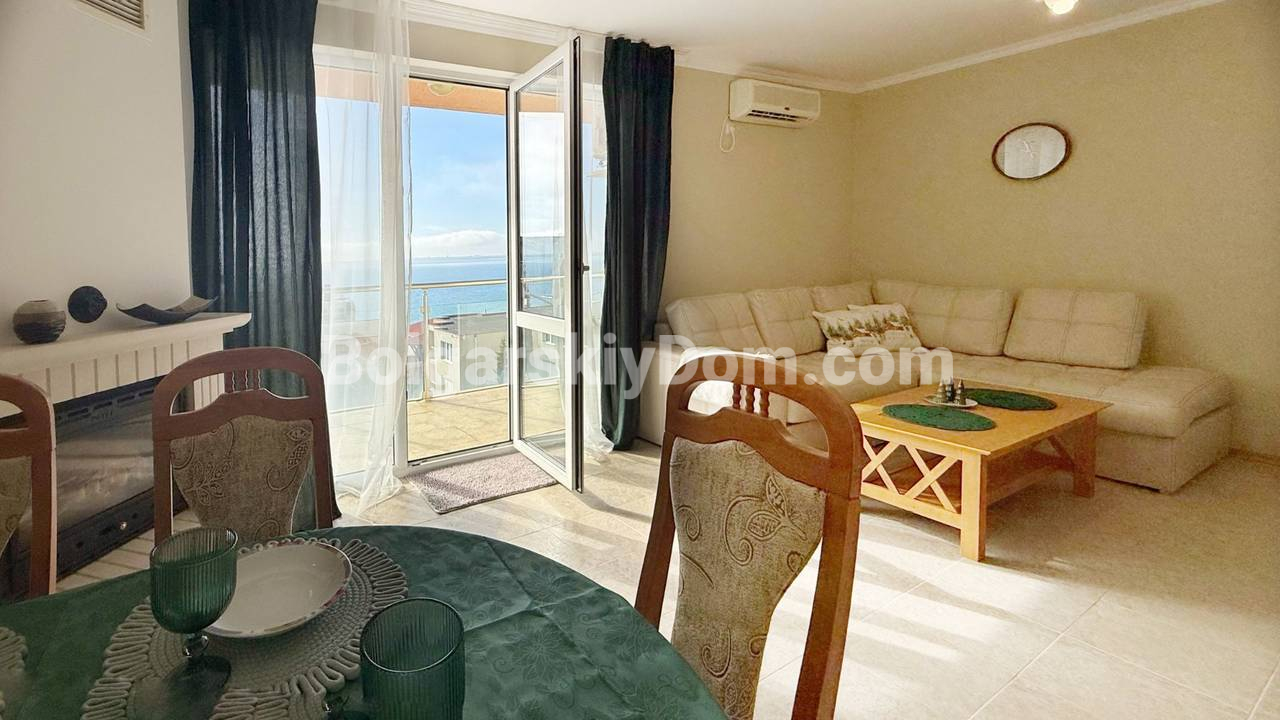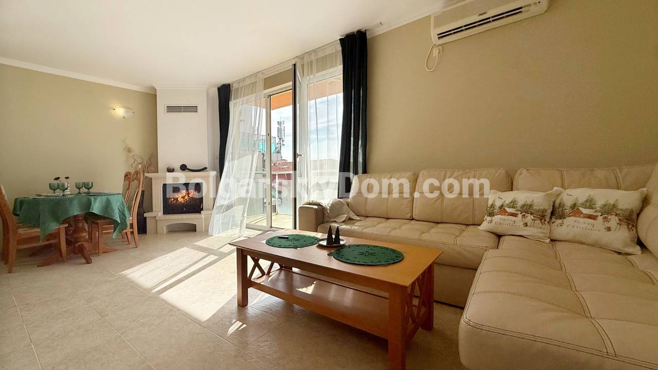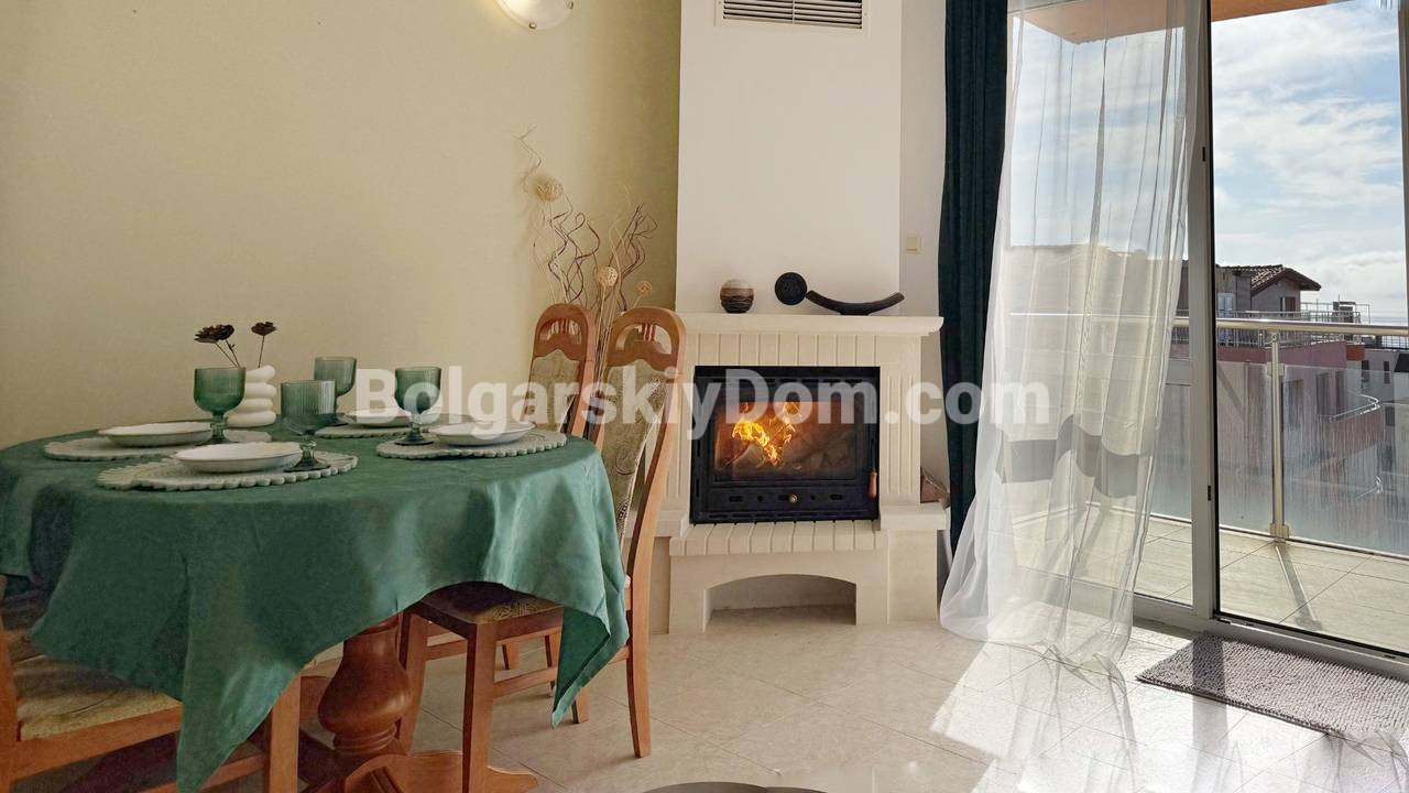 Просторная квартира с камином и видовыми террасами во Власе! Наше Агентство Болгарский Дом представляет трехкомнатную квартиру площадью 116 кв.м. в комплексе Виста Резиденс. Недвижимость находится на 4 этаже качественного кирпичного здания с лифтом. Внутри вас ждет атмосферная гостиная с действующим камином, две светлые спальни и, что важно, две большие террасы. Отсюда открывается вид сразу на море, старый Несебр и горы. Жилье продается с мебелью и техникой, полностью готовым к заселению.