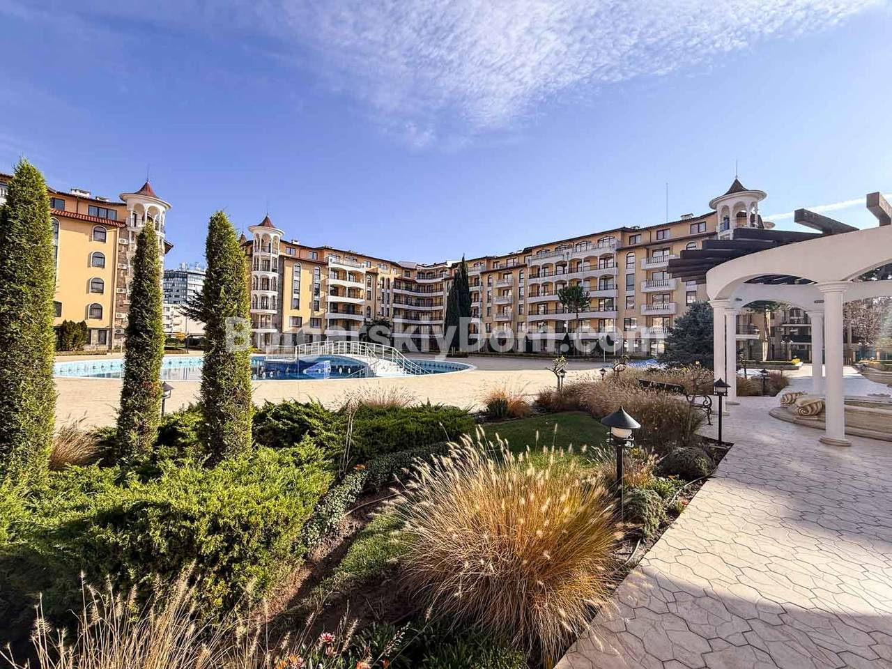 Роял Сан выделяется среди конкурентов своей огромной территорией: здесь разбит собственный парк площадью более 10 000 кв.м., что создает редкий для курорта уют и тишину в южной части города. Инфраструктура включает два просторных бассейна, отдельную детскую секцию, ресторан, бар и игровые площадки. Комплекс находится под круглосуточной охраной. Здание имеет Акт 16, а оплата электричества производится по выгодным бытовым тарифам, что существенно экономит бюджет на содержание.