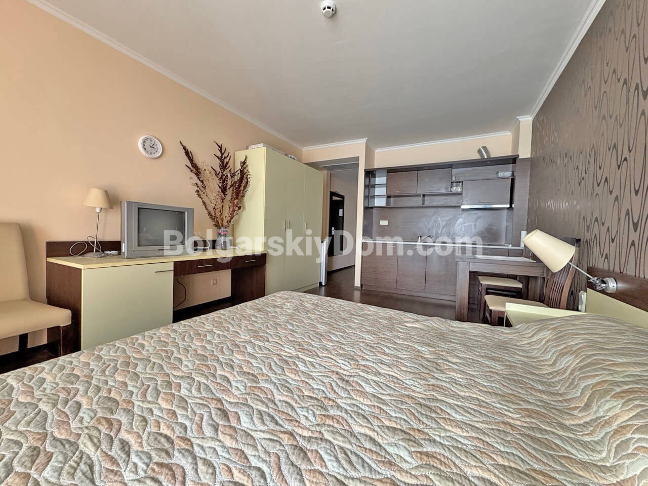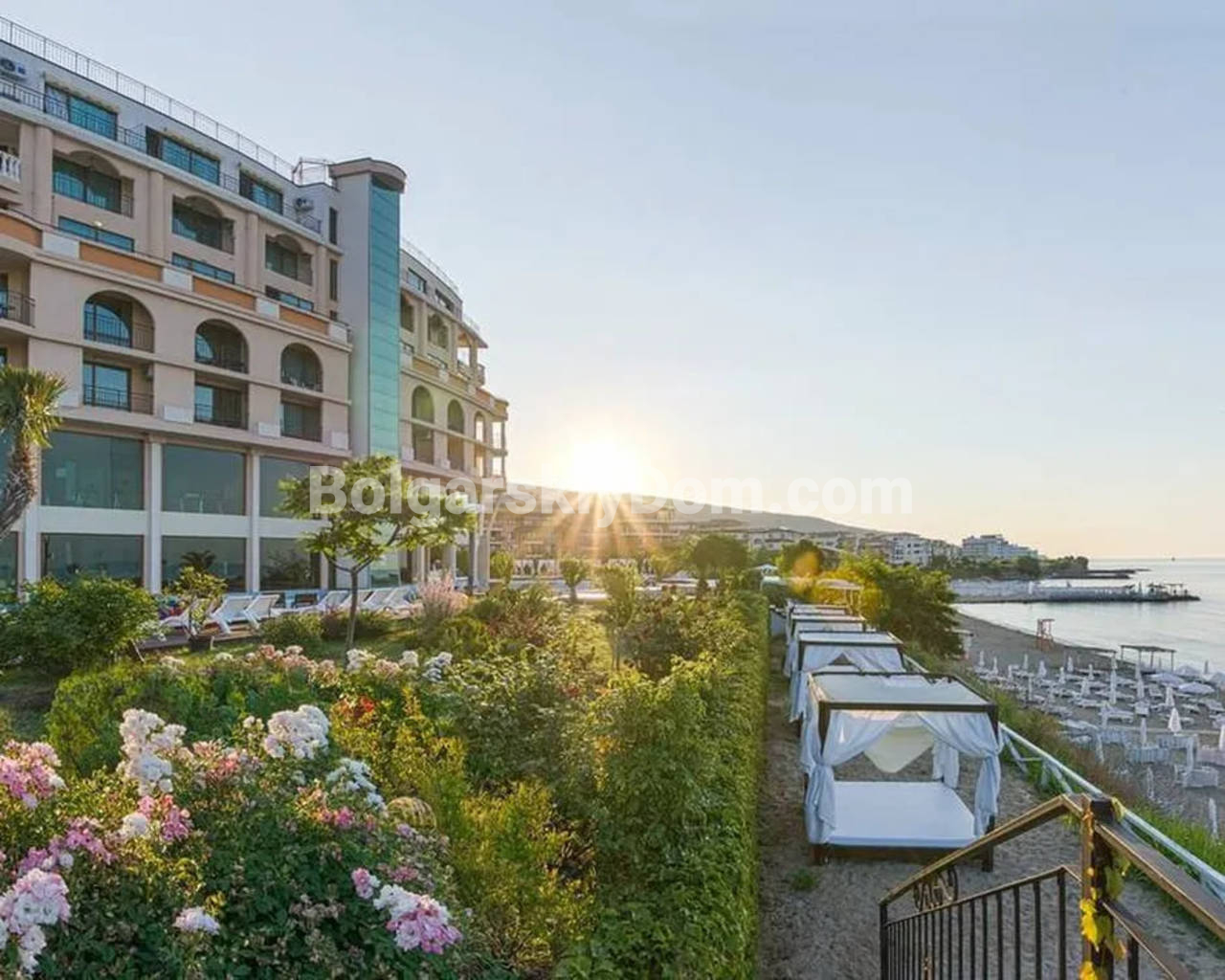 Фронтальный вид на море! Апартамент под ключ на первой линии! От АН Болгарский Дом недвижимость, которая станет активом: и если вы решите сдавать ее в аренду, и если захотите здесь жить. Открываем к продаже эксклюзивную студию площадью 44 кв.м. в роскошном комплексе Святого Власа, Гранд Отель. Апартамент расположен на 5 этаже, в доме есть лифт. Он состоит из прихожей, жилой зоны с кухней и террасы с прямой, фронтальной панорамой моря. Жилье продается полностью меблированным и оснащенным техникой. Выбирайте ее для отдыха или высокодоходной аренды.
