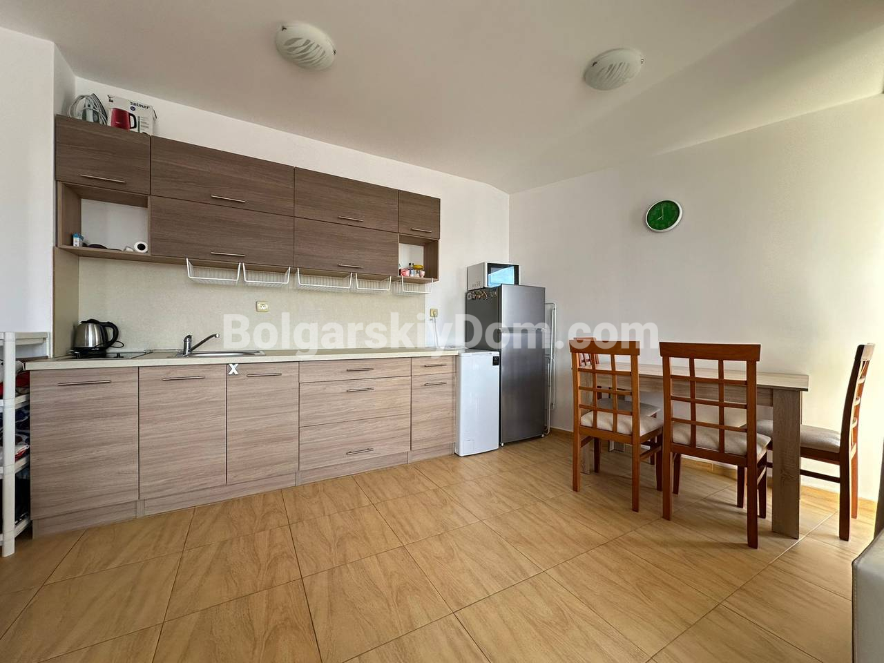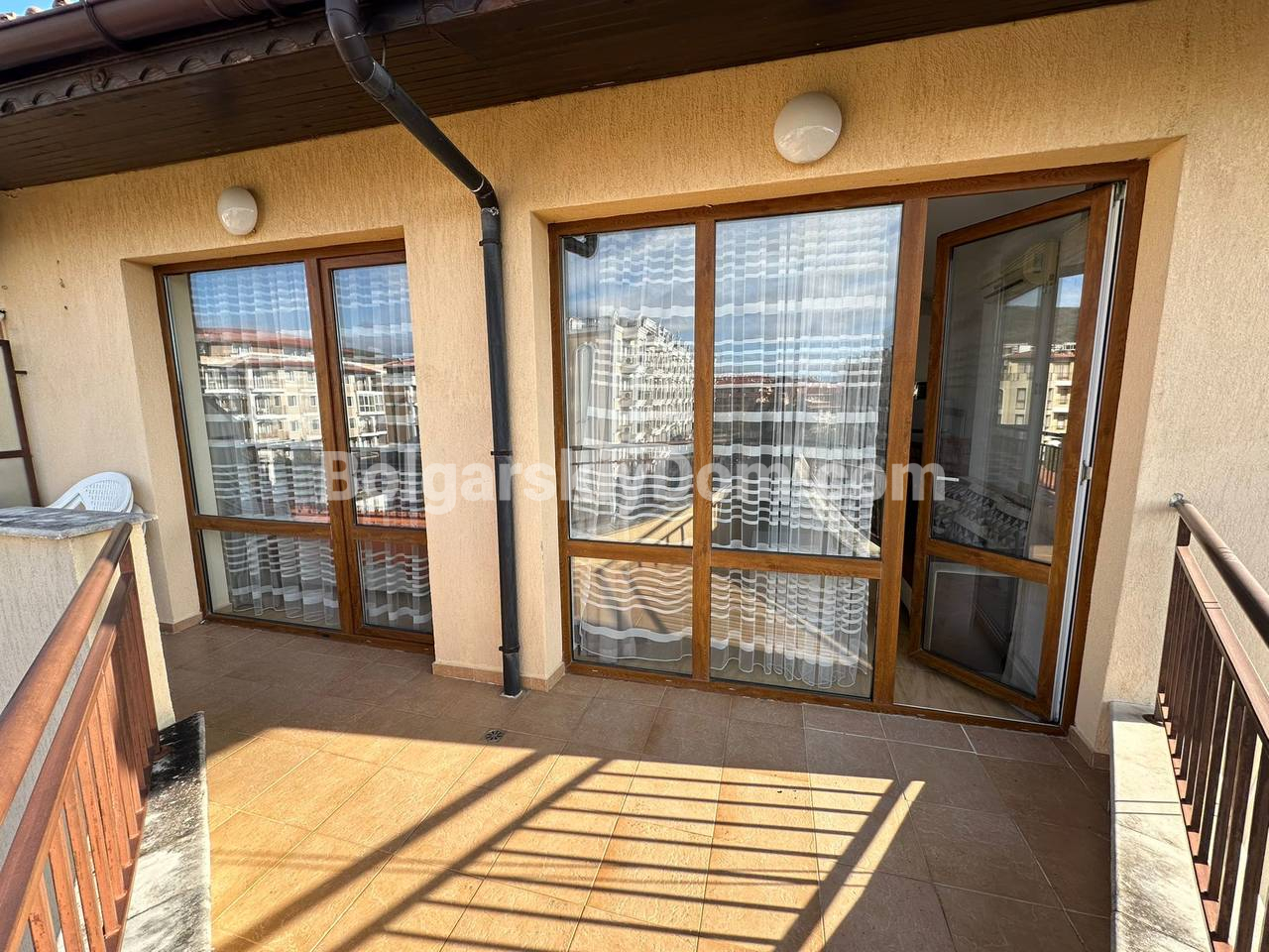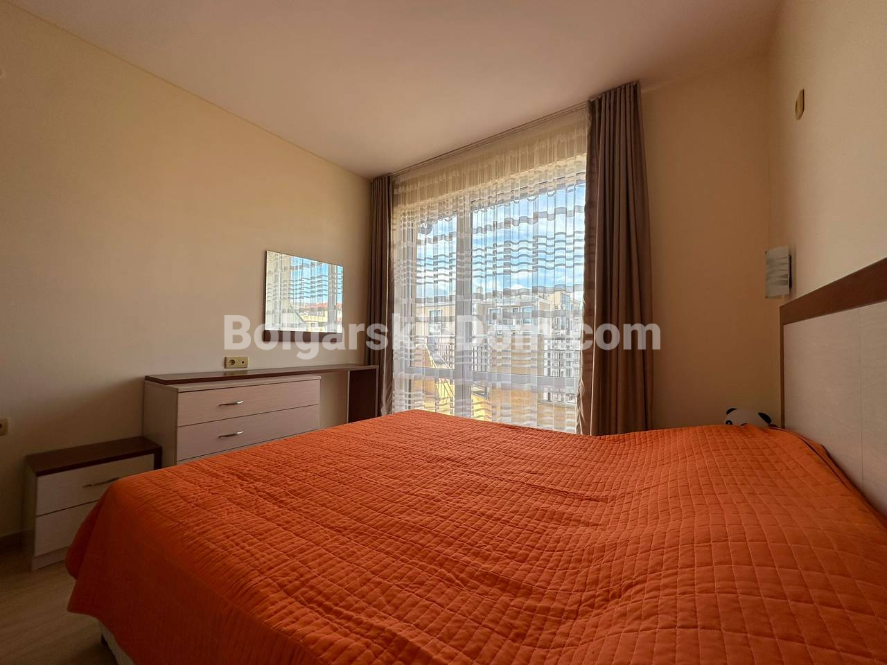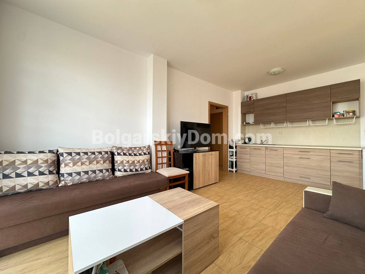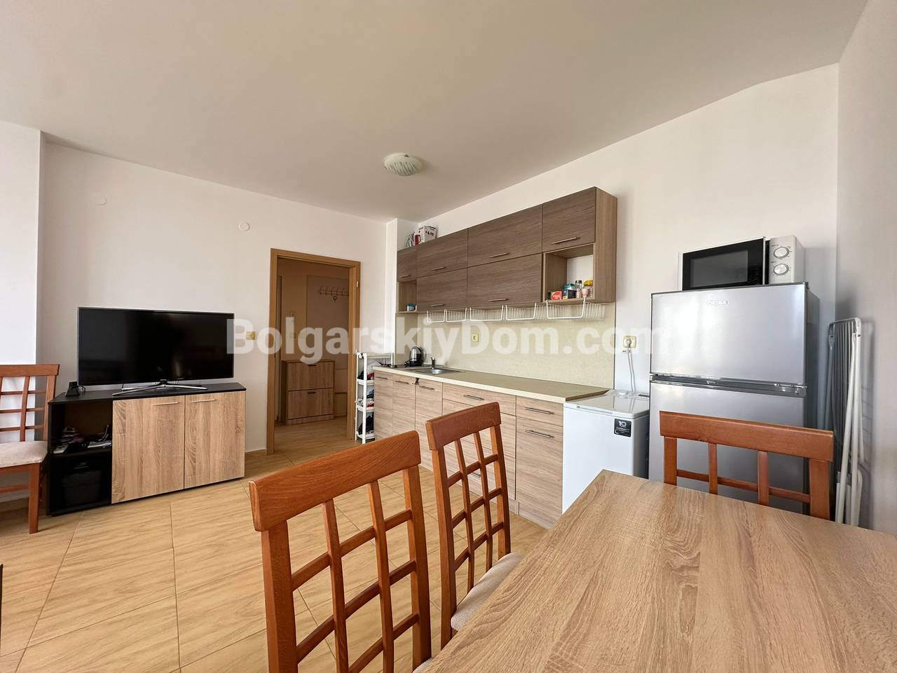 Квартира с панорамной террасой всего в 3 минутах от моря! Команда Агентства Болгарский Дом предлагает в продажу уютный двухкомнатный апартамент в современном комплексе Аква Дримс (Святой Влас, самый центр квартала Юрта). Это максимально светлое и комфортное жилье, состоящее из отдельной спальни и просторной гостиной, совмещенной с кухонным блоком. Главная особенность лота - большая панорамная терраса, идеальная для отдыха и загара с видом на бассейны. Квартира полностью меблирована, оснащена всем необходимым и готова к заселению. ⅘, предпоследний этаж, такса 10 евро, суммарная квадратура - 61 кв.м.