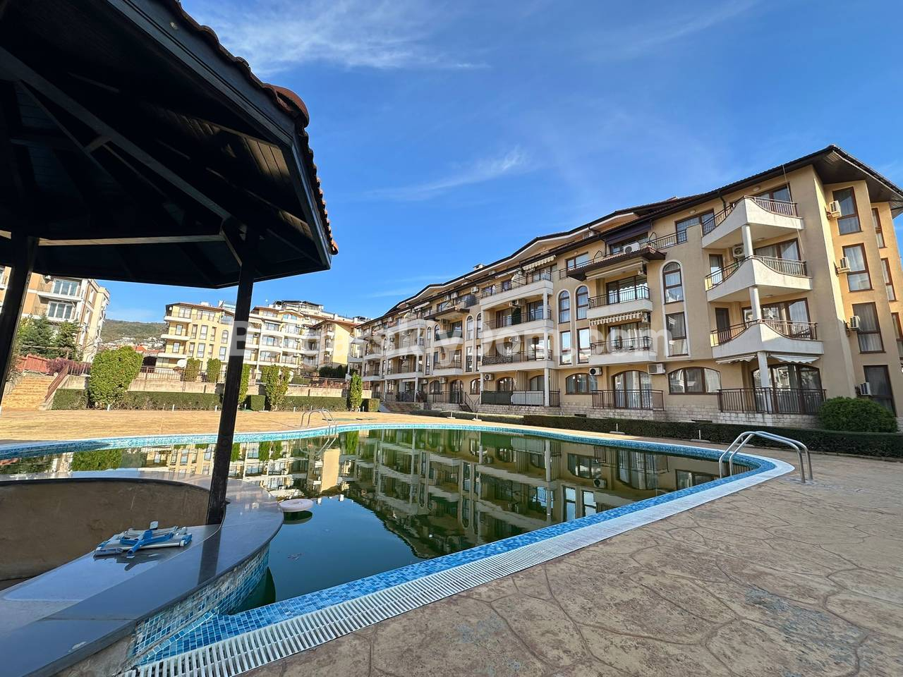 Жилой комплекс Аква Дримс расположен в живописном районе Святого Власа, откуда всего три минуты пешком до пляжа. Инфраструктура комплекса обеспечивает полный комфорт: на территории действуют три плавательных бассейна, ресторан, кафе-бар, детская площадка и рецепция. Комплекс сдан в эксплуатацию в 2007 году, есть Акт 16, что гарантирует его юридическую надежность. Это проверенный временем актив в престижной зоне рядом с Солнечным Берегом. Не теряйте времени! Свяжитесь с нами, чтобы получить полную презентацию этого объекта.