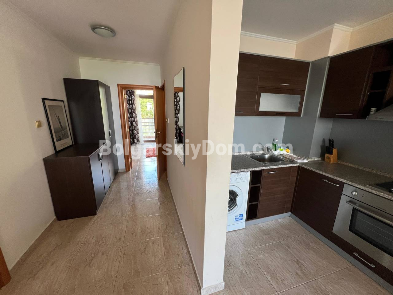Пополнение люкс-сегмента нашего каталога! Среди самых престижных лотов Болгарского Дома - двухкомнатный апартамент в комплексе Диамант, топовый курорт Святой Влас. Апартамент площадью 62,45 кв. м расположен на 2 этаже. Он продается полностью меблированным и оборудованным, готов к немедленному заселению. Планировка отличается продуманностью: светлая гостиная с кухней, спальня и, внимание, две террасы! Одна выходит на благоустроенный двор, а вторая имеет частичный вид на море.