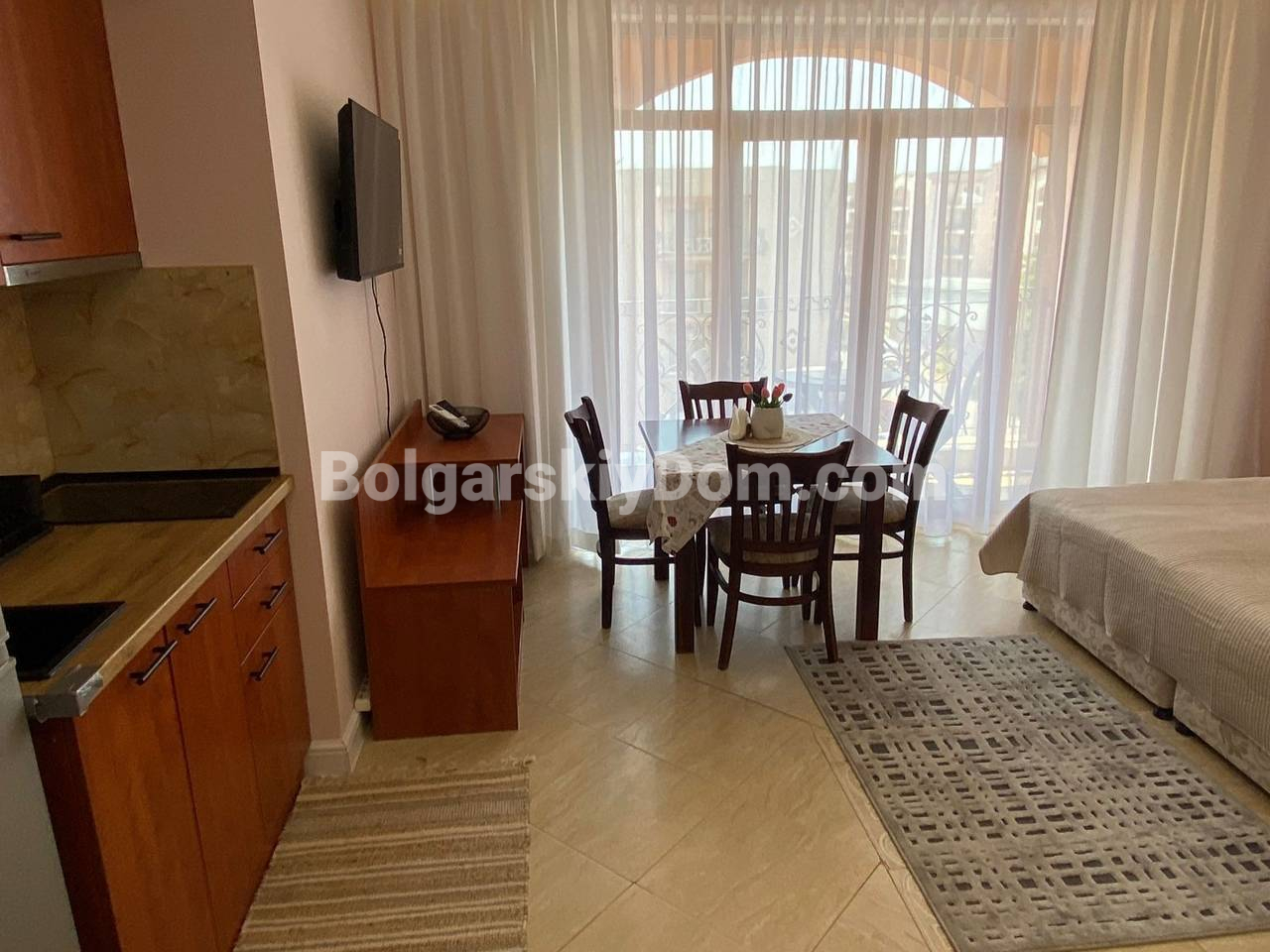 Комплекс находится в юго-западной части Солнечного Берега, всего в 300 метрах от пляжа и моря. Это идеальная локация, сочетающая близость к берегу и развитую инфраструктуру: рядом супермаркет, рестораны, кафе и летние аттракционы. Комплекс имеет отличную инфраструктуру: два больших бассейна с детскими секциями, ресторан, бар, паркинг и зоны отдыха. Рядом парк, комммунальное обслуживание осуществляется по стандартной таксы в 12 евро.