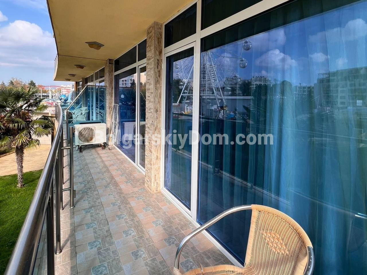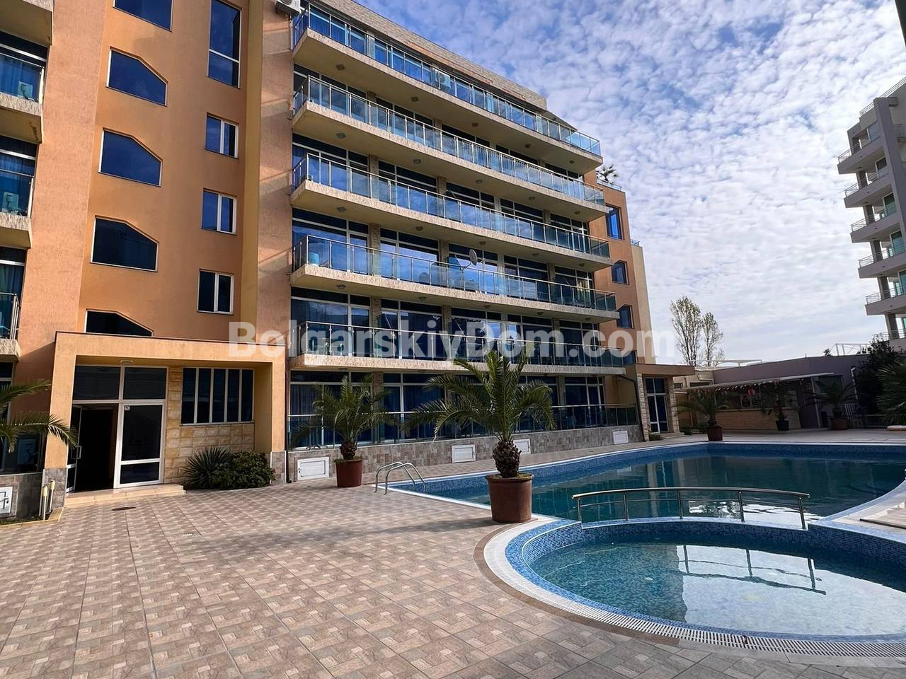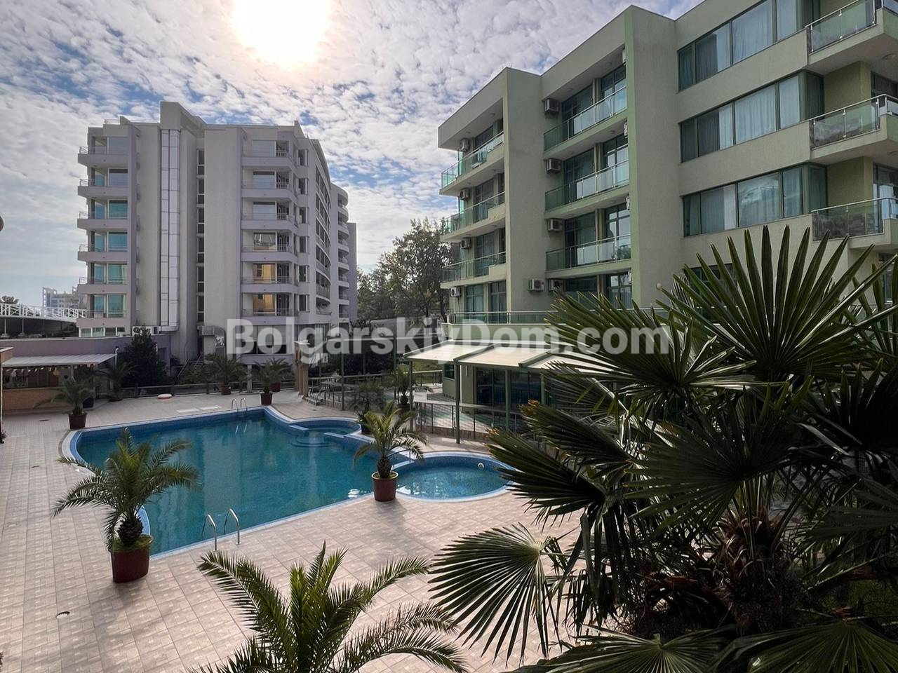 Пополнение в категории видовых объектов! Среди самых выгодных предложений Болгарского Дома на Солнечном Берегу - этот масштабный трехкомнатный апартамент. Представляем лот квадратурой 101 кв.м. в комплексе Галери 2. Квартира, расположенная на 2 этаже, имеет исключительную функциональность: светлая гостиная с кухней, две изолированные спальни и две полностью оборудованные ванные комнаты с душевыми кабинами. Но самое главное - две просторные террасы! С одной открывается вид на бассейн и внутренний двор, а с другой - на улицу и частичный вид на море.