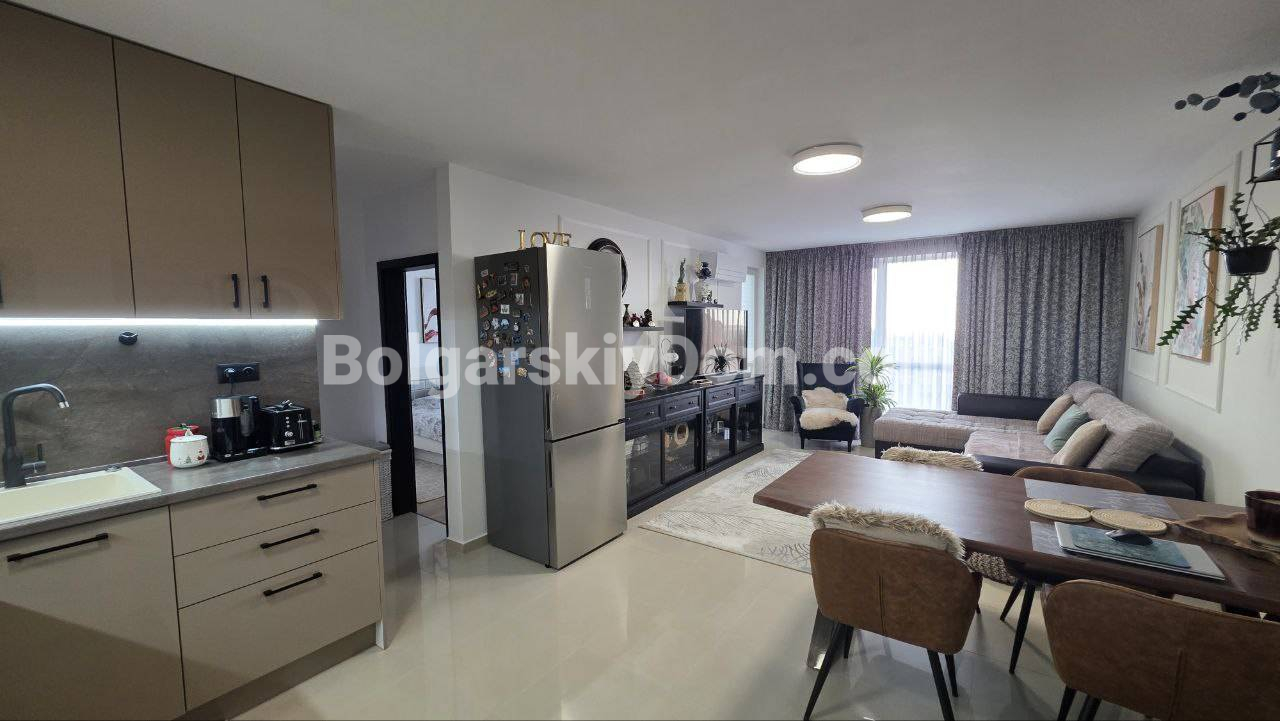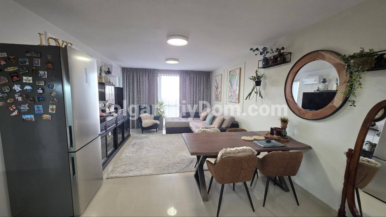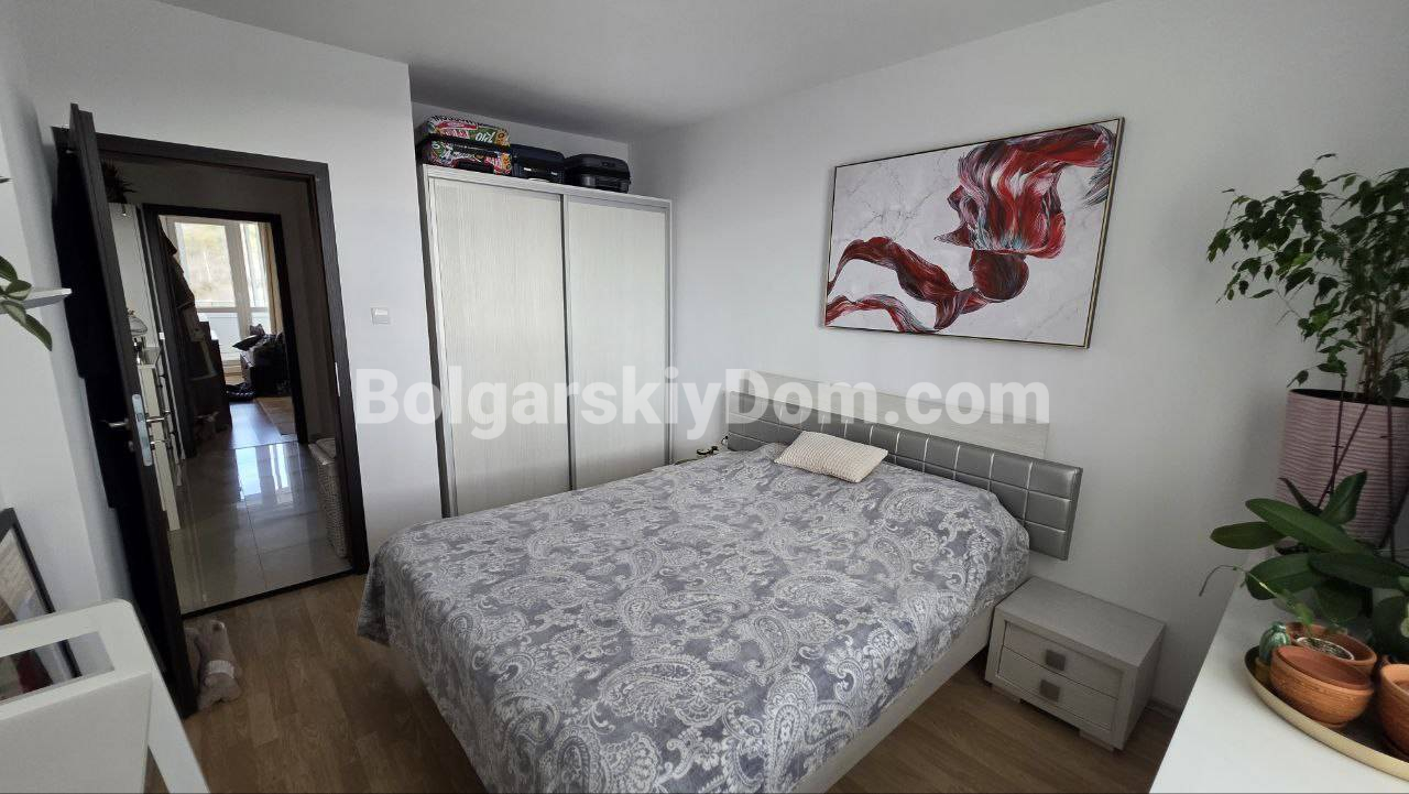 Хорошее решение для проживания во Власе с морской панорамой из окон! Специалисты Болгарского Дома предлагают просторный трехкомнатный апартамент (две спальни) в благоустроенном комплексе Баттерфляй. Лот метражом 93,3 кв.м. находится на 5 этаже и впечатляет своим объемом: одна из комнат - гостиная площадью около 30 метров! Из квартиры, расположенной на живописной возвышенности, открывается прекрасная панорама на море, Солнечный Берег и старинный Несебр. Апартамент продается с современным ремонтом, мебелью и техникой, полностью готов к заселению.