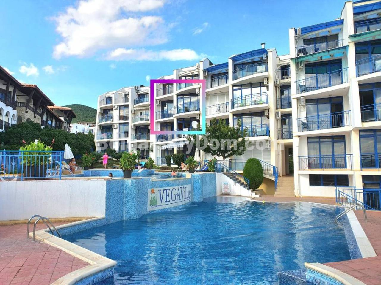 Комплекс Вега Виллидж имеет крайне привлекательное расположение: он находится в непосредственной близости от пляжа и знаменитой яхтенной пристани Святого Власа. Инфраструктура создана для роскошного отдыха: на территории три здания, два открытых бассейна, ресторан и бар, сауна, фитнес, а также детский сад. Здесь есть круглосуточная охрана, а ухоженные зеленые зоны создают атмосферу покоя. Годовая плата за обслуживание составляет 12 евро за кв.м.. Это ликвидный лот в престижной локации! Напишите нам.