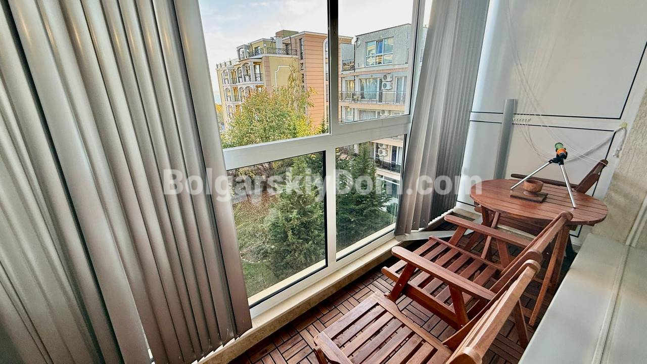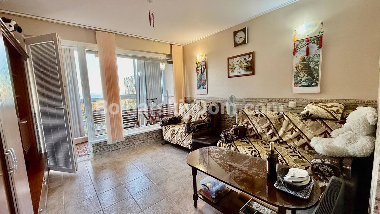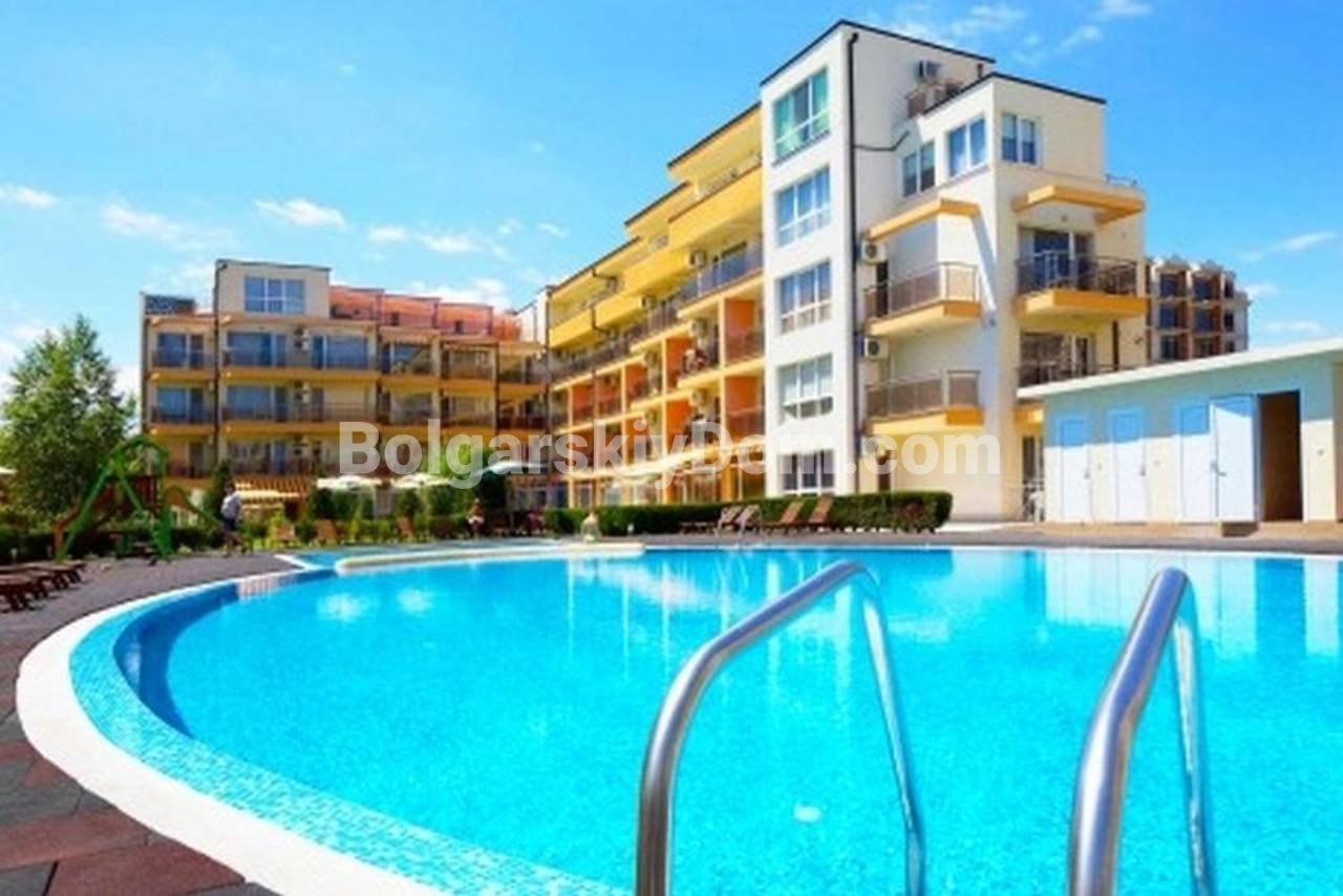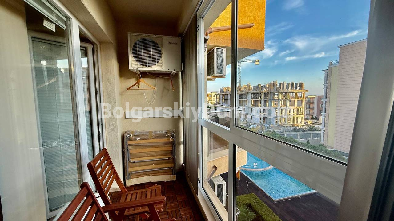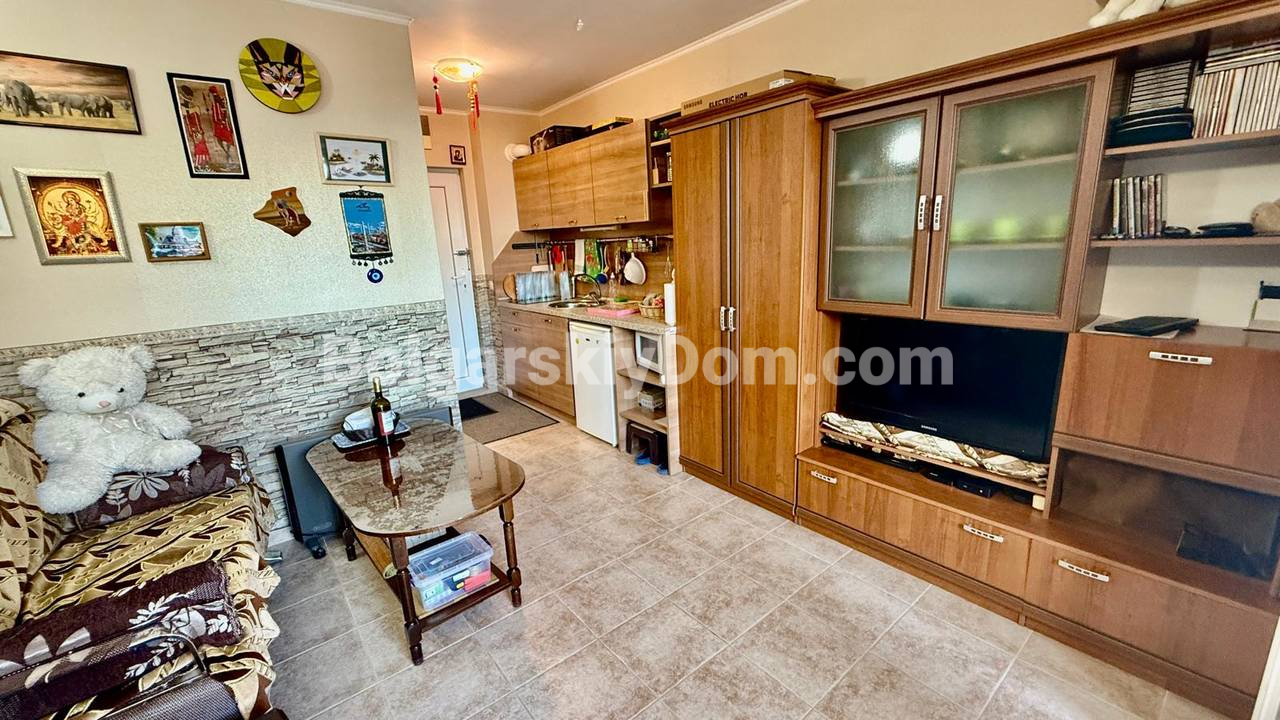 Срочное предложение: видовая студия метражом 33 кв.м. в уютном комплексе Анна Марина на 4 этаже в Святом Власе. Главный козырь этого апартамента - собственная терраса застекленного типа с прямым видом на море. Квартира продается со всей мебелью и техникой, полностью готова принимать владельцев или туристов без дополнительных вложений. Планировка удобна: гостиная с кухонной и спальной зоной и ванная комната. Дом сдан (Акт 16) и оборудован лифтом.