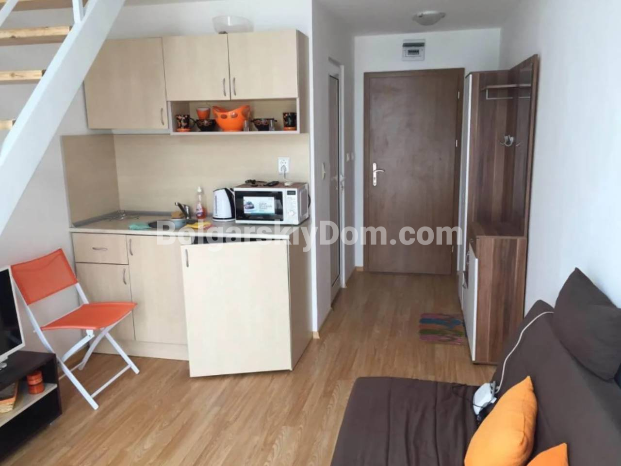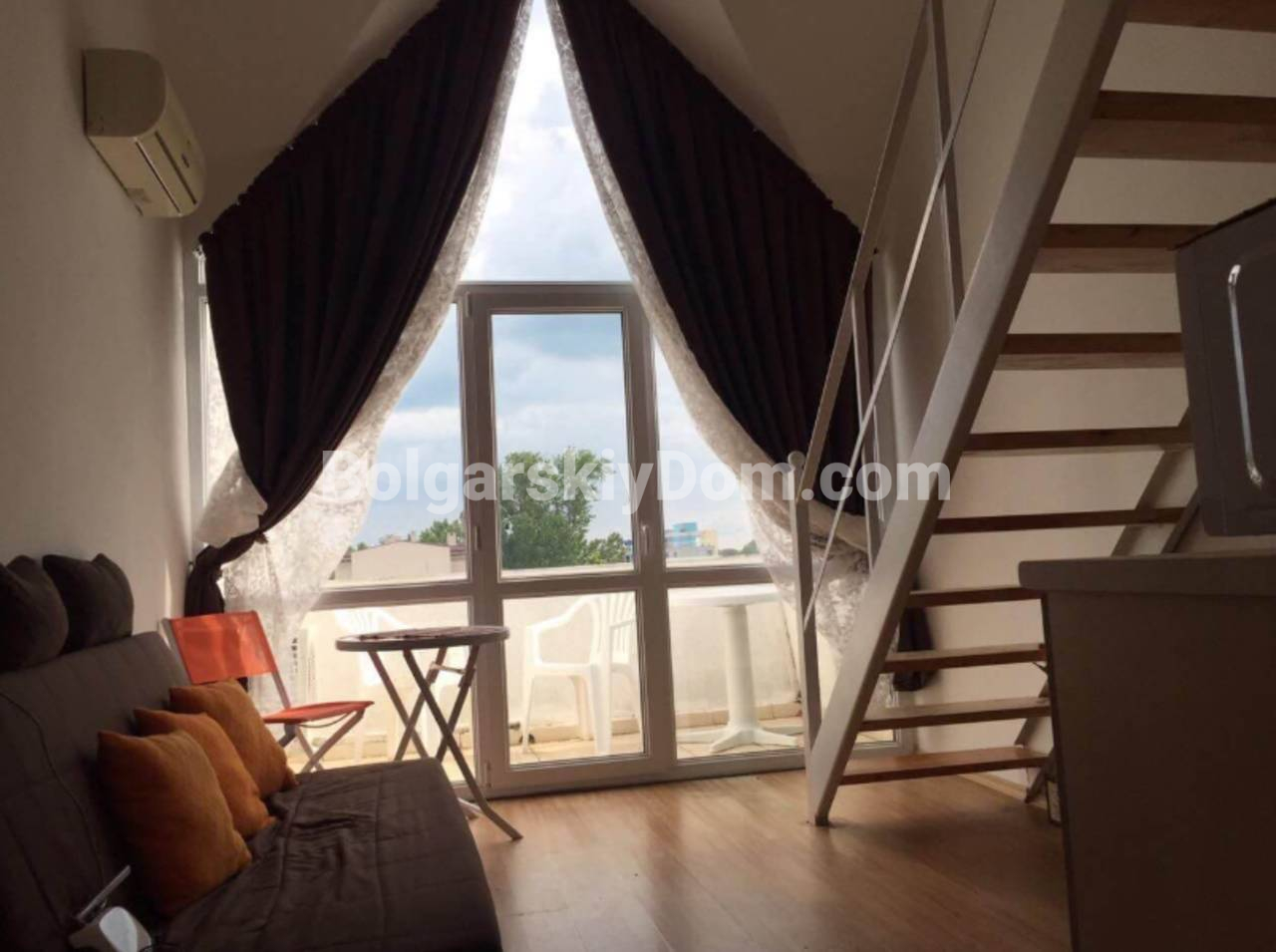 Новинка в каталоге вторичной недвижимости! Представляем нестандартный двухуровневый апартамент метражом 40 кв.м. в комплексе Гербер 2 на Солнечном Берегу. Расположенный на 5 этаже пятиэтажного здания, этот лот имеет уникальную планировку: на первом уровне размещены прихожая, гостиная с кухонной зоной, санузел и терраса, а на втором находится изолированная спальня. Такое функциональное разделение пространства обеспечивает комфорт двухкомнатной квартиры при метраже студии. Апартамент продается полностью с мебелью и техникой, готов принимать владельцев или туристов без дополнительных вложений.