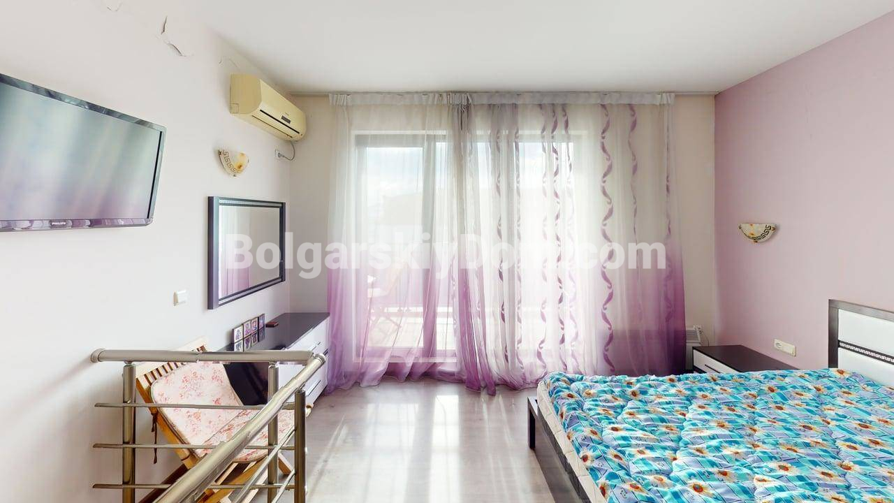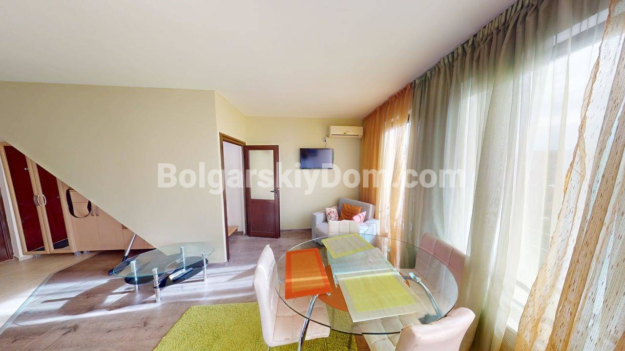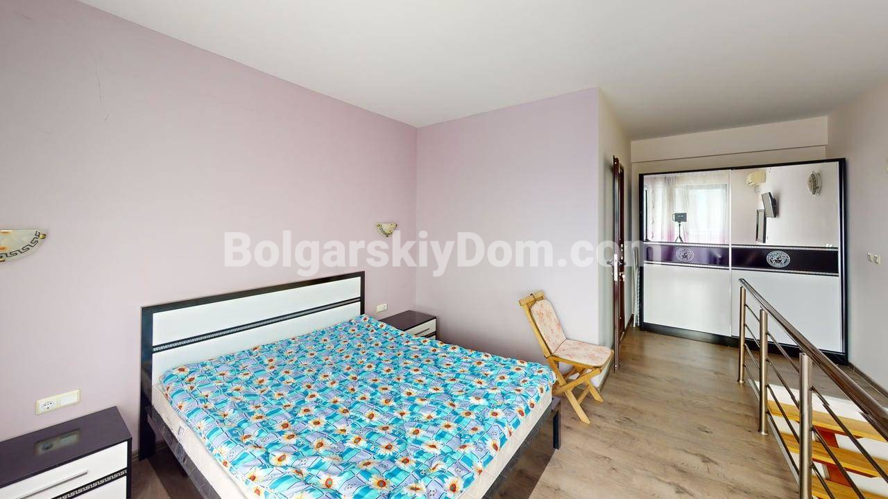 Двухуровневая квартира в центре Солнечного Берега с низкой таксой! Вашему вниманию - просторная, двухуровневая двухкомнатная квартира метражом 76 кв.м. в комплексе закрытого типа Амбер Бич в центральной части курорта. Лот расположен на 4 и 5 этажах здания с лифтом и продается полностью меблированным и оснащенным бытовой техникой. Ключевое преимущество: квартира имеет вид на бассейн и находится всего в 600 метрах от пляжа. Дом сдан (Акт 16).