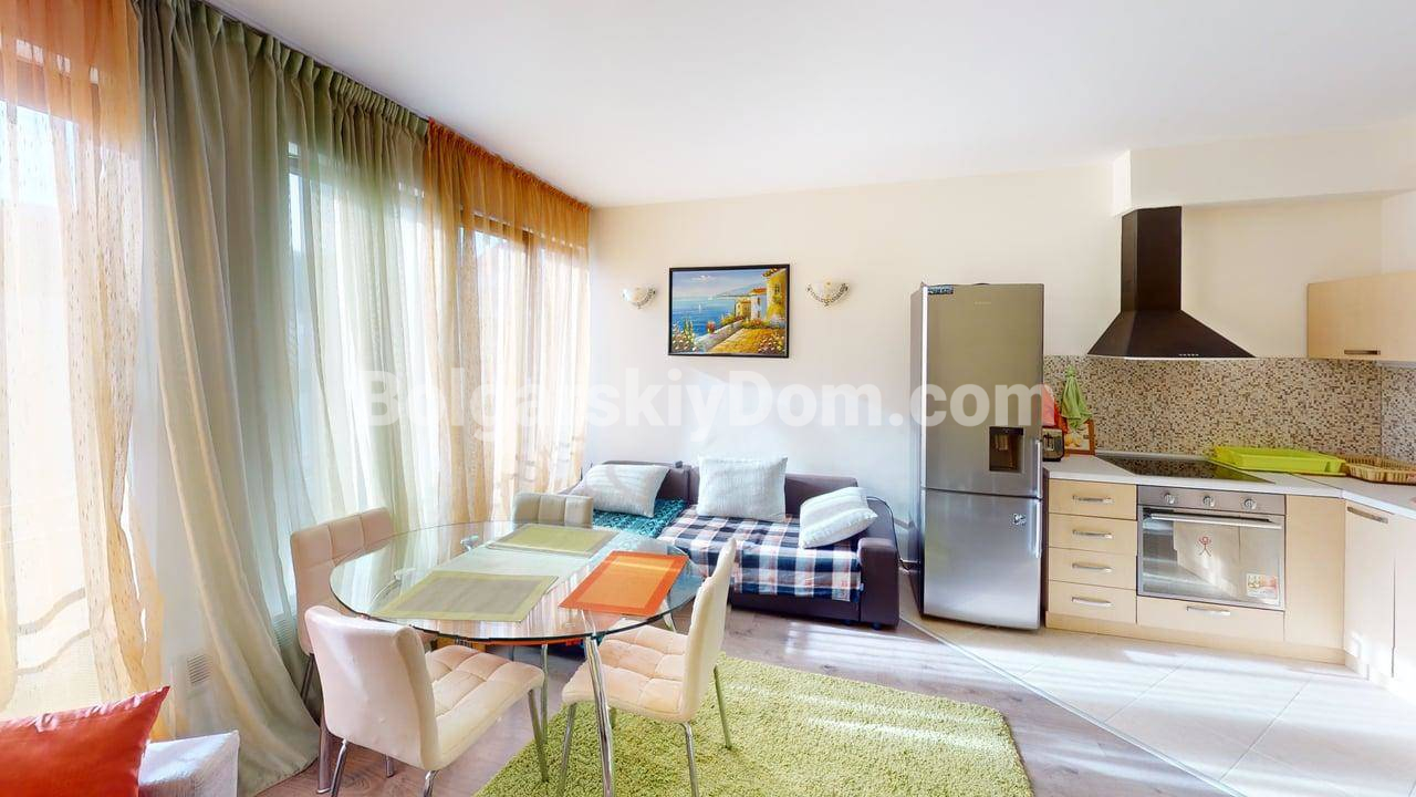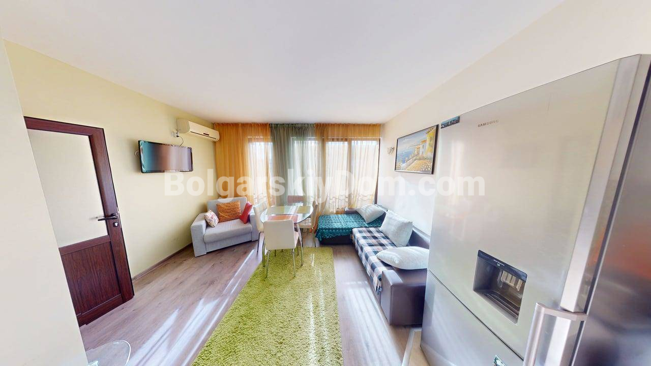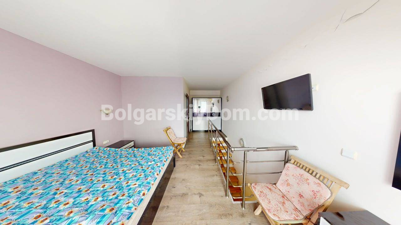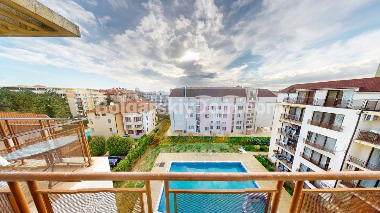 Двухуровневая квартира в центре Солнечного Берега с низкой таксой! Вашему вниманию - просторная, двухуровневая двухкомнатная квартира метражом 76 кв.м. в комплексе закрытого типа Амбер Бич в центральной части курорта. Лот расположен на 4 и 5 этажах здания с лифтом и продается полностью меблированным и оснащенным бытовой техникой. Ключевое преимущество: квартира имеет вид на бассейн и находится всего в 600 метрах от пляжа. Дом сдан (Акт 16).