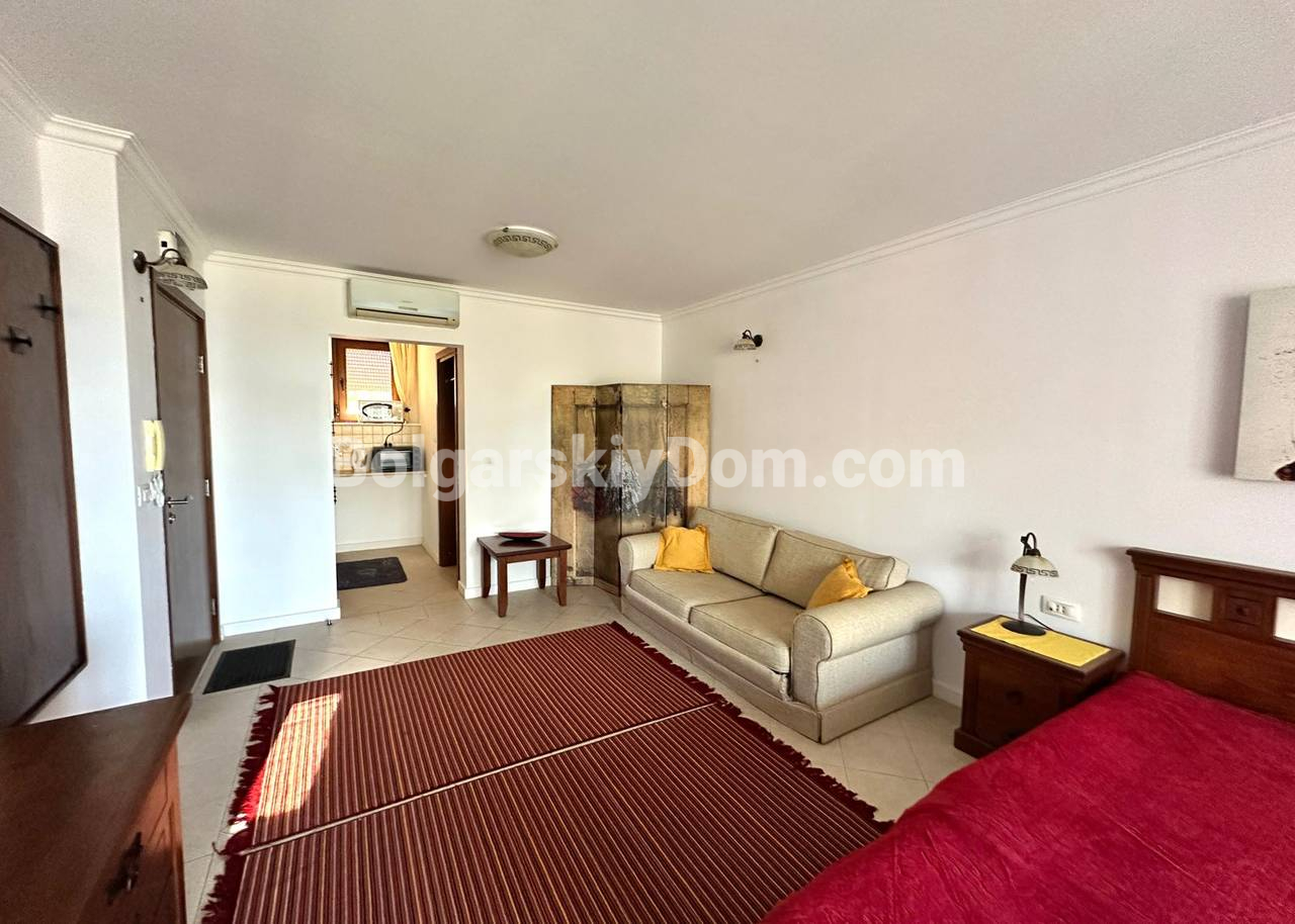 В каталоге АН Болгарский Дом горячая новинка для соискателей первой линии: просторная студия площадью 52 кв.м. в легендарном комплексе Санта Марина. Локация решает все, ведь от вашего порога до морской воды всего 50 метров, а с приватной террасы открывается тот самый вид, ради которого покупают недвижимость в Болгарии: на Черное море. Квартира расположена на комфортном третьем этаже и отличается функциональным, немного аскетичным интерьером, который вы легко адаптируете под свой вкус без капитальных вложений. Это актив с высокой ликвидностью, где такса поддержки 1980 евро в год гарантирует безупречный сервис и сохранность ваших инвестиций в одной из самых востребованных точек побережья.
