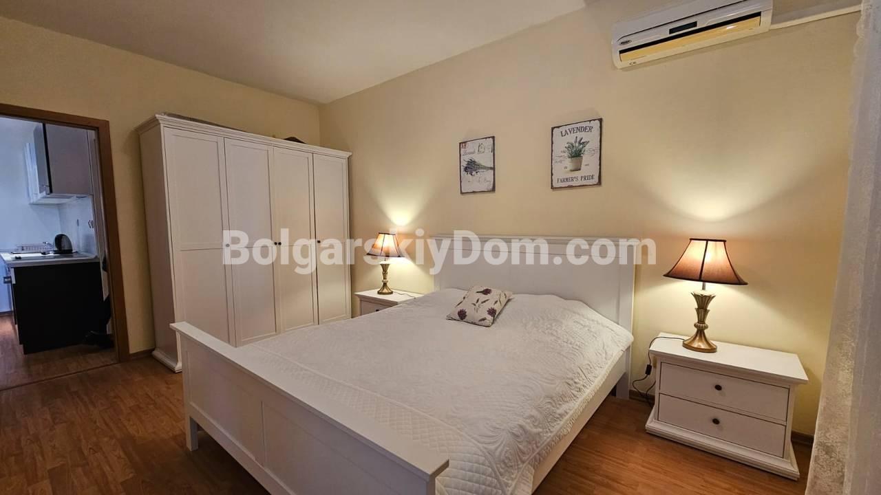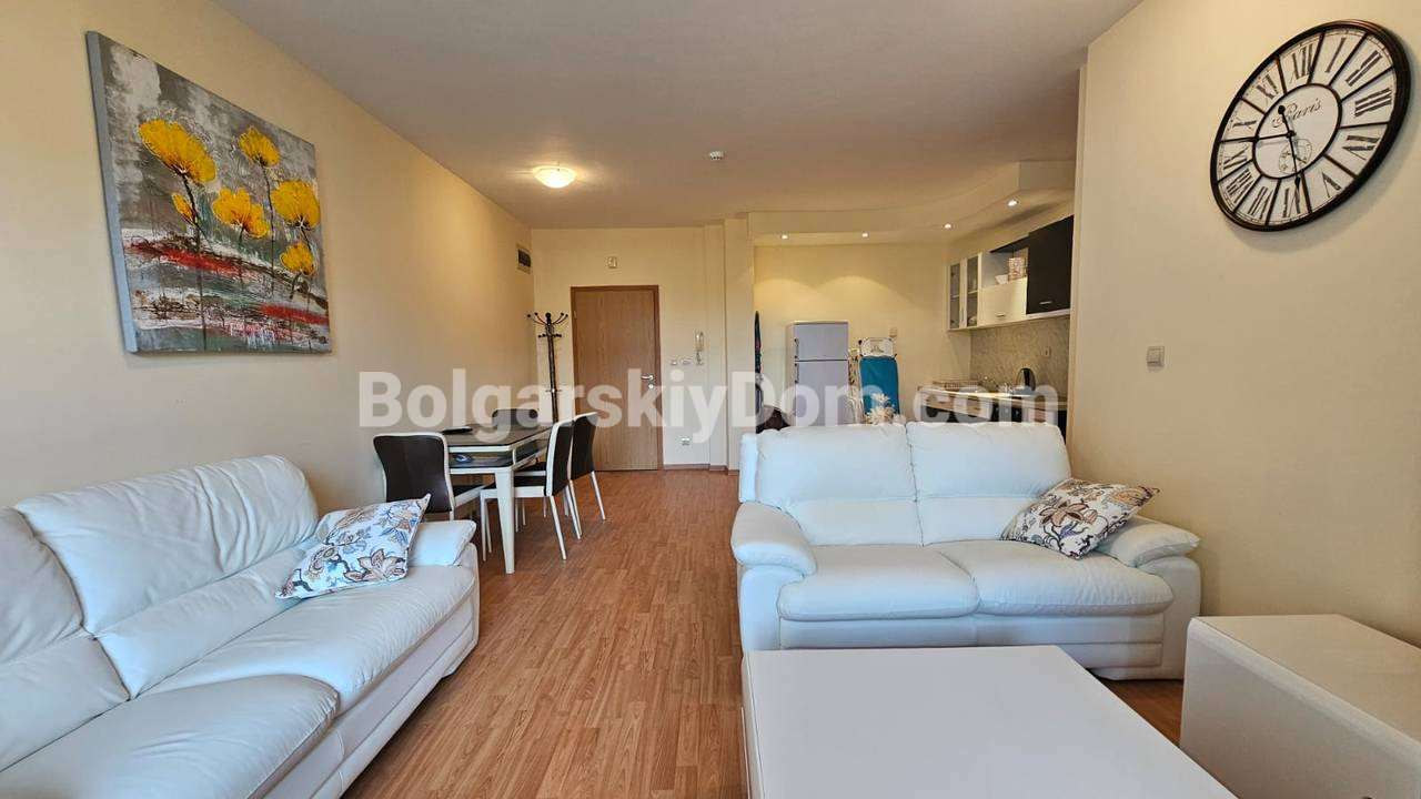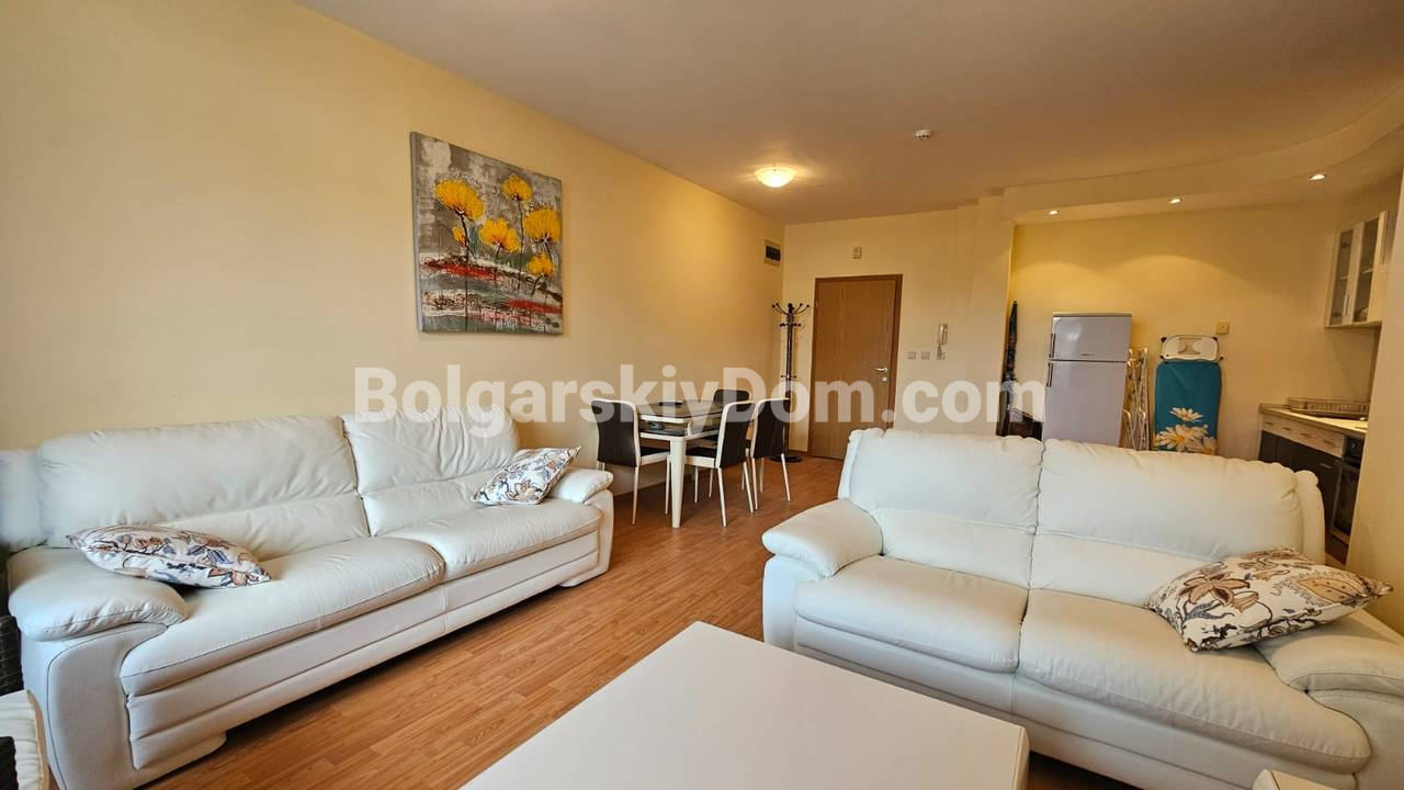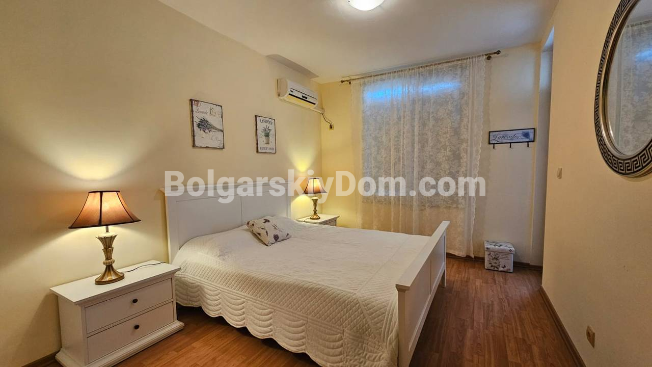 АН Болгарский Дом представляет: в продажу поступает премиальная двухкомнатная квартира площадью 74.1 кв.м. в элитном СПА-комплексе Райский Сад. Это предложение для тех, кто ищет бескомпромиссный уровень отдыха на первой линии Святого Власа, поскольку до пляжа всего 50 метров. Апартамент расположен на четвертом этаже: здесь есть просторная гостиная, объединенная с кухонной и обеденной зонами, уютная спальня, а также ванная комната с полноценной ванной. Квартира полностью меблирована, оснащена всей бытовой техникой и находится в отличном состоянии, позволяя новому владельцу сразу наслаждаться жизнью у моря. Наличие Акта 16 и годовая такса поддержки в 1350 евро гарантируют, что вы приобретаете высококлассный, безупречно обслуживаемый актив.