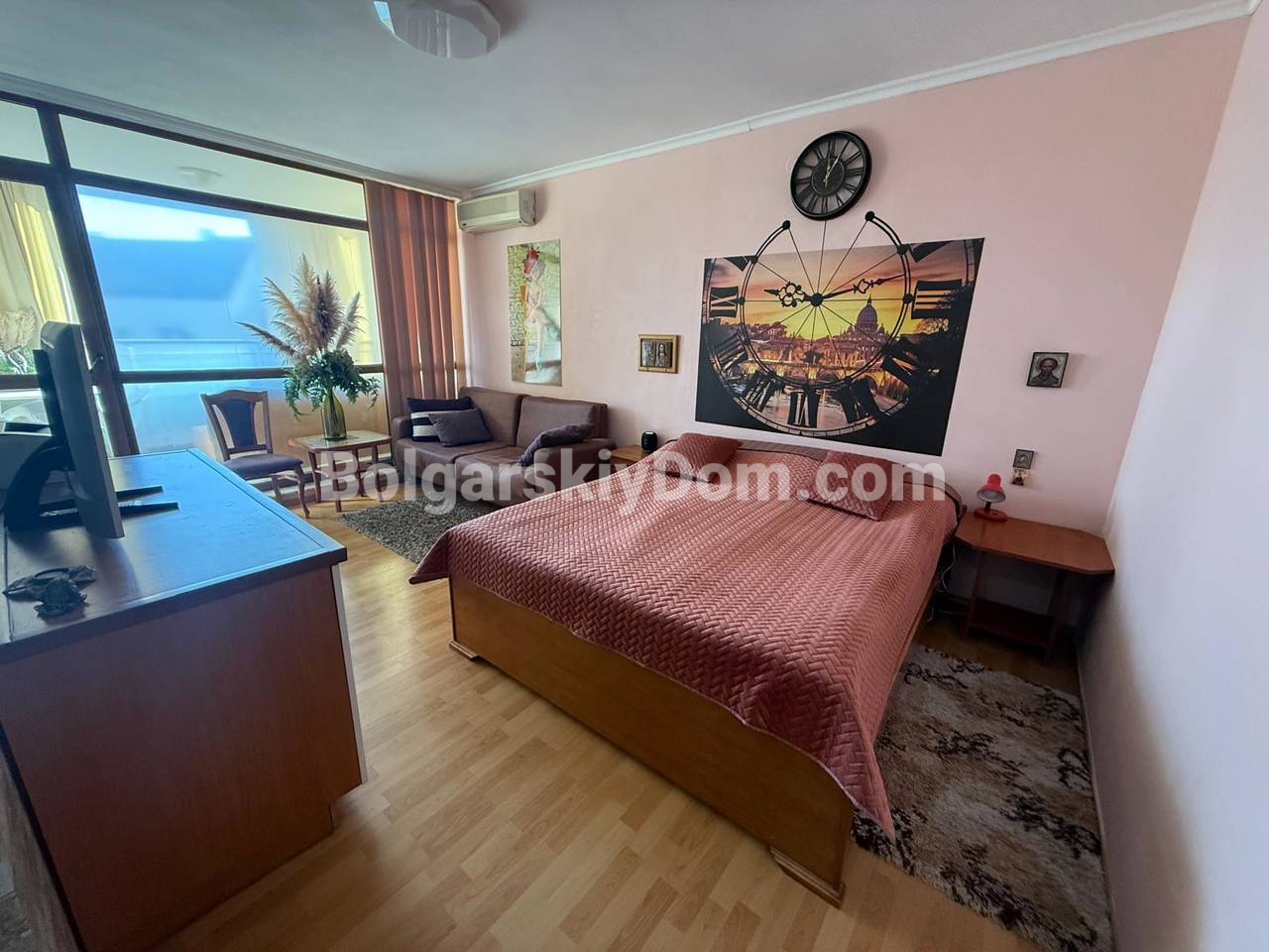 Команда агентства Болгарский Дом предлагает к покупке эксклюзивную студию с акцентом на простор в комплексе Сан Сити 1, Солнечный Берег. При площади 60 кв.м., этот объект, расположенный на четвертом этаже, станет курортной базой с уникальной опцией: впечатляющая терраса, оборудованная угловым диваном и садовой мебелью, которая функционирует как полноценная зона отдыха на свежем воздухе. Студия полностью меблирована, имеет выделенную кухню, зонированную гостиную с кроватью и диваном, и полностью оснащена бытовой техникой. Такса всего 8 евро!