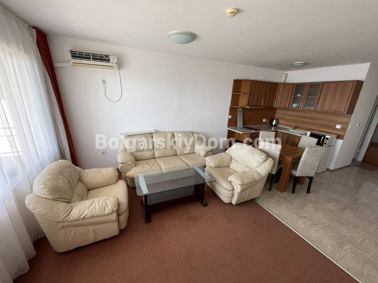 Вашему вниманию очередной лот с панорамным видом на море от АН Болгарский Дом! Двухкомнатный апартамент площадью 80 кв.м. занимает последний шестой этаж. Квартира предлагается покупателям в формате под ключ: внутри уже установлена качественная мебель и вся необходимая бытовая техника для полноценной жизни или немедленной сдачи в аренду. Просторная планировка и обилие естественного света создают атмосферу современного морского дома, а прямой вид на залив делает это предложение ликвидным активом на рынке недвижимости Ахелоя.Объект не требует дополнительных вложений и готов к быстрому выходу на сделку.