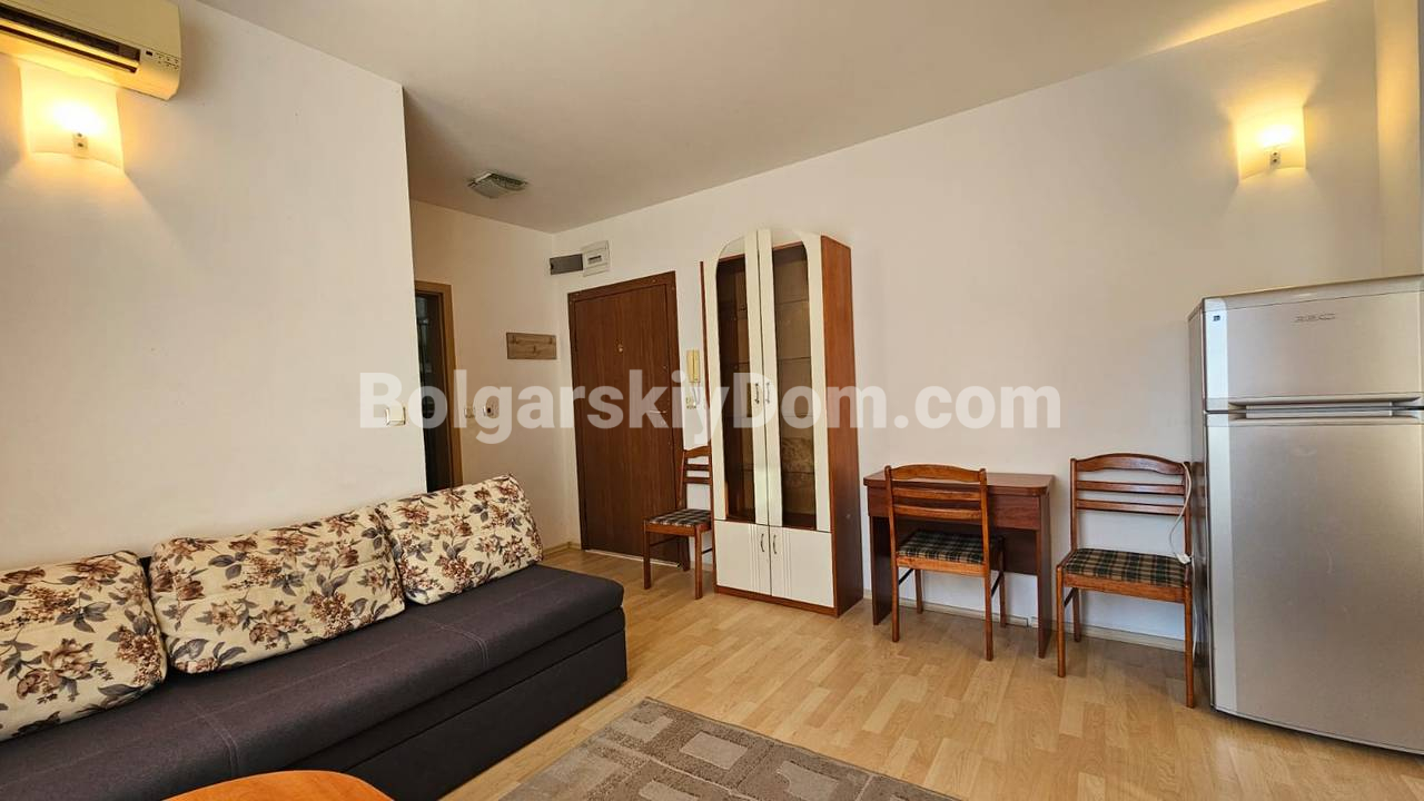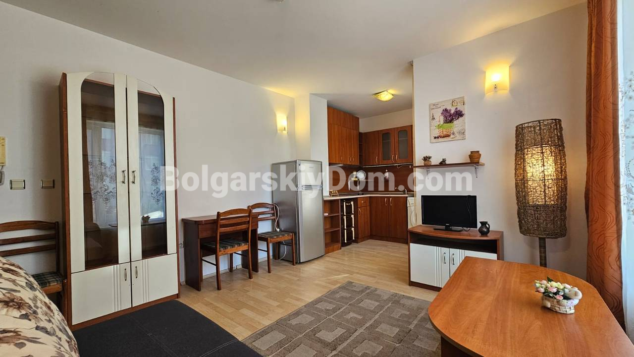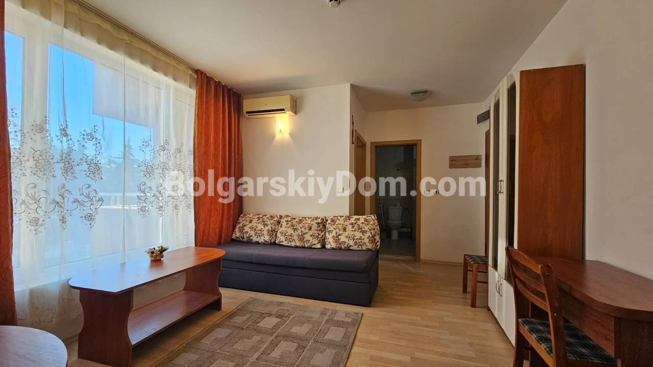 В базе предложений АН Болгарский Дом появилась уютная и солнечная квартира в комплексе Стелла Полярис - готовый вариант в спокойной южной части Солнечного Берега. Апартамент площадью 43.8 кв.м. находится на втором этаже и предлагается владельцами полностью укомплектованным мебелью и техникой. Планировка включает светлую гостиную с обеденной зоной, отдельную спальню и балкон, что делает объект максимально функциональным для жизни. Наличие Акта 16 и лифта в здании обеспечивает не только юридическую чистоту сделки, но и комфортное проживание в любое время года без лишних бытовых забот.