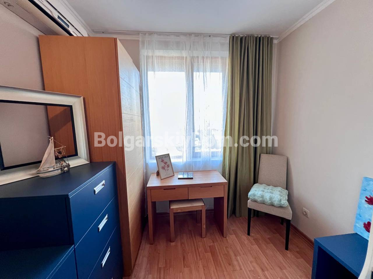 Первая линия и вид на Черное море прямо из ваших окон! Продаем просторную трехкомнатную квартиру площадью 101 кв.м. в известном комплексе Райский Сад в Святом Власе. Это первая береговая линия - до пляжа всего 50 метров. Квартира расположена на четвертом этаже, из окон и с балкона открывается прямой вид на бассейн и море. Планировка включает прихожую, большую гостиную с кухонной зоной, две отдельные спальни и два санузла. Жилье полностью укомплектовано мебелью и бытовой техникой, все находится в хорошем состоянии и готово к заселению. То есть это именно тот формат, еще и в среднем бюджете, на который буквально “охотятся” инвесторы. Станьте первым, напишите нам!
