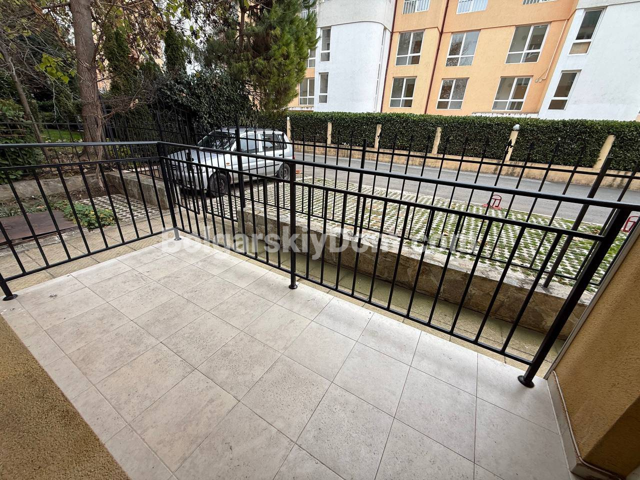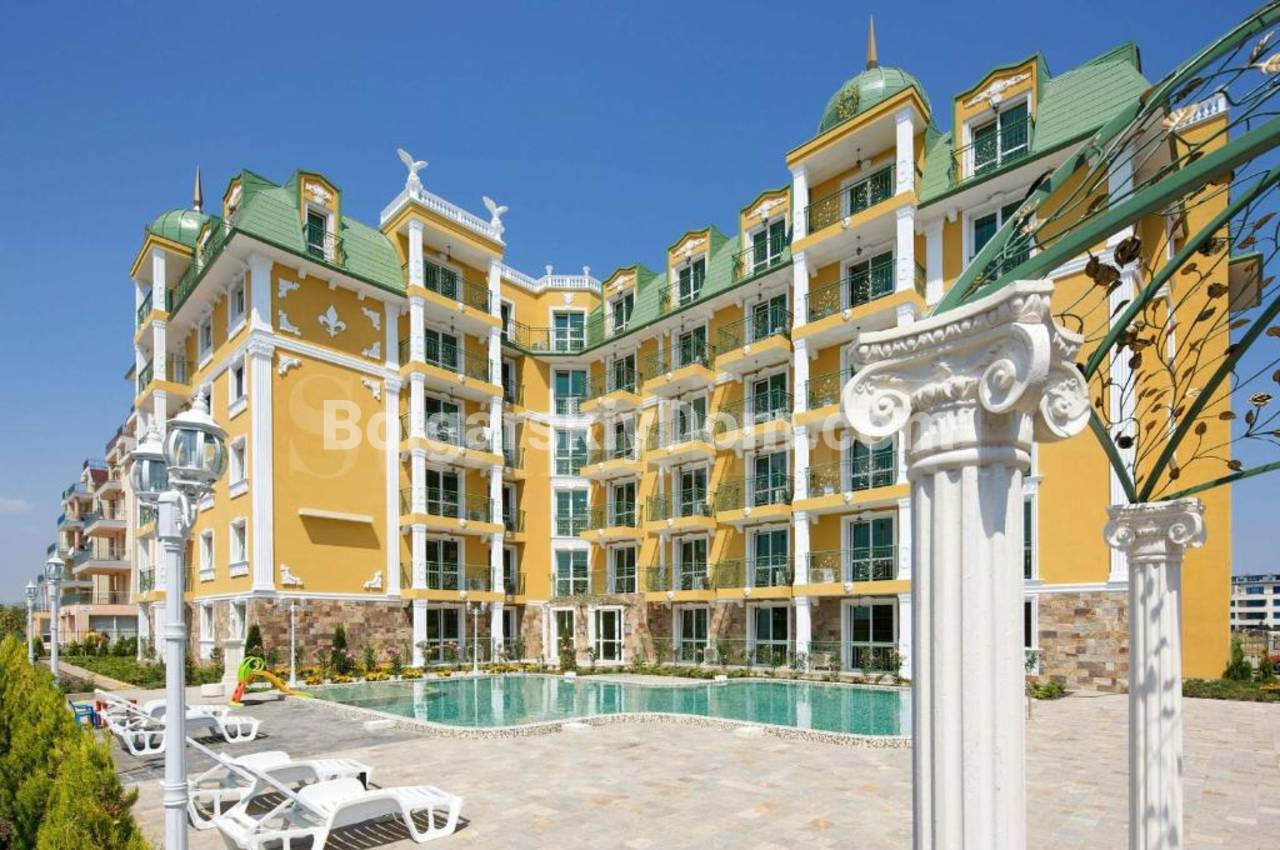 Сам комплекс - это настоящая фотозона: фонтаны, античные скульптуры, кованые ограждения и беседки создают атмосферу парижского шика. Но за красивым фасадом скрывается и практичность: здание имеет Акт 16, бытовые тарифы и, что является огромной редкостью для Солнечного Берега, подземный паркинг. Локация выбрана стратегически верно для круглогодичной жизни: в пешей доступности находятся крупные супермаркеты «Т-Маркет» и «Жанет», работающие и зимой, а до старинного Несебра всего одна остановка. Такса всего 10 евро, до моря 700 метров.