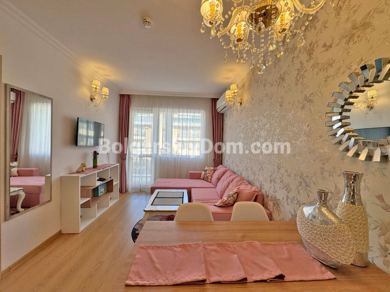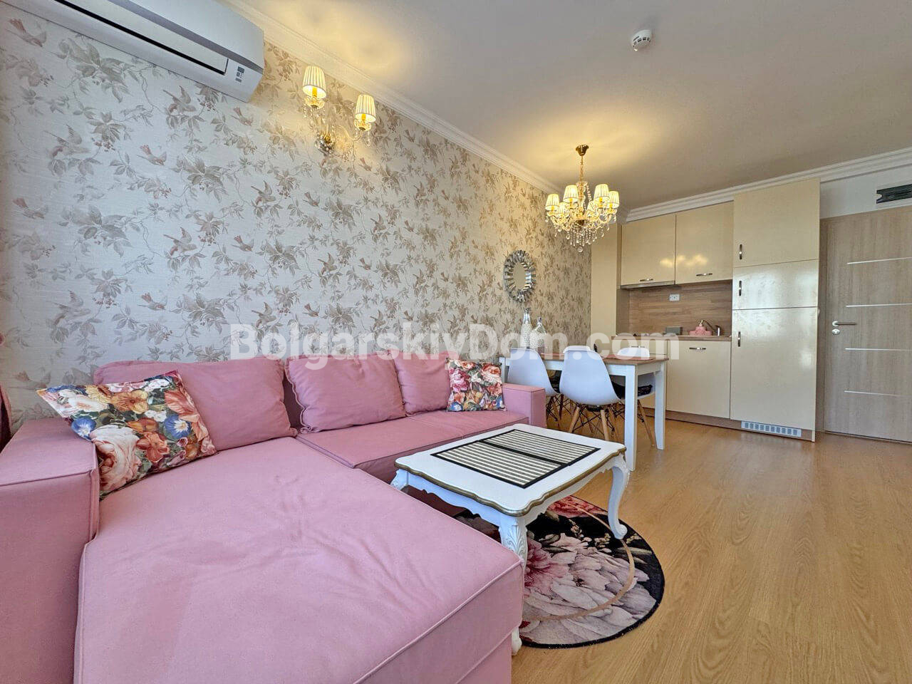 Команда Болгарского Дома презентует топ-новинку для действительно рациональной инвестиции! Если вы цените эстетику и не готовы соглашаться на типовые жилые коробки, серия апарт-отелей Свит Хоум создана специально для вас. В шестом блоке этой знаменитой линейки на Солнечном Берегу появилась в продаже компактная, но очень грамотно спланированная двухкомнатная квартира метражом 45 кв.м. Квартира расположена на пятом этаже - идеальная высота, чтобы иметь хороший вид из окон, не находясь при этом под самой крышей. Здание имеет Акт 16, а сама квартира находится в отличном состоянии и полностью меблирована. Благодаря высокой репутации застройщика и узнаваемому стилю комплексов Свит Хоум, такая недвижимость всегда остается ликвидной. Ее легко сдать в аренду или выгодно перепродать в будущем, так как спрос на качественные дизайнерские проекты на Солнечном Берегу только растет.