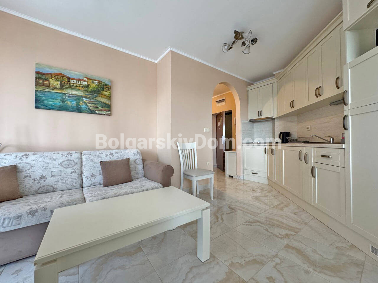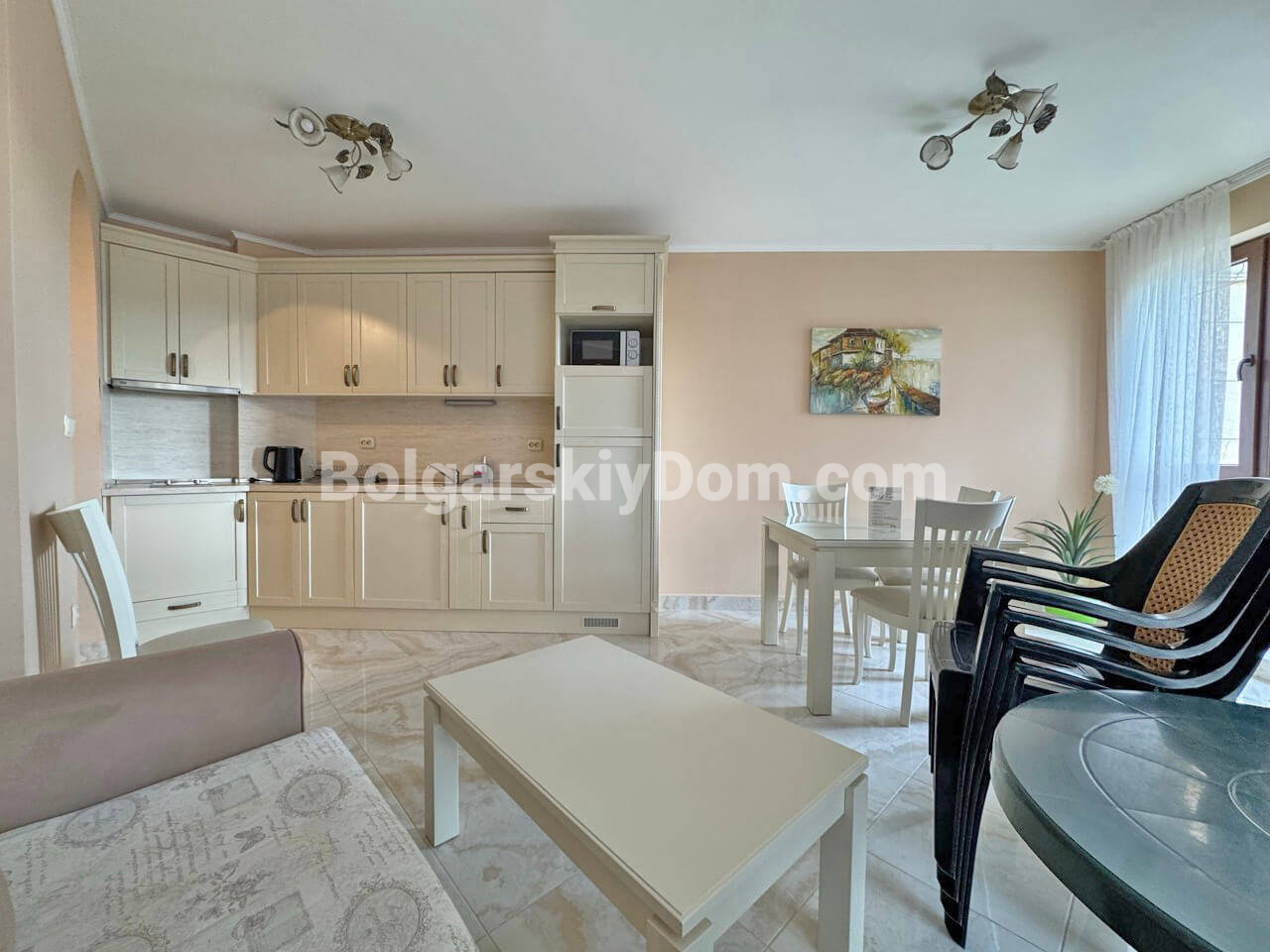 Линейка предложений в Равде обновилась: представляем двухкомнатную квартиру квадратурой 68 квадратных метров в престижном комплексе Посейдон! Жилье расположено на первом этаже, поэтому владельцы получают бонус в виде просторной террасы для отдыха. Внутри выполнен свежий ремонт, установлена качественная мебель и бытовая техника. Такой формат позволяет переехать или начать сдавать объект в аренду без трат на обустройство и лишнего ожидания. Отличная ликвидная недвижимость только в каталоге Болгарского Дома - напишите или позвоните нам прямо сейчас!