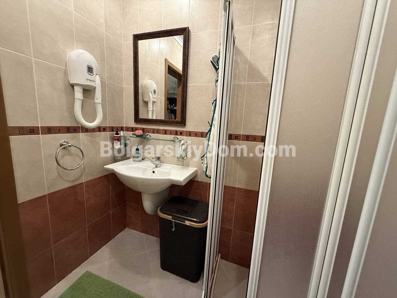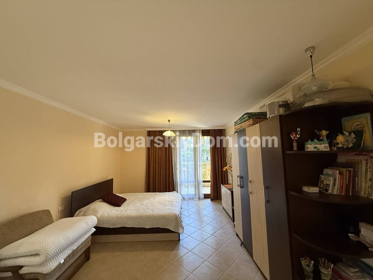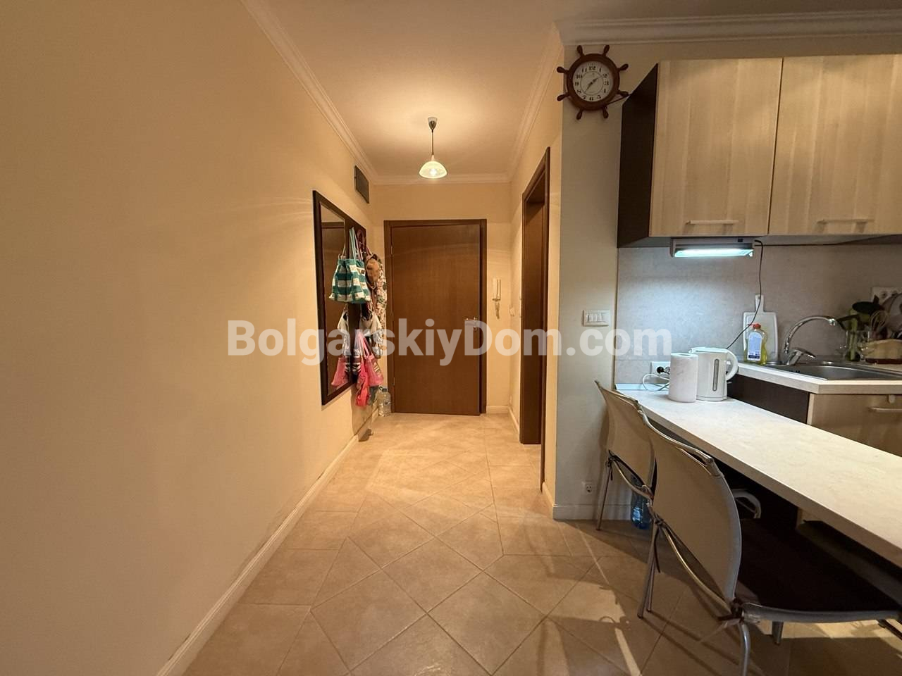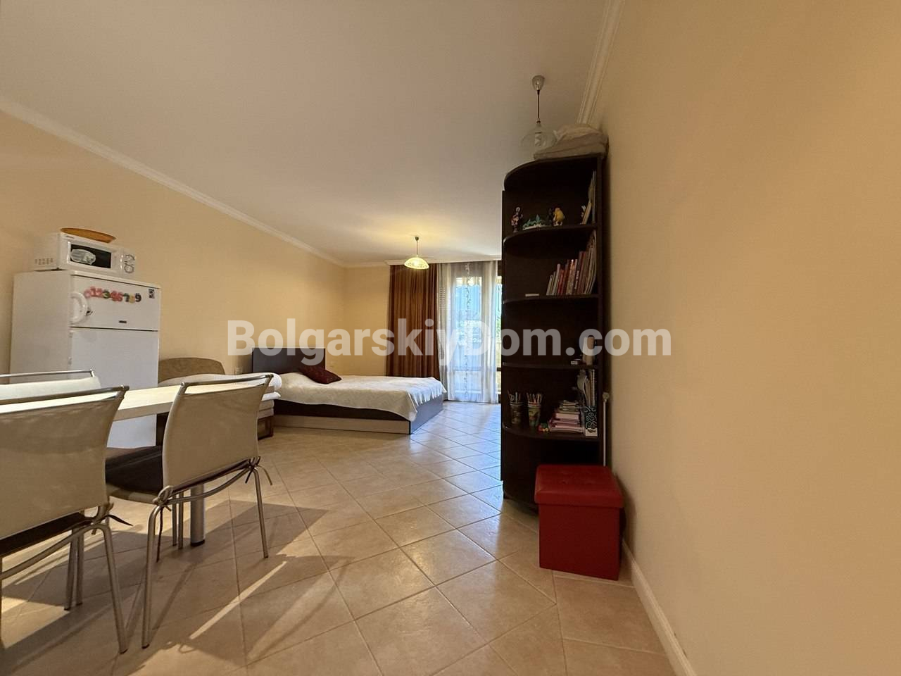 Встречайте новинку из Созополя в каталоге Болгарского Дома - светлую и ухоженную студию площадью 44 квадратных метра! Она расположена на первом этаже, поэтому вы получаете легкий доступ к дому прямо с прогулочных аллей. Пространство организовано грамотно: внутри выделена полноценная кухонная зона с обеденным столом, стоит удобная двуспальная кровать и продуманы места для хранения вещей. Квартира продается под ключ и находится в прекрасном состоянии, так что после сделки можно сразу заезжать или запускать объект в аренду как готовый бизнес-актив.