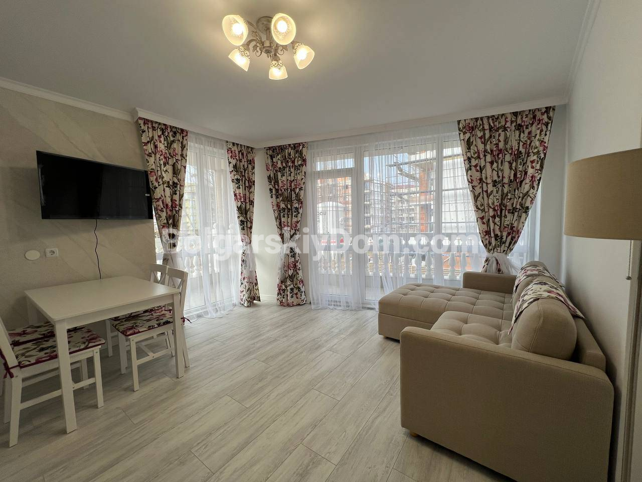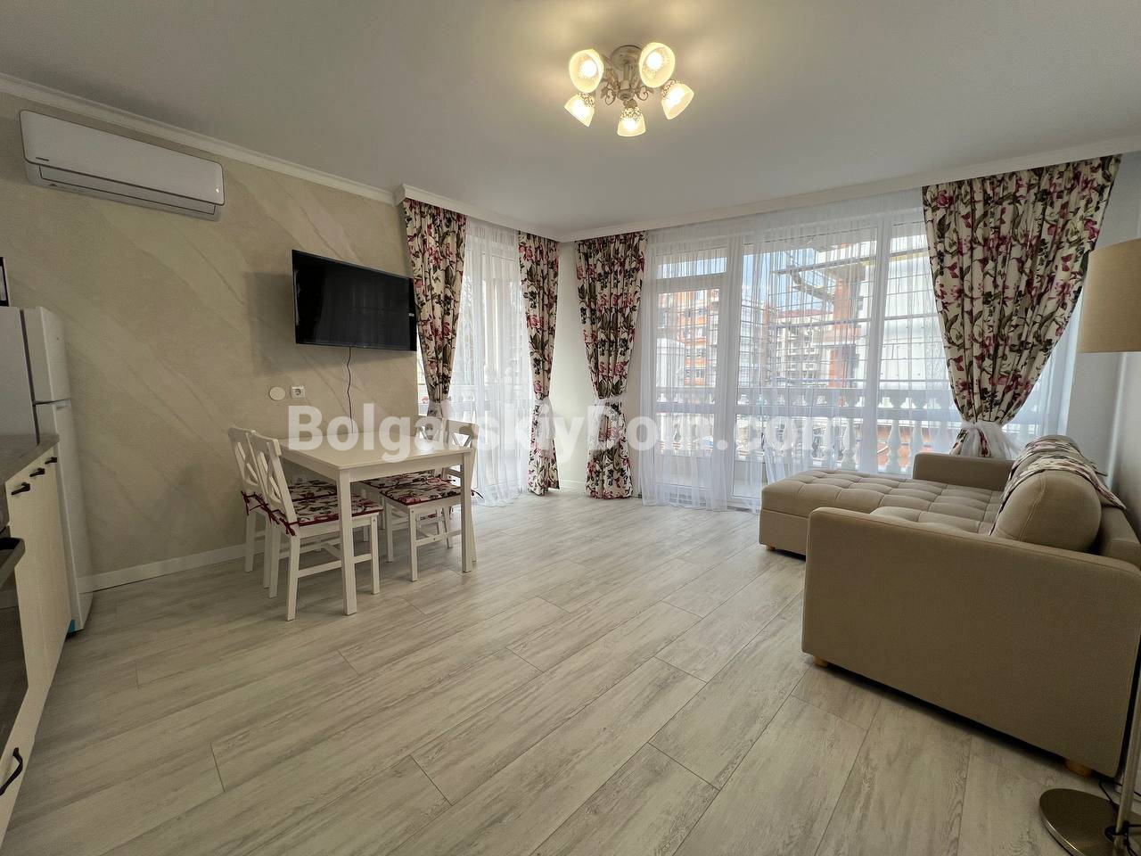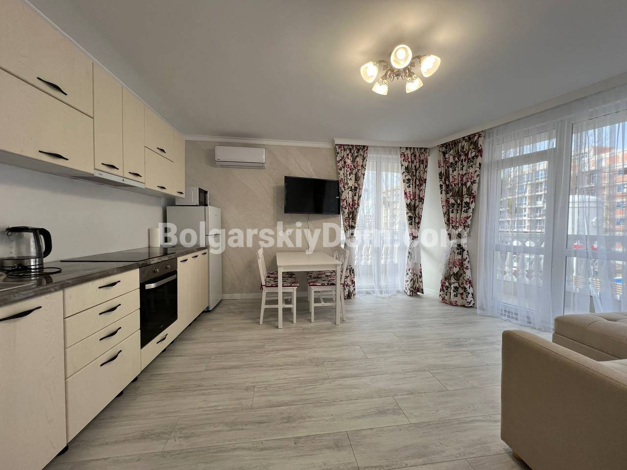 Солнечный берег, топ-курорт и отличная локация! Команда Болгарского Дома представляет просторный двухкомнатный апартамент метражом 70 кв.м. в жилом комплексе Магнолия 7. Квартира расположена на втором этаже и встречает новых владельцев полностью готовой обстановкой - здесь уже выполнен современный ремонт в спокойной цветовой гамме. Планировка: светлая кухня-гостиная с обеденной зоной плавно переходит в место для отдыха, а отдельная спальня оборудована большой кроватью. Жилье укомплектовано всей необходимой бытовой техникой, включая кондиционер и стиральную машину в современной душевой комнате. Из комнат есть выход на балкон, который можно обустроить как дополнительный уголок для утреннего кофе на свежем воздухе. Хотите забронировать время для личного осмотра этой квартиры или провести встречу в онлайн-формате? Напишите нам!