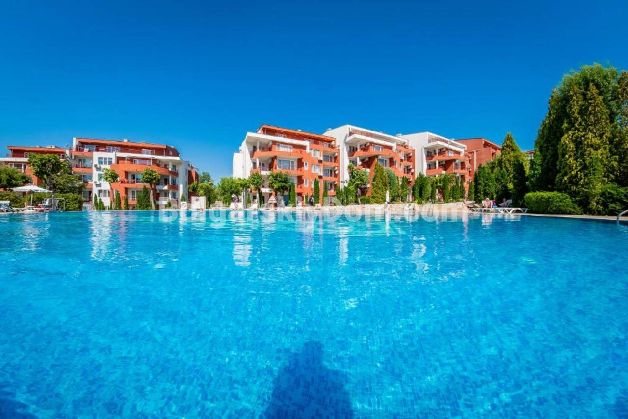 Комплекс Грин Форт работает на всесезонной основе и расположен в уникальной локации на стыке Солнечного Берега и Святого Власа. Всего пять минут ходьбы отделяют дом от береговой линии, рядом находятся супермаркет и остановка транспорта. На закрытой территории создана богатая инфраструктура: бассейны с водными горками и джакузи, теннисный корт, футбольное поле и ресторан. Здание имеет Акт 16 и подходит для жизни в любой сезон. Такса поддержки составляет 14.5 евро за метр, включая пользование всеми удобствами и охрану.