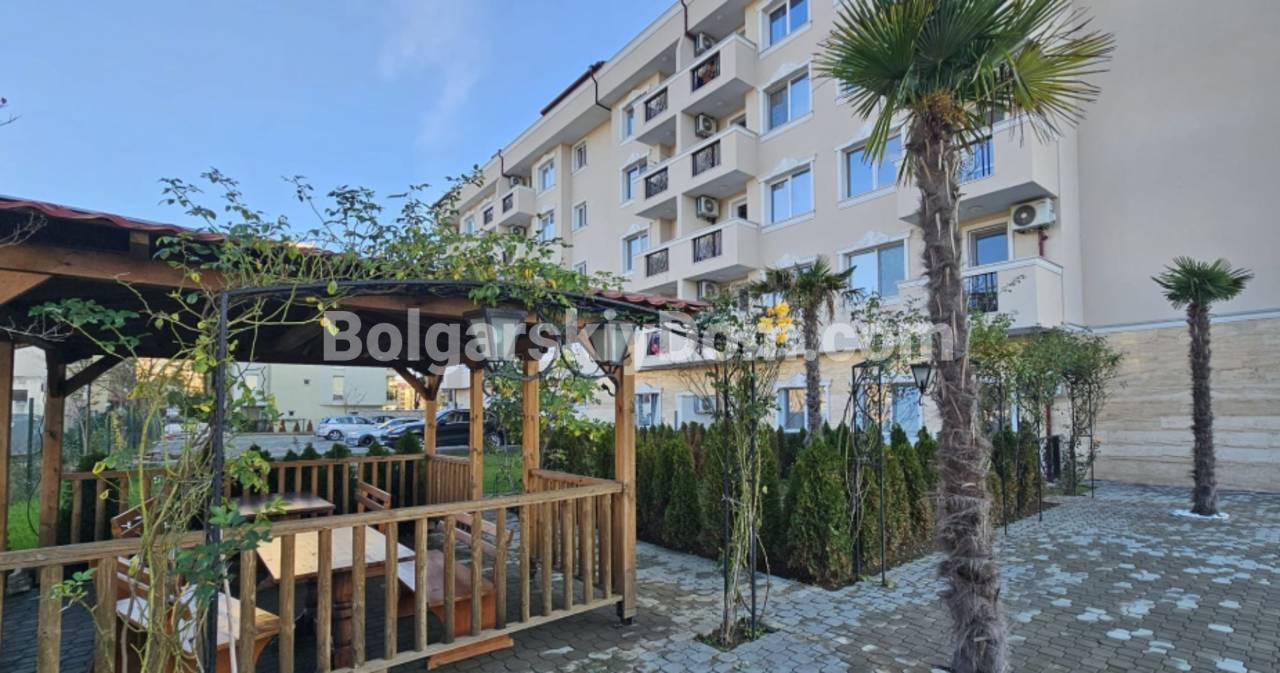 Сам комплекс Магнолия 6 находится в центре Солнечного Берега и успешно сочетает удобную локацию с приватностью закрытого клуба. На территории есть все для качественного отдыха: ухоженные зеленые зоны, открытый бассейн и площадки для релакса под присмотром собственной охраны. До широкого песчаного пляжа около десяти минут неспешным шагом - это 700 метров, которые отделяют вас от побережья. Здание уже введено в эксплуатацию, имеет Акт 16 и полностью адаптировано для жизни в любой сезон. Такса поддержки составляет 10 евро за метр в год, что гарантирует порядок в общих частях и безопасность вашего имущества.