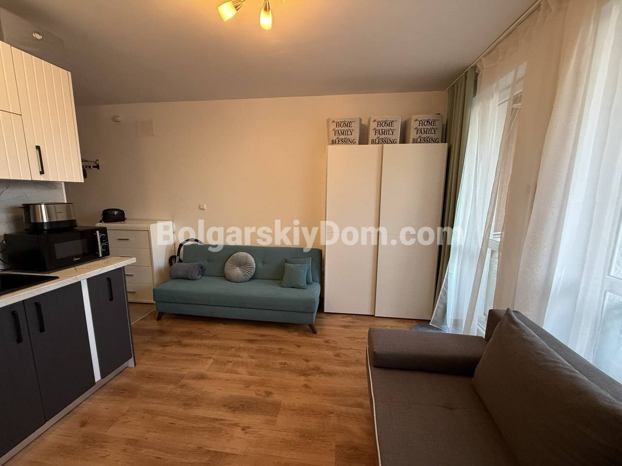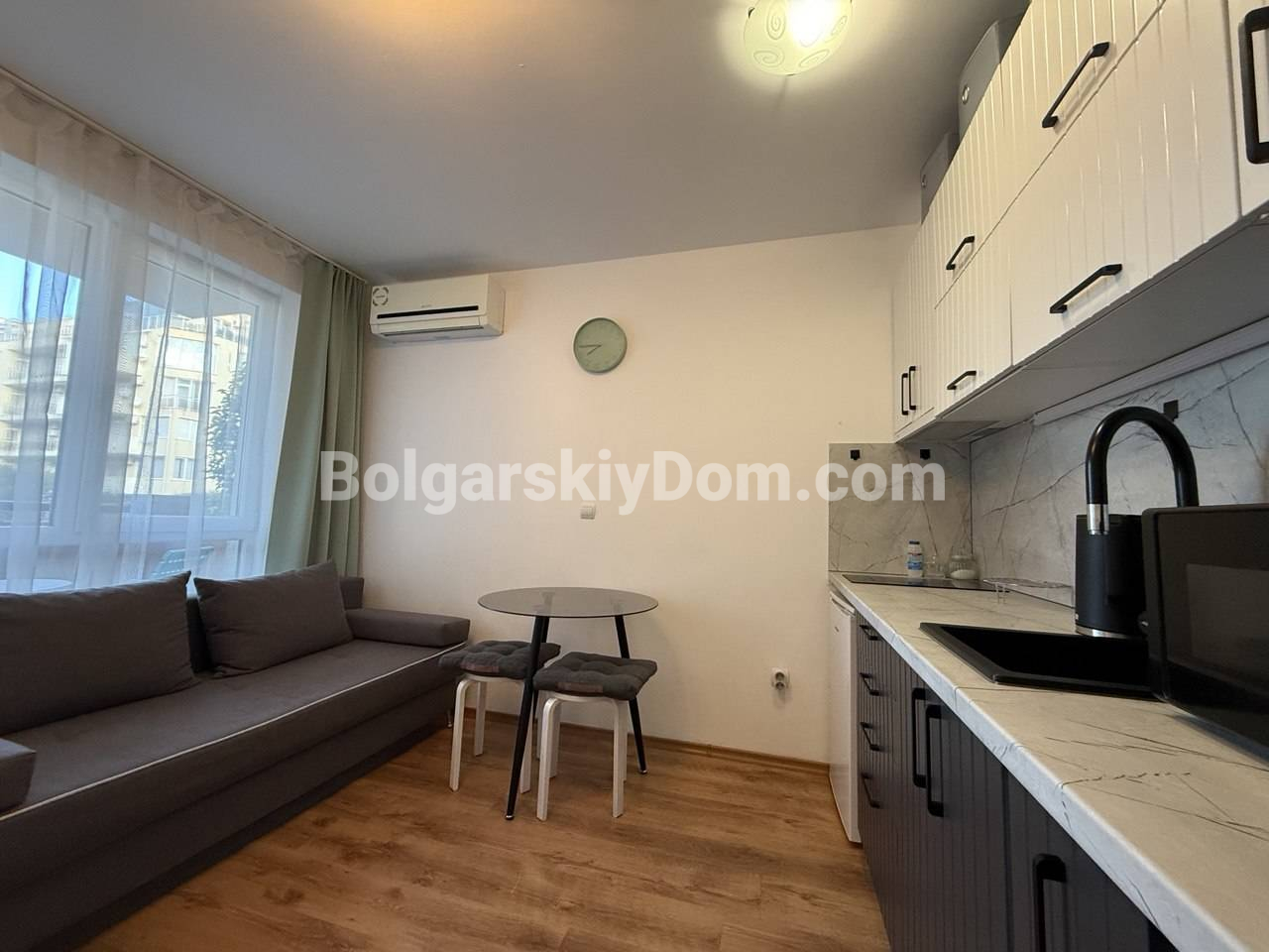 От Болгарского Дома - новинка в самом центре самого популярного курорта, Солнечный берег! Эта студия в комплексе Каса Роса предлагается полностью в состоянии под ключ, избавляя вас от любых забот по обустройству. Метраж в 32 кв.м. спланирован так, что внутри нашлось место для полноценной кухонной зоны, места для отдыха и хранения вещей. Квартира находится на первом этаже, вся мебель и бытовая техника уже входят в стоимость, а отличное жилое состояние позволяет завезти личные вещи сразу после подписания документов.