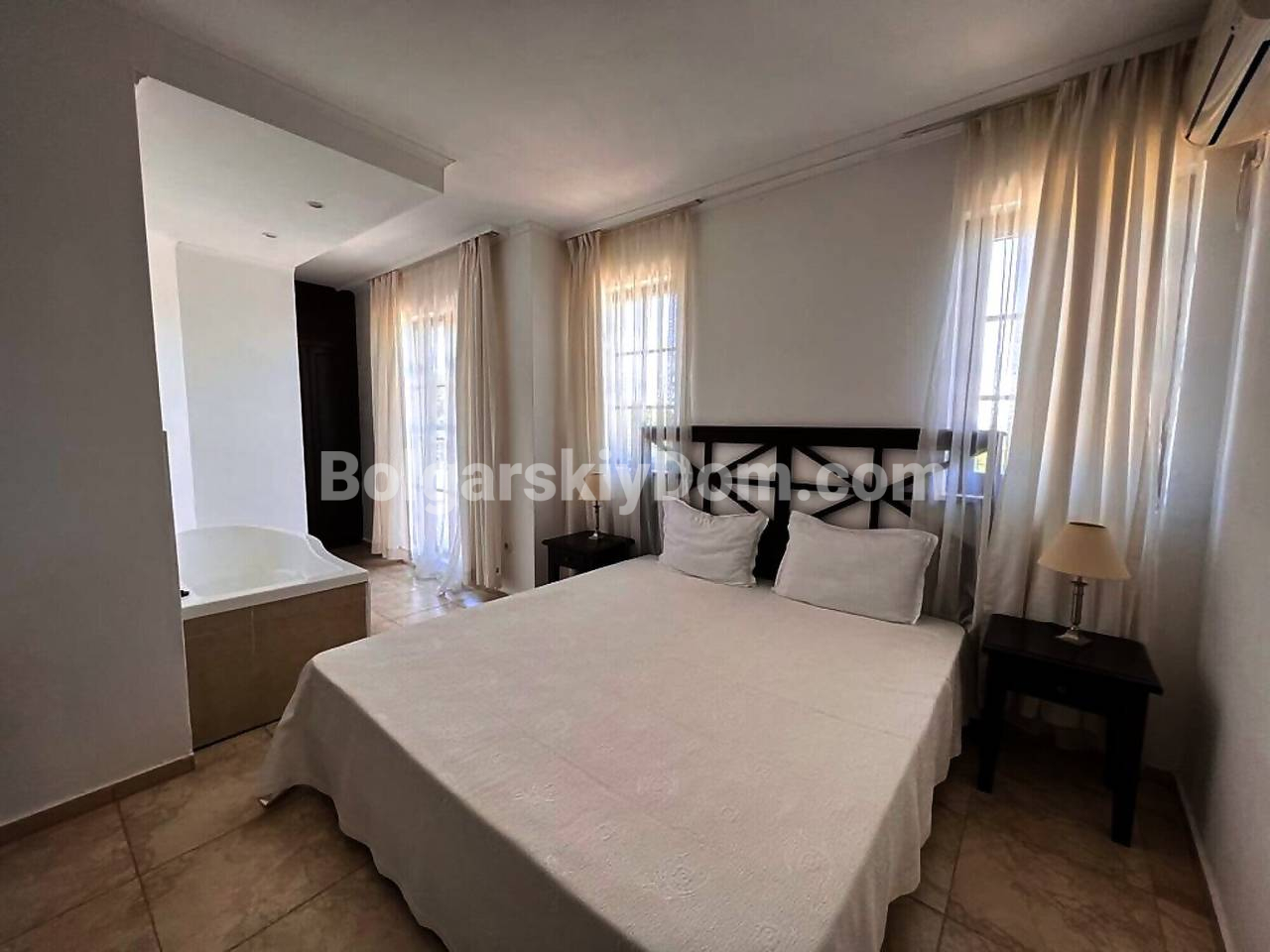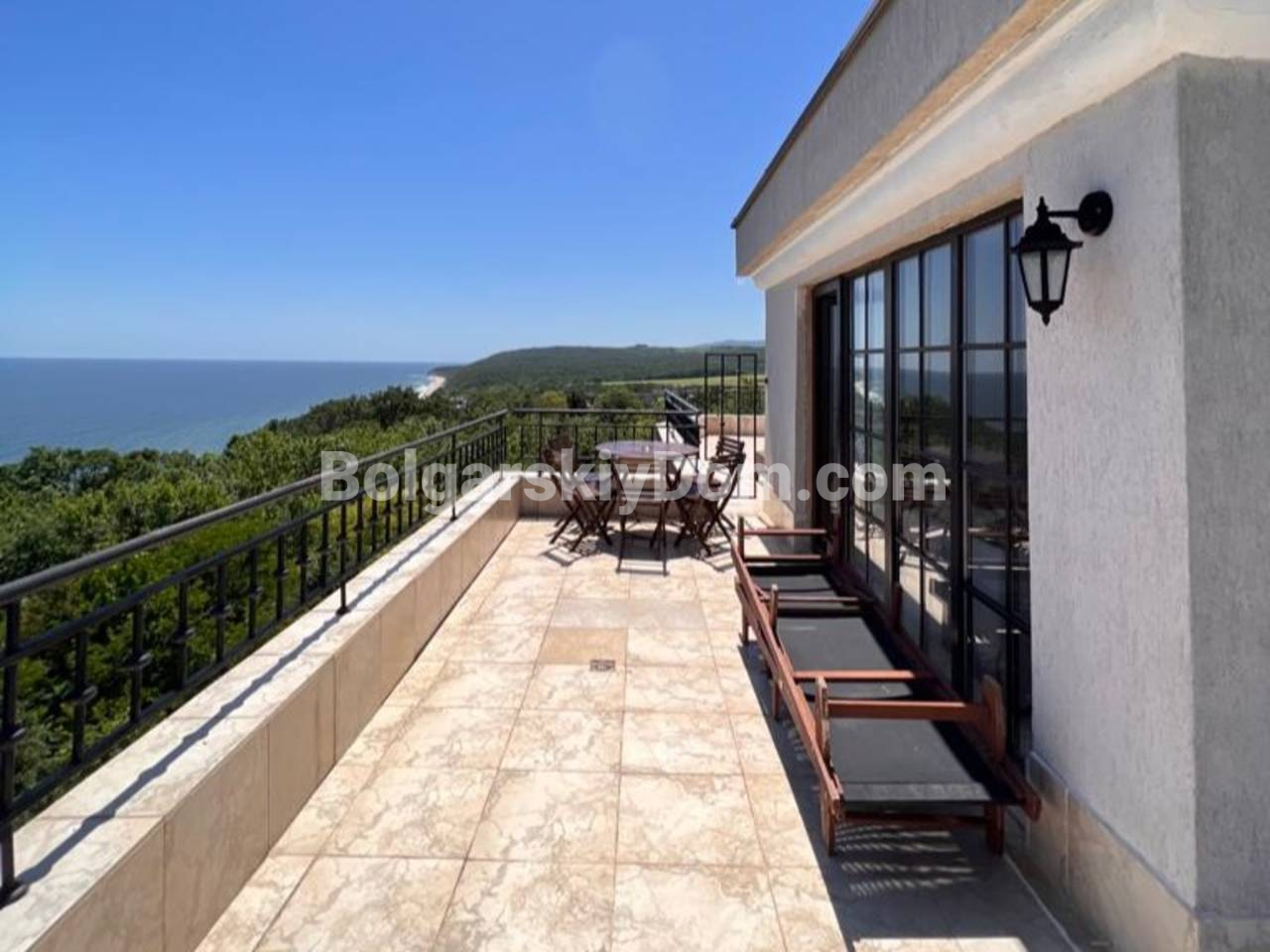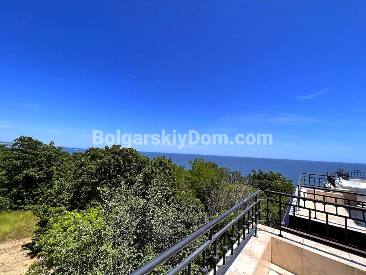 Если вы ищете по-настоящему эксклюзивное жилье на первой линии, этот пентхаус в Обзоре закроет все ваши потребности в статусном отдыхе! Новинка в каталоге Болгарского Дома: пентхаус общей площадью 181,67 кв.м. занимает весь шестой этаж, что гарантирует отсутствие соседей сверху и абсолютную тишину. Планировка включает просторную гостиную с кухонной зоной, две изолированные спальни и две ванные комнаты, одна из которых оснащена ванной, а другая - душевой кабиной. Главная особенность этого лота заключается в огромной террасе с собственным джакузи и шезлонгами, куда можно выйти из любой комнаты. Весь метраж квартиры пронизан светом, а панорама на море, бассейн и сад открывается с каждой точки обзора. Объект полностью меблирован, имеет Акт 16 и готов к эксплуатации без дополнительных вложений.