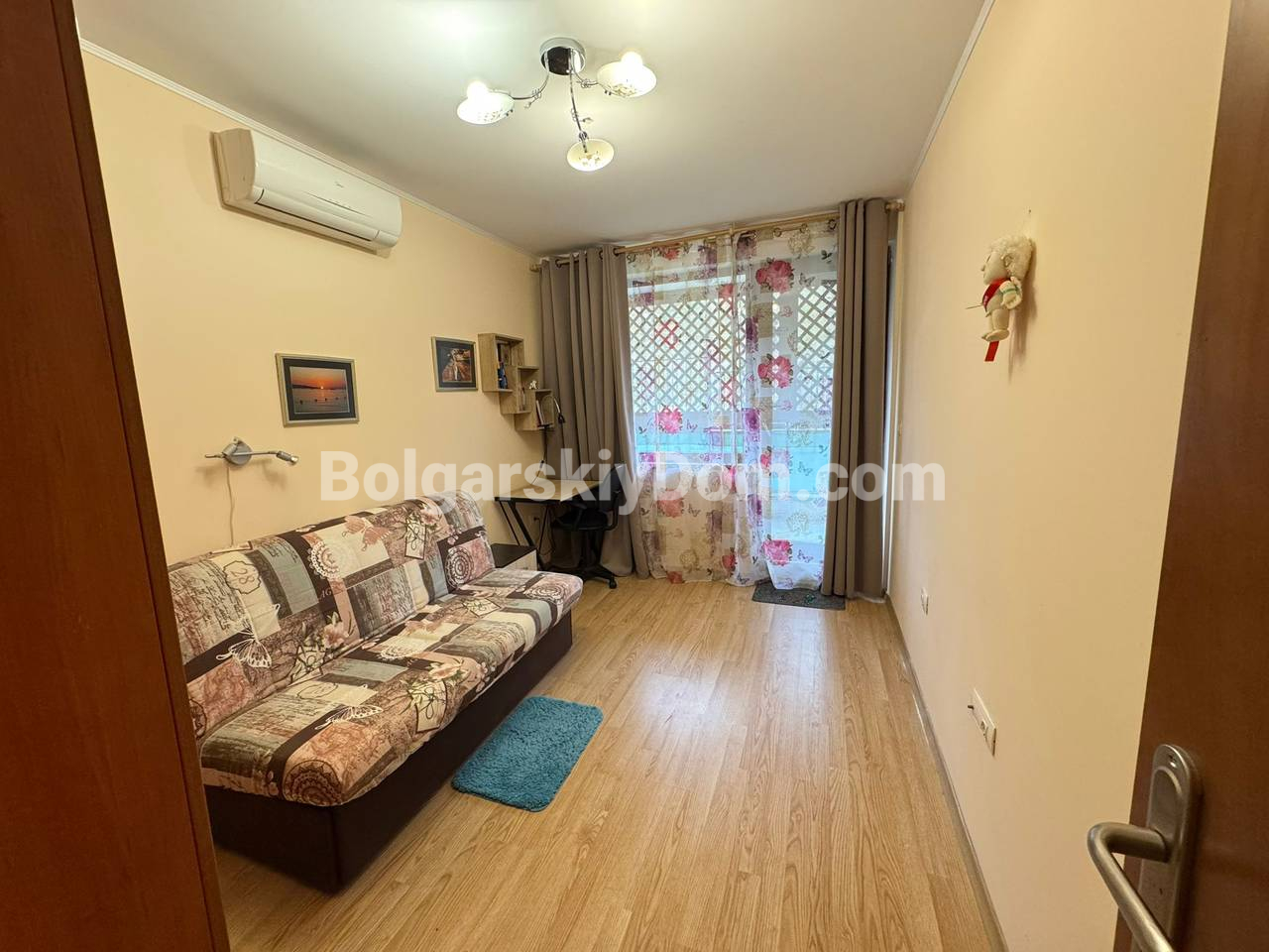 Команда АН Болгарский Дом выставляет на продажу объект на абсолютной первой линии в Святом Власе! Квартира площадью 96 кв.м. занимает первый этаж в одном из самых масштабных и статусных комплексов побережья, Райский Сад. Юго-восточная экспозиция гарантирует приятный вид на окрестности, который открывается прямо из ваших окон. Планировка формата 2+1 включает все необходимое для жизни: функциональную кухню, гостиную и две спальни. Здание 2014 года постройки имеет Акт 16 и находится в отличном техническом состоянии, обеспечивая приватность и безопасность жильцов.