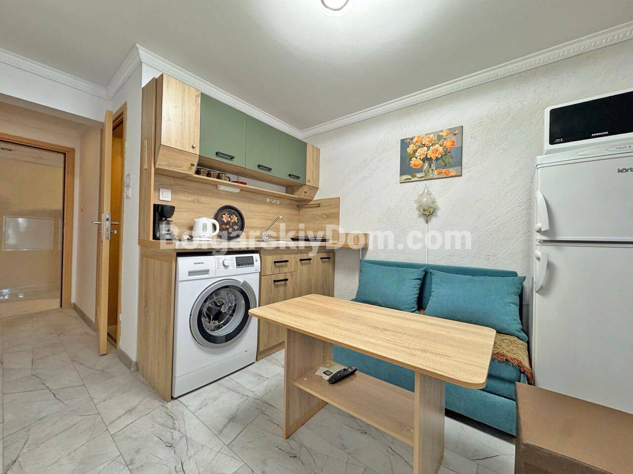 Болгарский Дом выводит на рынок студию в комплексе Соле Мар! Этот объект расположен в стратегической точке на стыке Несебра и основного курортного направления, Солнечного берега. Локация максимально практична: прямо рядом находятся отделения банков, поликлиника, сетевые магазины и ключевые транспортные узлы. Площадь апартамента составляет 34 кв.м. Жилье полностью укомплектовано мебелью и готово к эксплуатации. Четвертый этаж обеспечивает приватность, а просторный балкон добавляет пространства для отдыха на свежем воздухе. До моря всего 400 метров, что делает прогулку до пляжа легкой и быстрой.