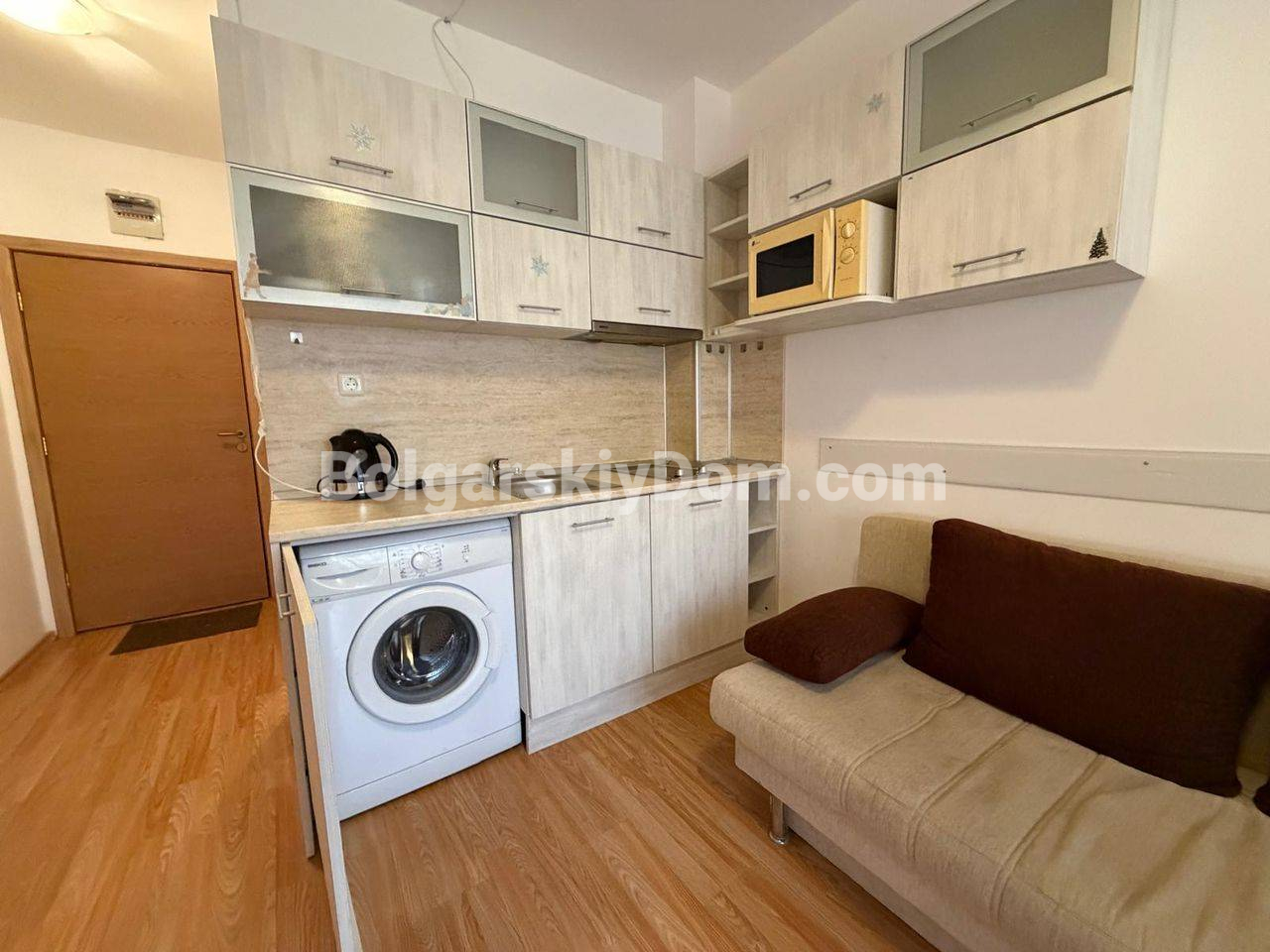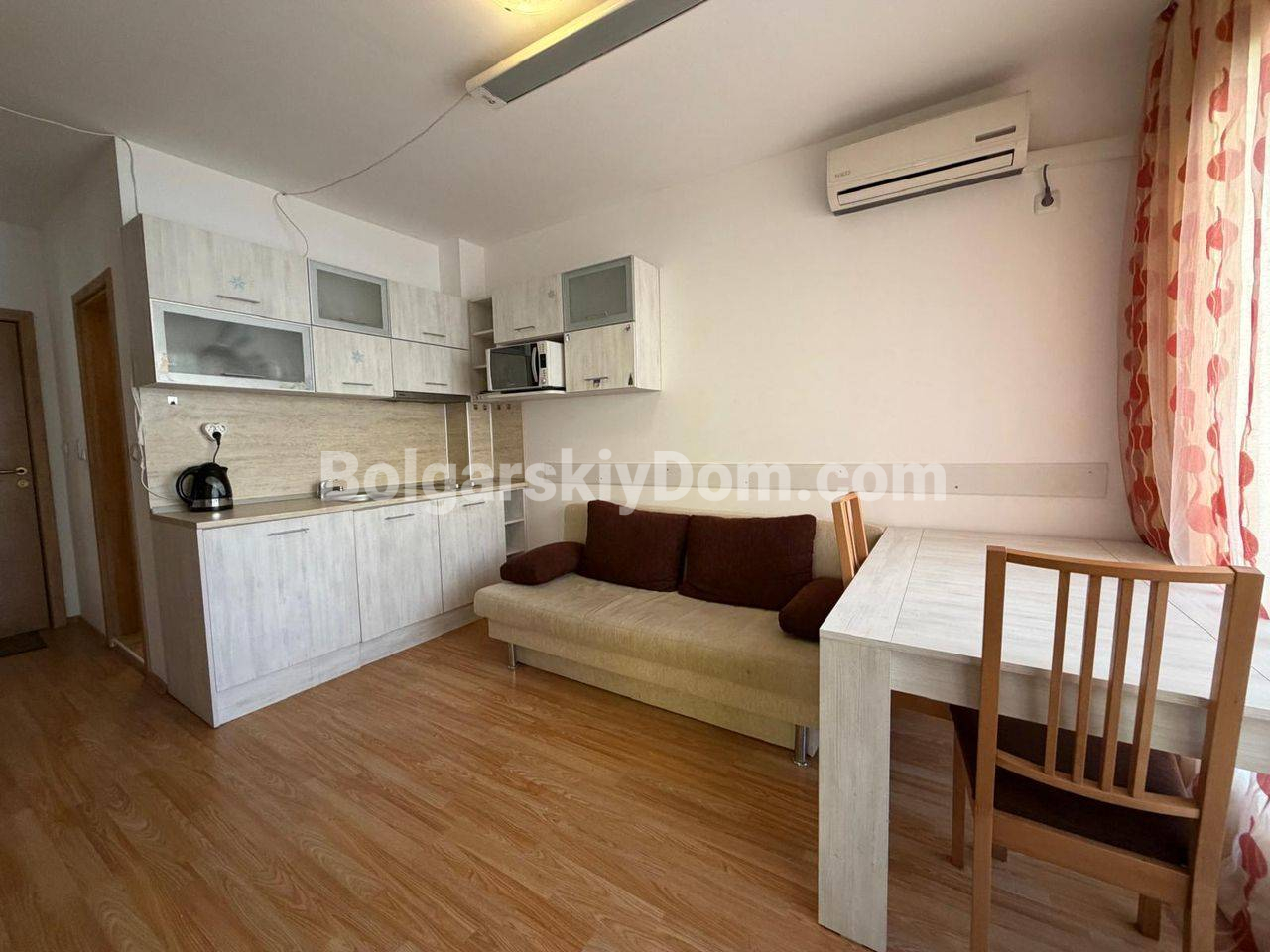Планировка включает уютный балкон с выходом во внутренний двор, что фактически дает вам приватную зону отдыха на свежем воздухе среди зелени комплекса. Инфраструктура Санни Дей 6 позволяет закрыть все базовые потребности на месте: на территории работают несколько бассейнов, спортивные площадки, теннисные корты и магазин под круглосуточной охраной. Локация в 4 км от побережья гарантирует тишину вдали от шума дискотек Солнечного Берега, при этом до моря легко добраться на регулярном шаттле или автомобиле. Годовая такса обслуживания составляет 580 евро, обеспечивая порядок и безопасность. Этот объект подходит для длительного проживания или в качестве готовой арендной единицы с понятным порогом входа. Готовы обсудить условия сделки? Напишите нам!