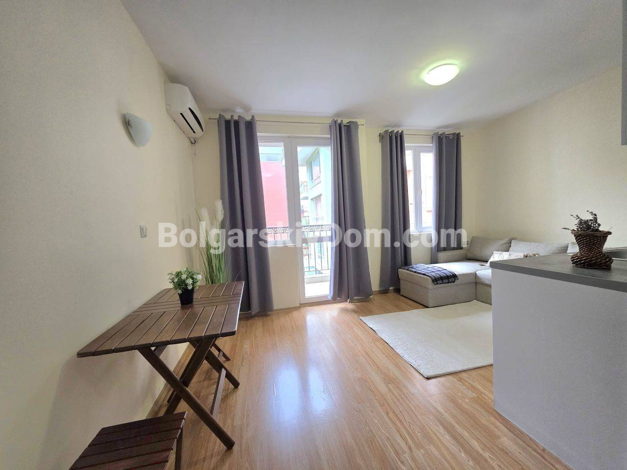 Ликвидный объект в продаже! Болгарский Дом предлагает всем соискателям рассмотреть студию в комплексе Мираж, расположенном в популярном районе Кокалу (квартал Аурелия) в Несебре. Планировка студии максимально продумана, а обилие естественного света создает приятную атмосферу внутри. Формат «под ключ» экономит ваше время, избавляя от необходимости заниматься обустройством с нуля. Квартира площадью 33 кв.м находится на третьем этаже и полностью укомплектована мебелью и техникой. Основной плюс здесь в том, что объект не требует никаких дополнительных вложений: вы просто получаете ключи и можете сразу использовать жилье для себя или запускать его в аренду.