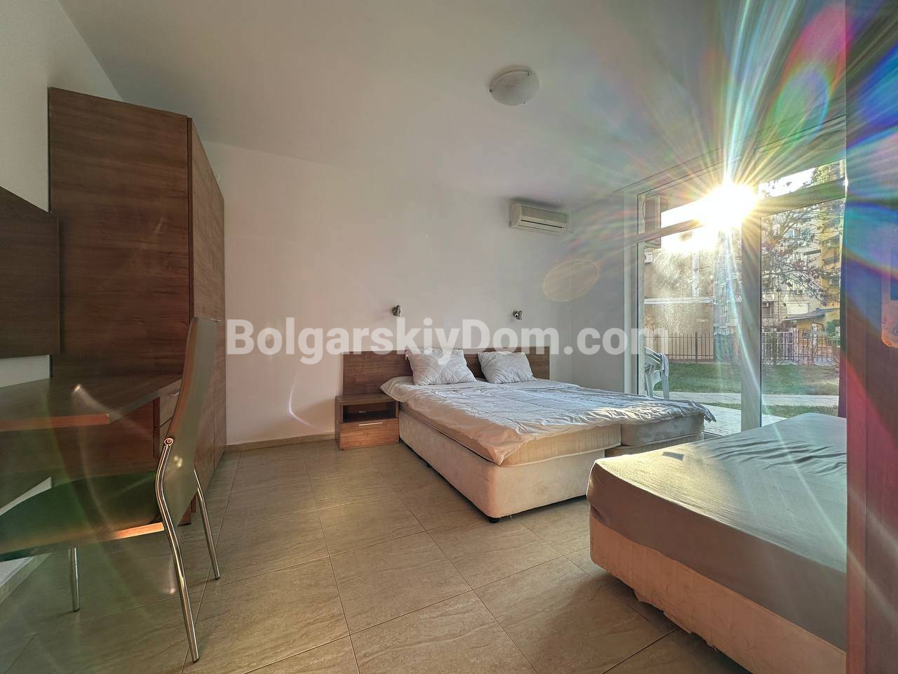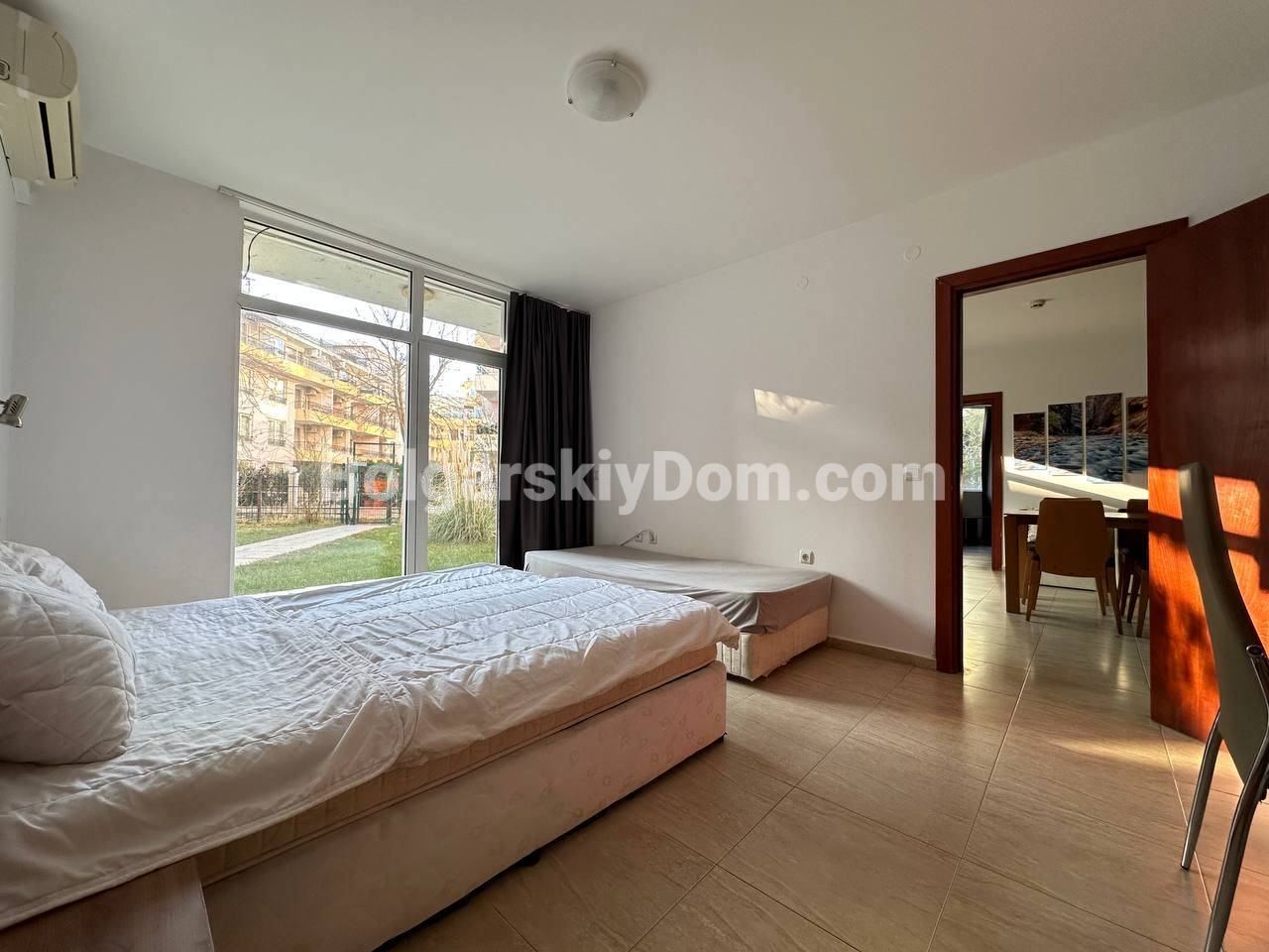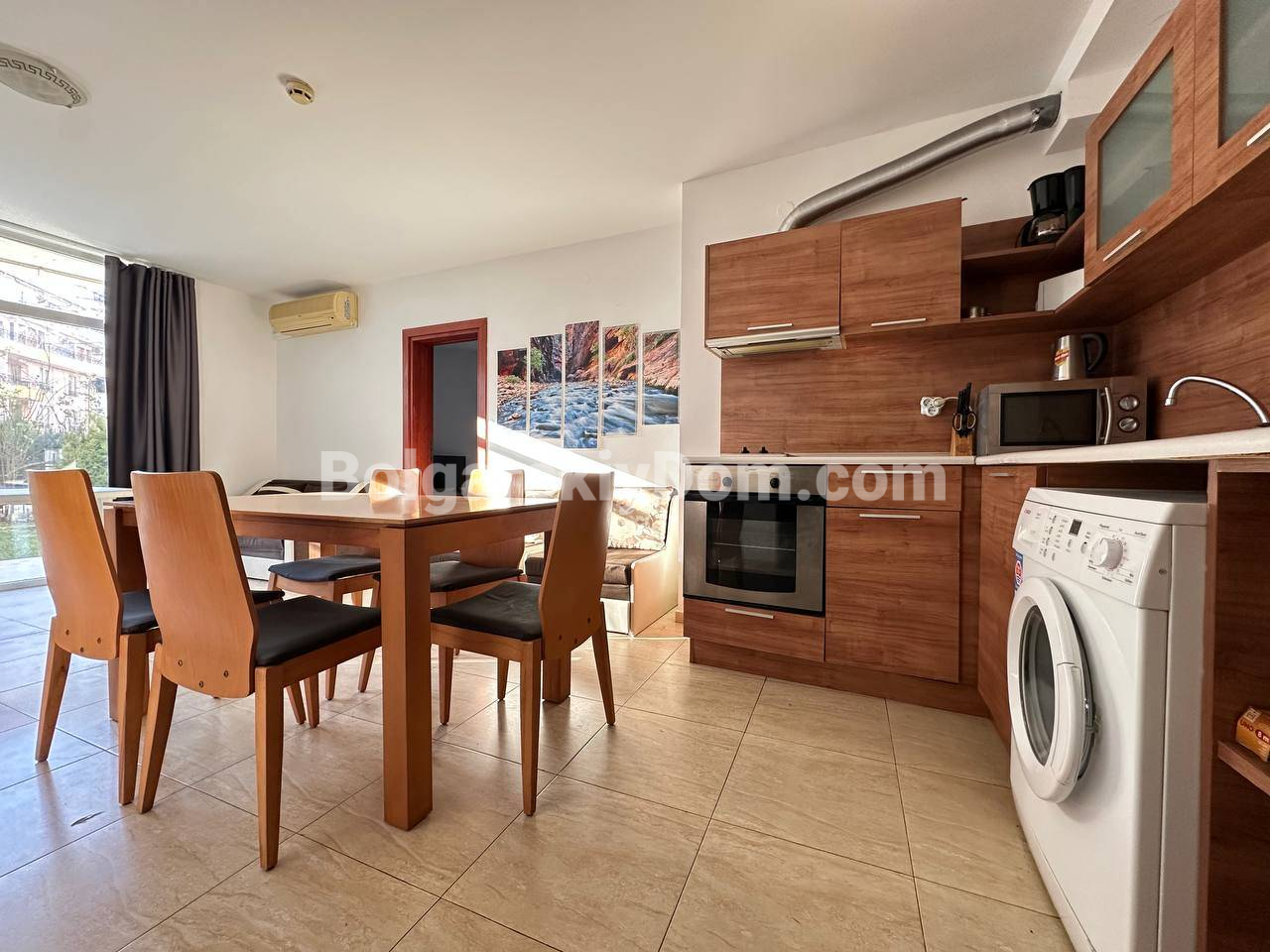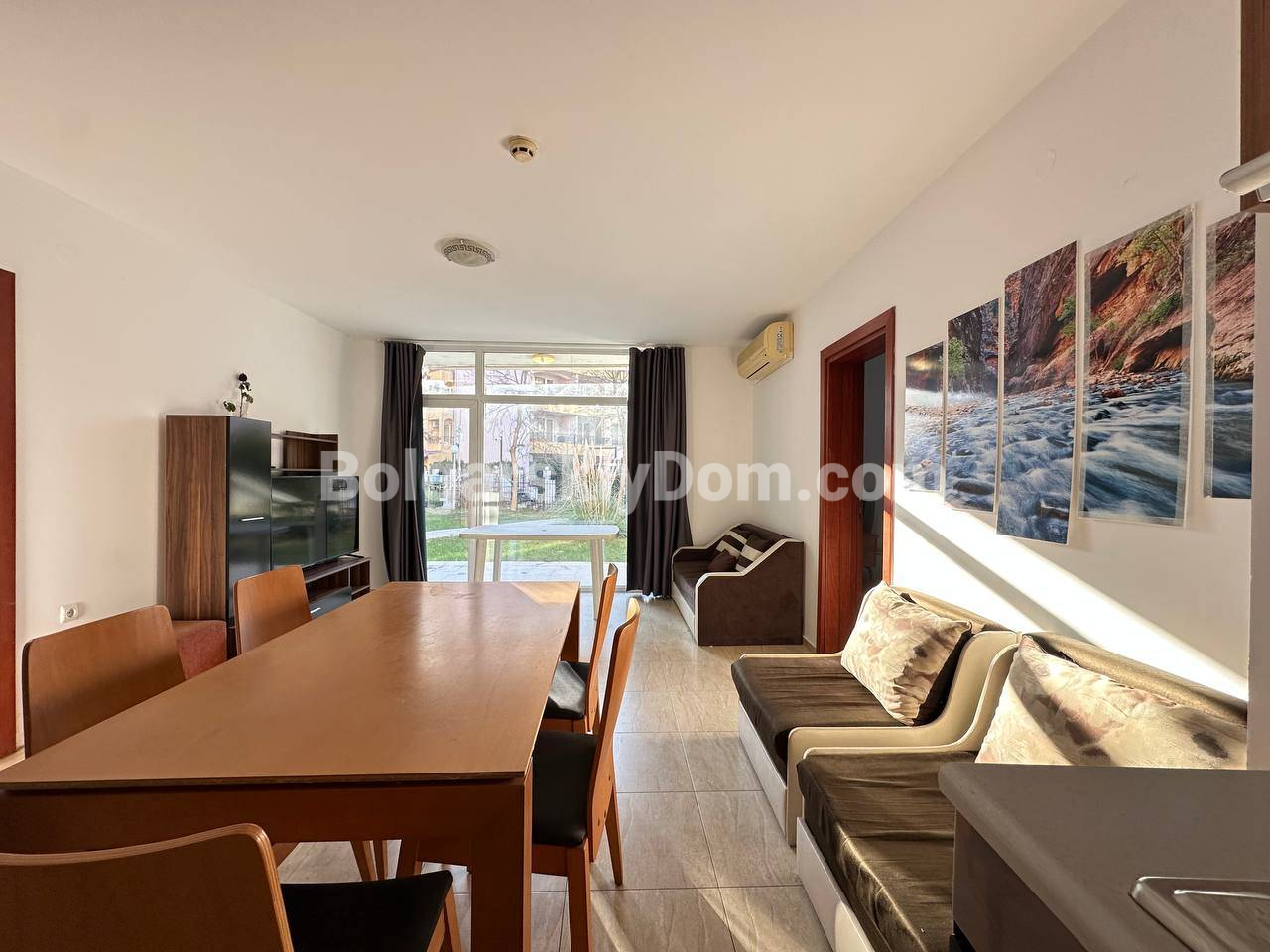 Отличное пополнение каталога в АН Болгарский Дом! На продажу наша команда выставляет трехкомнатную квартиру в центральном районе Солнечного Берега, в хорошо обслуживаемом комплексе Сан Виллидж. Квадратура жилья составляет 78 кв.м., оно расположено на первом этаже и имеет функциональную планировку с двумя спальнями и двумя санузлами. Главной особенностью лота является просторная веранда с выходом в сад, получается, что у вас буквально будет свой дворик! Объект полностью укомплектован и готов к сделке, а вы получаете качественное пространство для жизни или сезонного отдыха у моря.