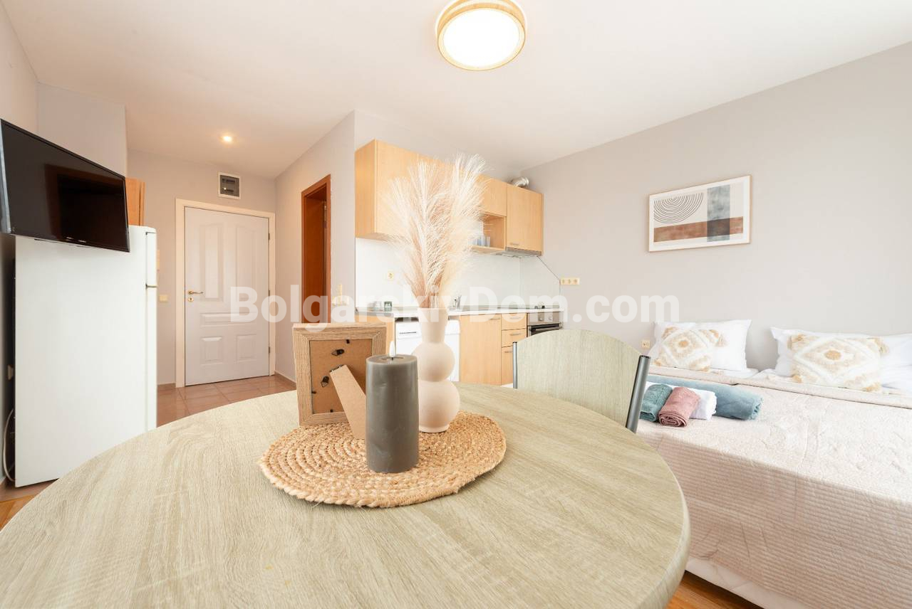 Новинка! Представляем вашему вниманию просторное и светлое студио в одном из самых популярных семейных комплексов Солнечного Берега - Несебр Форт Клуб. Квадратура этого жилья составляет 42 кв.м., что значительно превышает стандарты обычных студий и обеспечивает жильцам настоящий комфорт. Квартира расположена на четвертом этаже современного кирпичного здания, оборудованного лифтом. Объект полностью меблирован, оснащен необходимой техникой и имеет Акт 16, что позволяет сразу оформить право собственности и наслаждаться отдыхом или планировать переезд. Расположение прямо напротив известного аквапарка Экшн делает этот лот особенно привлекательным для летнего отдыха.