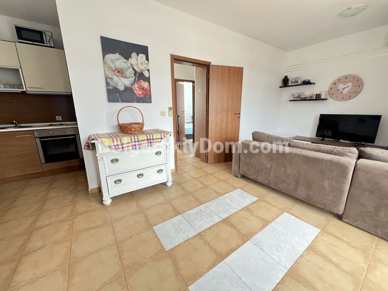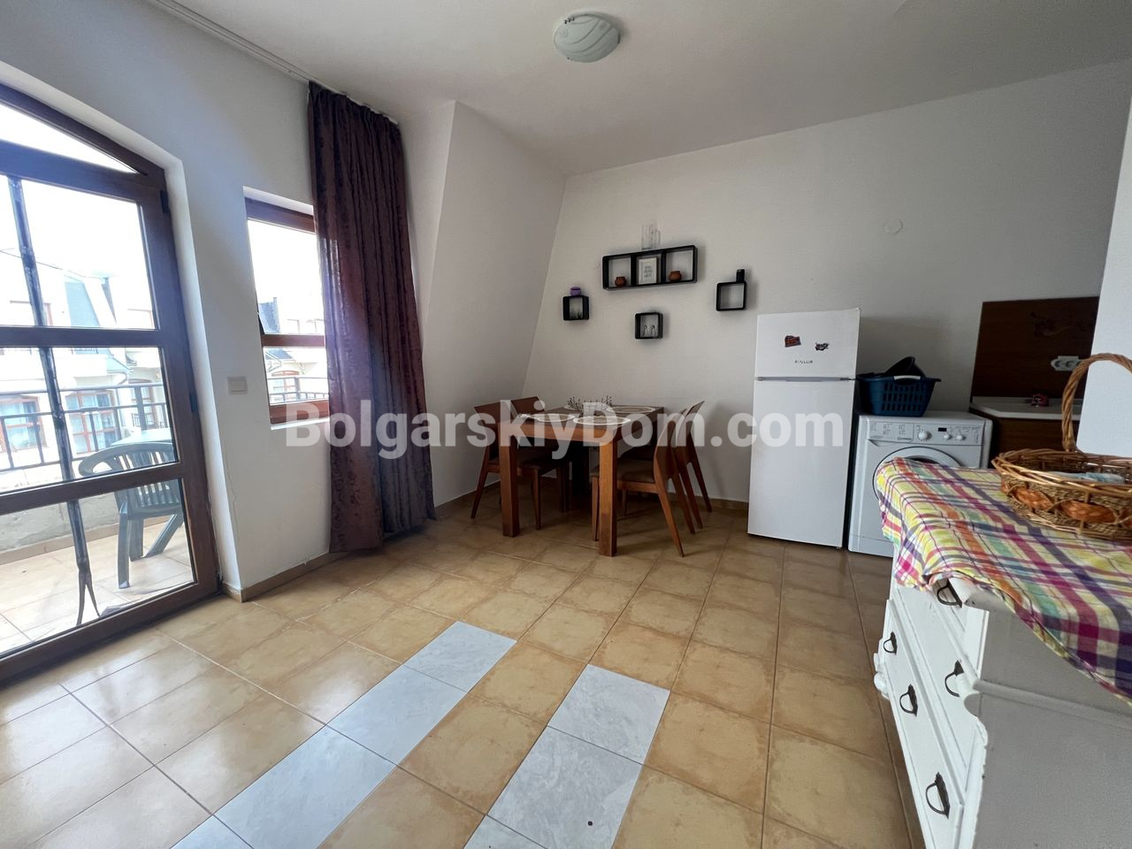 Отличный объект от Болгарского Дома в продаже! На стыке Солнечного Берега и Кошарицы предлагается трехкомнатный апартамент площадью 76 кв.м с приятным видом на море, расположенный в ЖК Несебр Вью. Квартира занимает второй этаж и продается в полностью укомплектованном виде - мебель и бытовая техника уже входят в стоимость. Цена предложения зафиксирована на отметке менее 1000 евро за квадратный метр, что подчеркивает выгоду этого приобретения. Уютная и опрятная, она станет прекрасным местом для отдыха и даже длительно проживания (в ЖК есть Акт 16).
