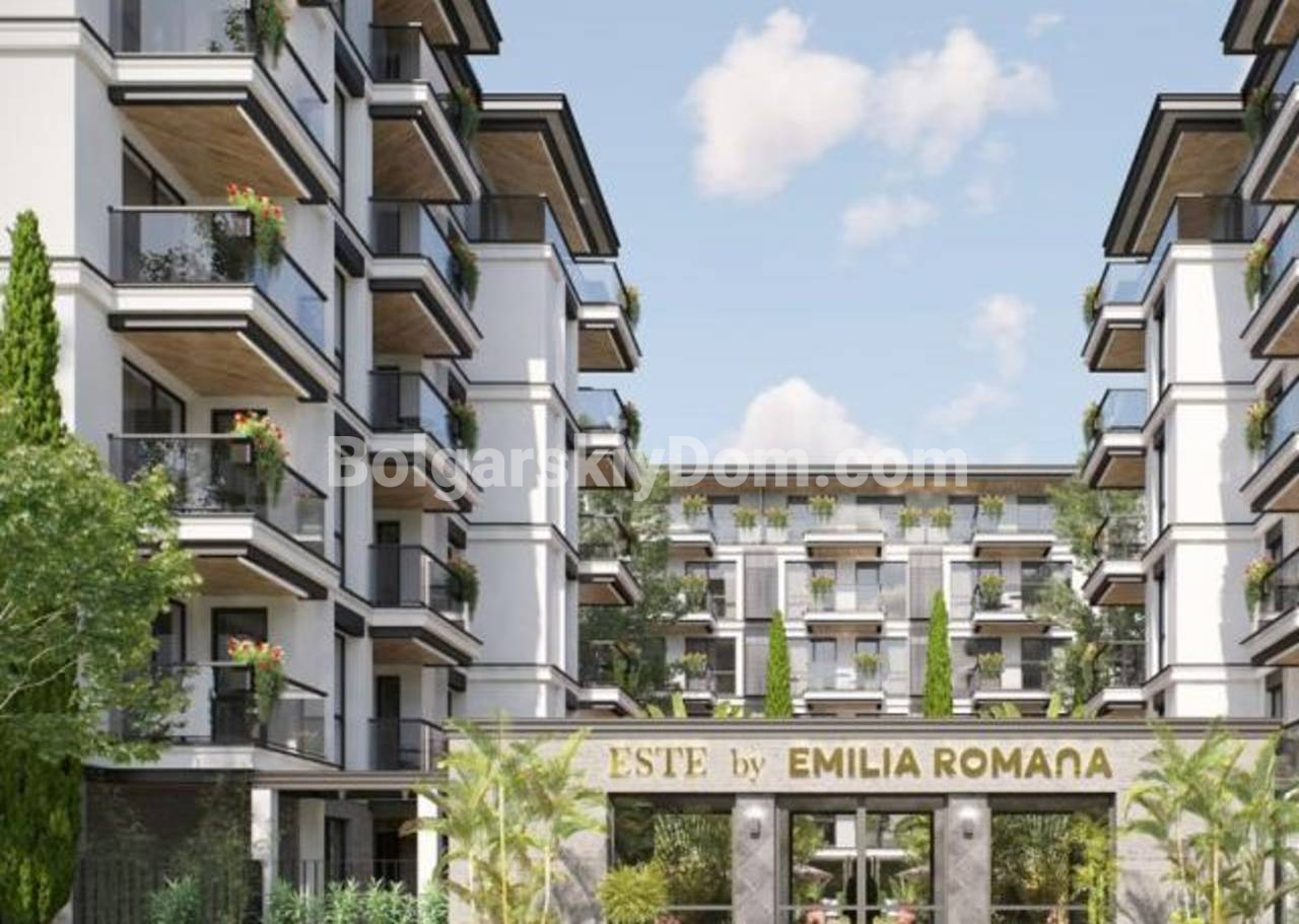 В каталоге Болгарского Дома появилось предложение в одном из самых свежих и качественных проектов Солнечного Берега - комплексе Эмилия Романа Эсте. Квартира площадью 61 квадратный метр расположена на втором этаже. Это новостройка, которая продается без мебели, так что у вас есть возможность сделать интерьер полностью под свой вкус. До моря и центрального пляжа отсюда примерно 700 метров, это около десяти минут неспешным шагом по тихим улицам курорта.