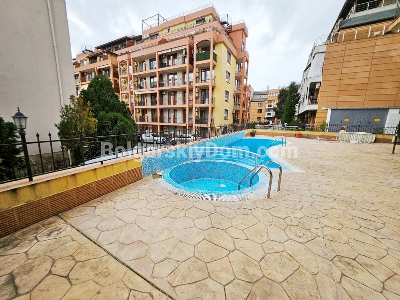 Комплекс расположен в удачном месте: до песчаного пляжа около 450 метров, а вся городская инфраструктура Святого Власа находится под рукой. На территории есть бассейн с детской секцией и много зелени, лаунж-зоны, паркинг, . Доступ для посторонних ограничен, так как объект находится под постоянной охраной и видеонаблюдением, а это важный момент для спокойного отдыха. Огромный плюс - фиксированная такса поддержки всего 450 евро в год. На здание получен Акт 16, поэтому вариант подходит как для летних каникул, так и для постоянного проживания в Болгарии.
