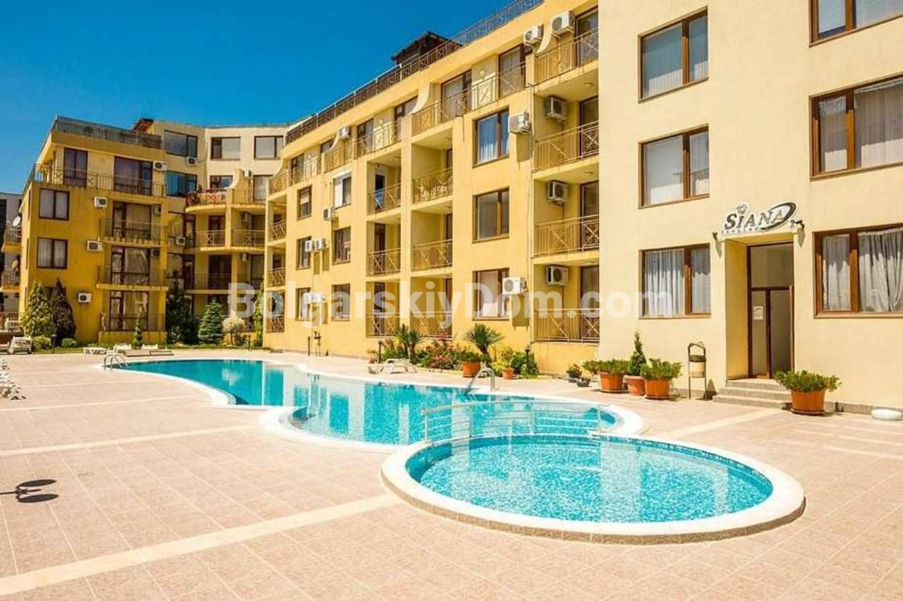 Обновляем каталог ликвидной вторичкой! В Болгарском Доме появилось компактное и практичное предложение в Святом Власе. Это двухкомнатная квартира площадью 39 кв.м. в круглогодичном комплексе Сияна. Жилье находится на первом этаже и продается уже с мебелью и техникой, так что возиться с обустройством не придется. Планировка включает гостиную с кухонным уголком, отдельную спальню и санузел. Балкона в этом варианте нет, зато само состояние квартиры очень достойное - можно заезжать хоть завтра.