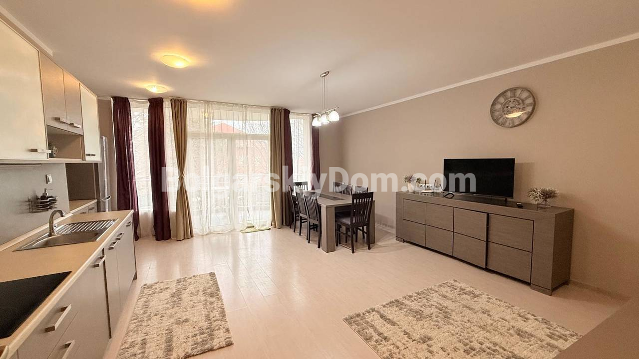 В каталоге Болгарского Дома появилось эксклюзивное предложение на первой линии Равды - просторная трехкомнатная квартира в комплексе Оазис. Это полноценный семейный апартамент площадью 120 кв.м на третьем этаже. Планировка: большая гостиная, две отдельные спальни, два санузла и отличная доп. опция - собственная гардеробная. Из окон и с террас открывается прямой вид на море и внутреннюю территорию с бассейном. Квартира прошла капитальное обновление: здесь полностью заменили проводку и трубы, установили теплые полы и мощные кондиционеры для комфортной жизни в любой сезон. Кухня изготовлена на заказ и укомплектована новой встроенной техникой, включая отдельную постирочную зону со стиральной и сушильной машинами. Все наполнение - от мебели до декора - абсолютно новое и входит в стоимость. Дом с Актом 16, счета за электричество и воду оплачиваются по бытовым тарифам, что делает этот вариант отличной базой для ПМЖ.