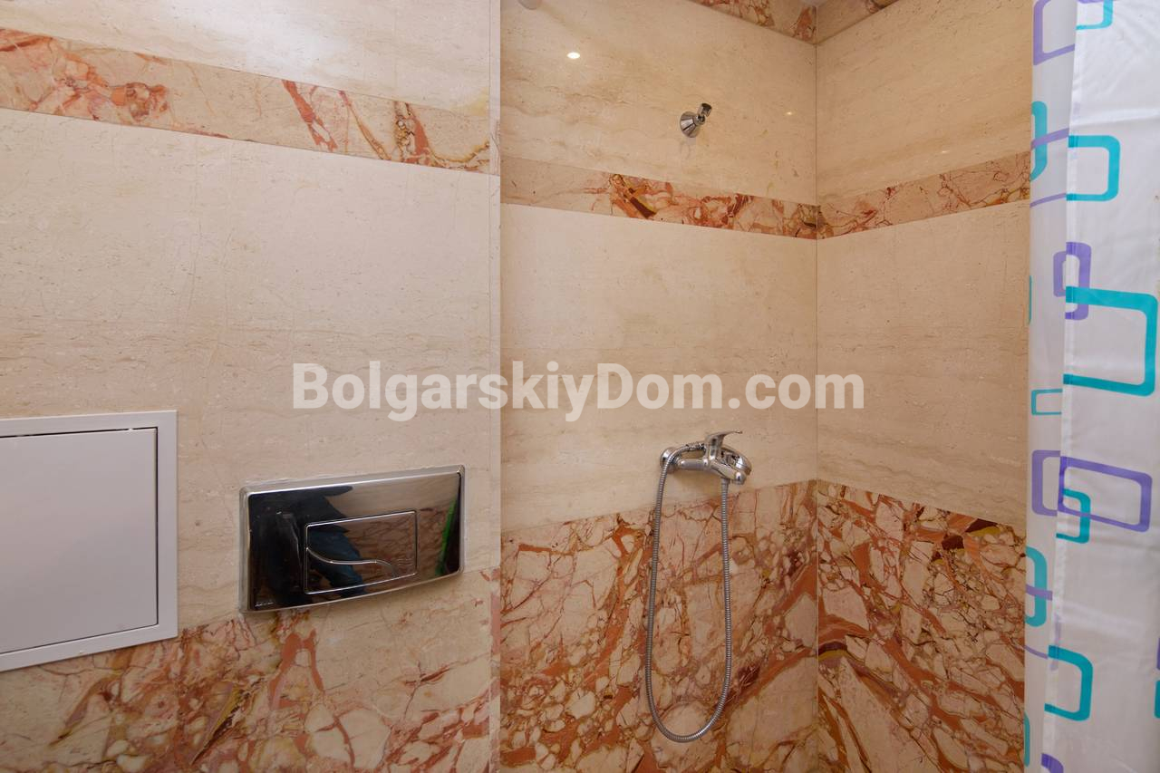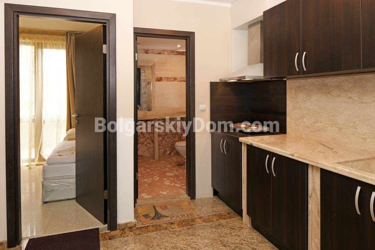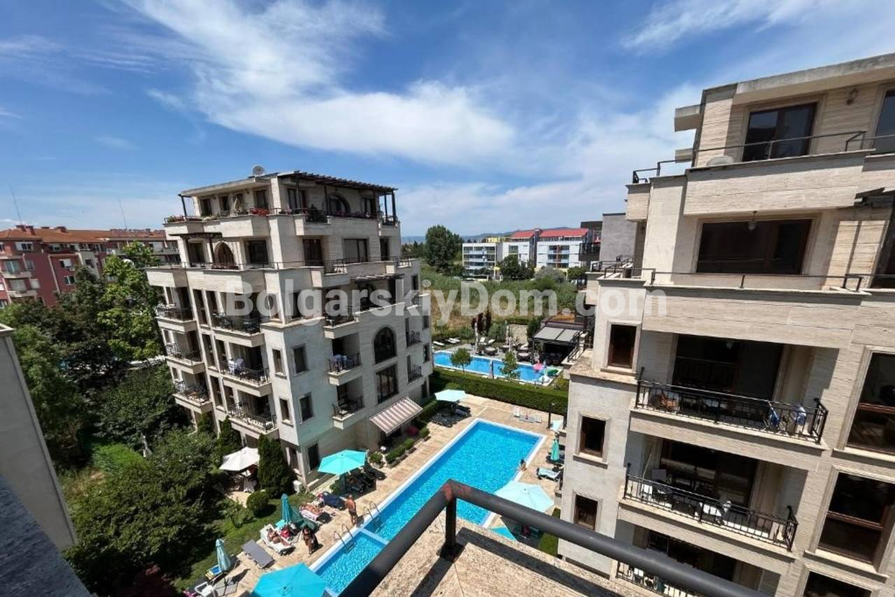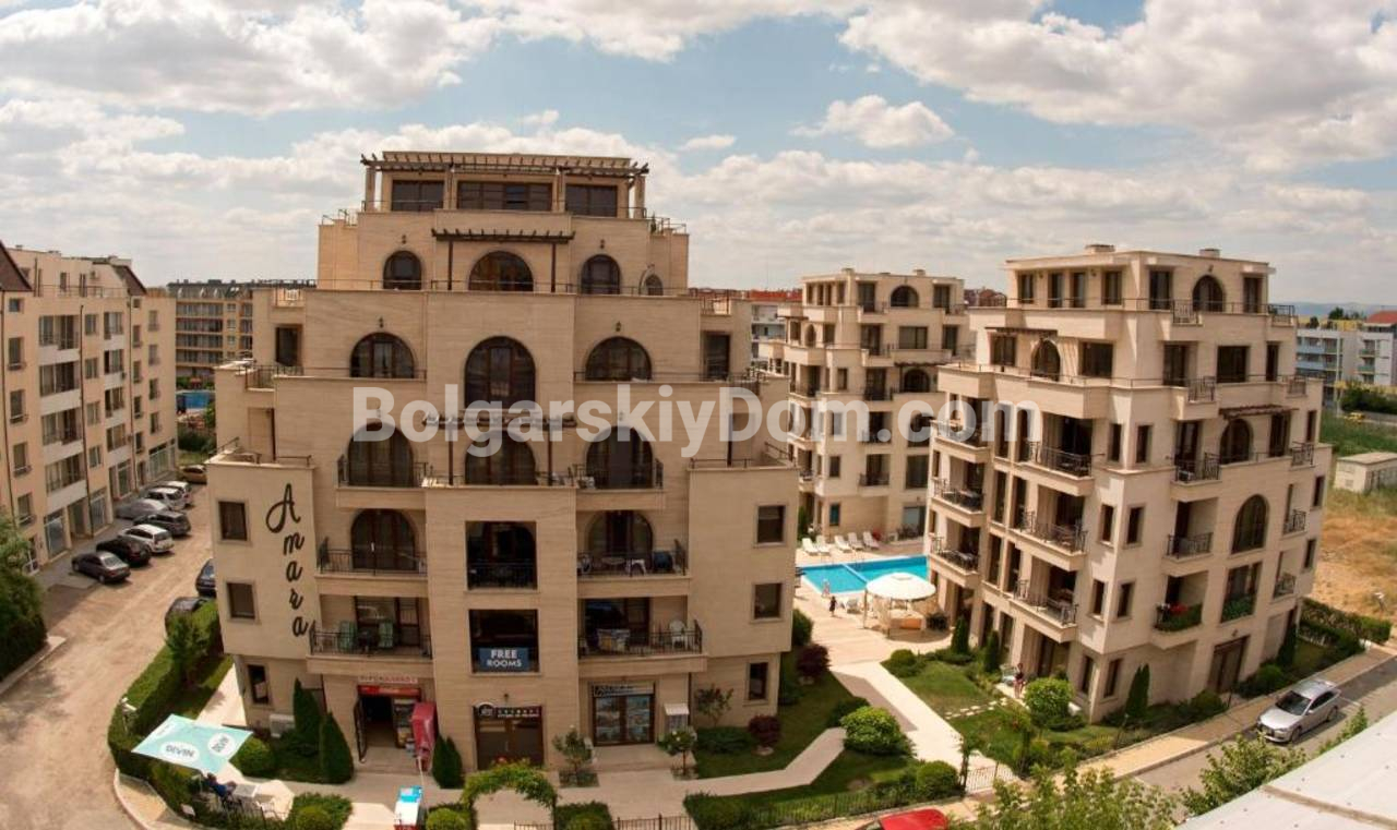 Сам комплекс состоит из трех корпусов, реализованных в средиземноморском стиле и предлагает жителям все необходимое для комфортного отдыха. На территории работают бассейн с баром, магазин и детская площадка, а за порядком круглосуточно следит охрана. До моря всего 600 метров, а до исторического Несебра можно дойти пешком за 15-20 минут. На здание получен Акт 16, такса поддержки составляет 8 евро за метр в год. Есть контролируемый доступ,а это важный пункт, особенно если вы планируете оставлять квартиру на время отсутствия.