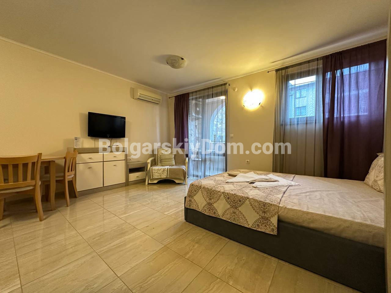 В коллекции Болгарского Дома появилось предложение в одном из самых статусных комплексов на границе Несебра и Равды. Эта уютная квартира студийного формата площадью 46,1 квадратных метров расположена на втором этаже комплекса Эстебан. Планировка позволяет с комфортом обустроить личное пространство для отдыха или жизни у моря. До широкого песчаного пляжа отсюда всего 200 метров, так что прогулки к воде станут приятной ежедневной привычкой. Меблирована, подойдет для ПМЖ.