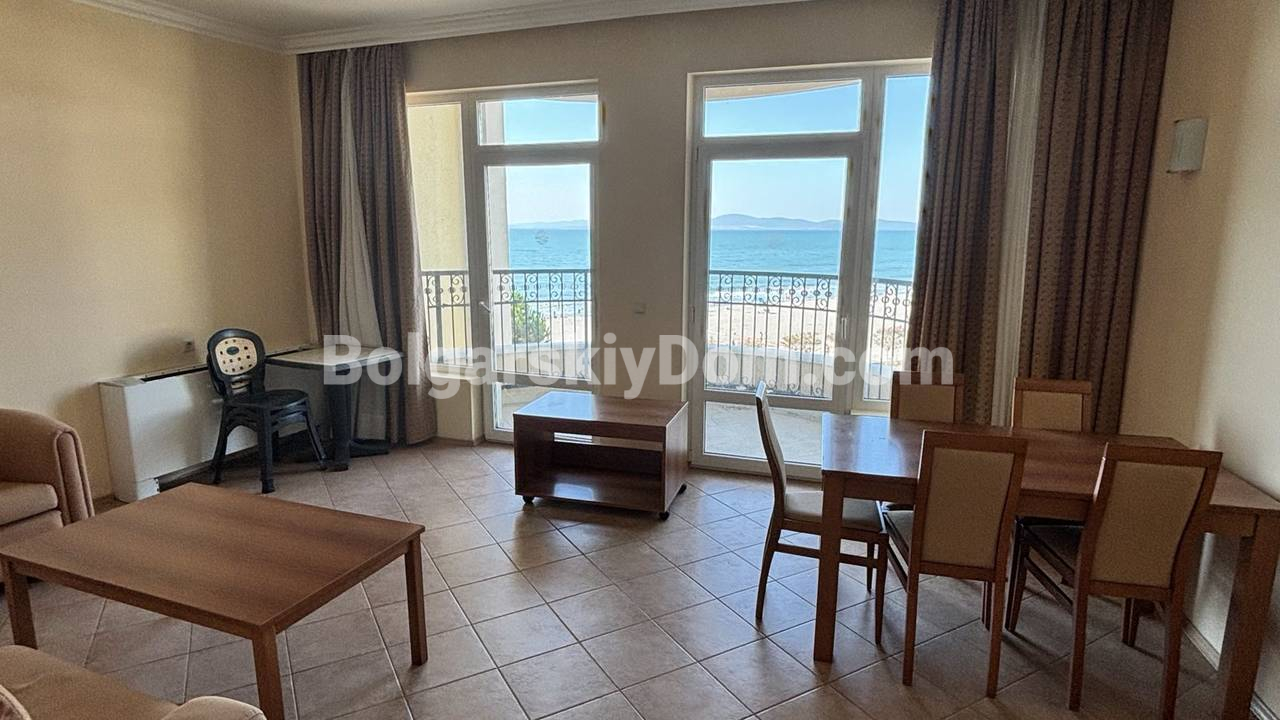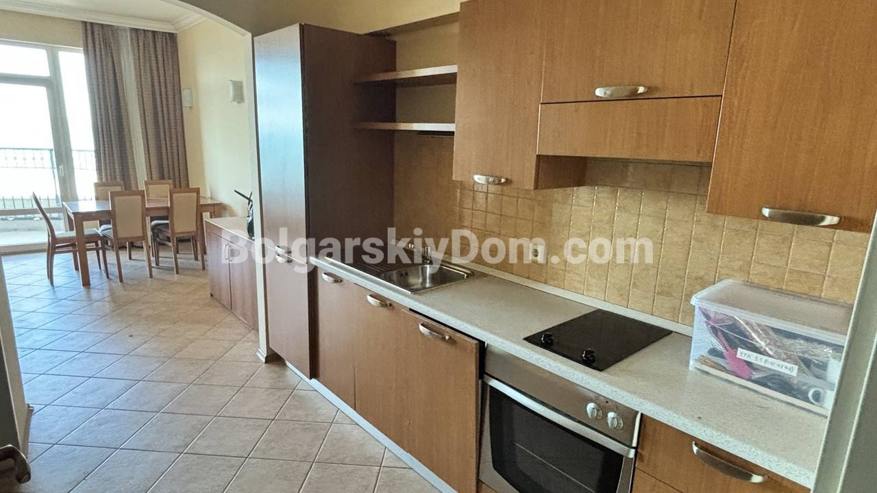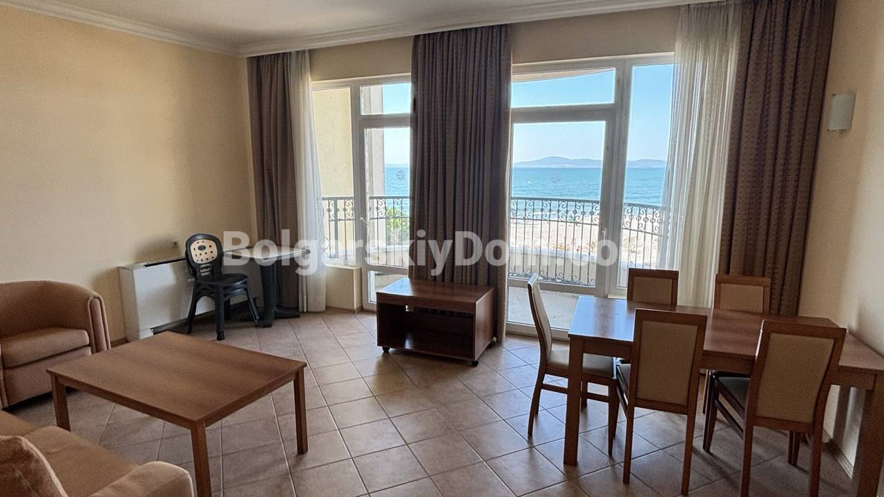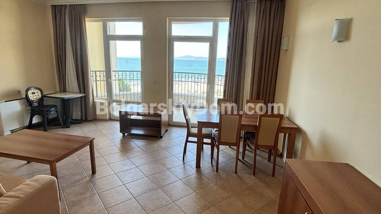Внимание, видовая недвижимость по прайсу на 30% ниже аналогичных объектов! В Помории, прямо у кромки моря, в коллекции Болгарского Дома появилось предложение для любителей настоящего простора. Эта двухкомнатная квартира площадью 88 квадратных метров находится на третьем этаже элитного комплекса на первой линии. Главная ценность здесь - огромная терраса с панорамным видом на залив, где можно проводить вечера под шум прибоя. Планировка эргономична: светлая гостиная с кухонным блоком, уютная спальня и редкий бонус для курортной недвижимости - отдельная гардеробная комната. Жилье полностью укомплектовано мебелью и техникой, поэтому заехать в новый дом можно сразу после сделки.