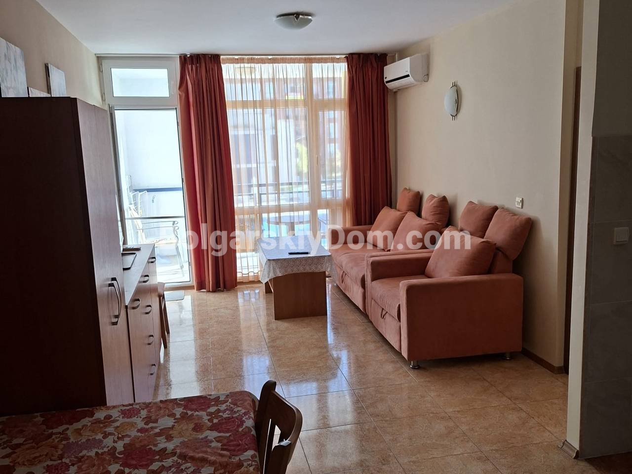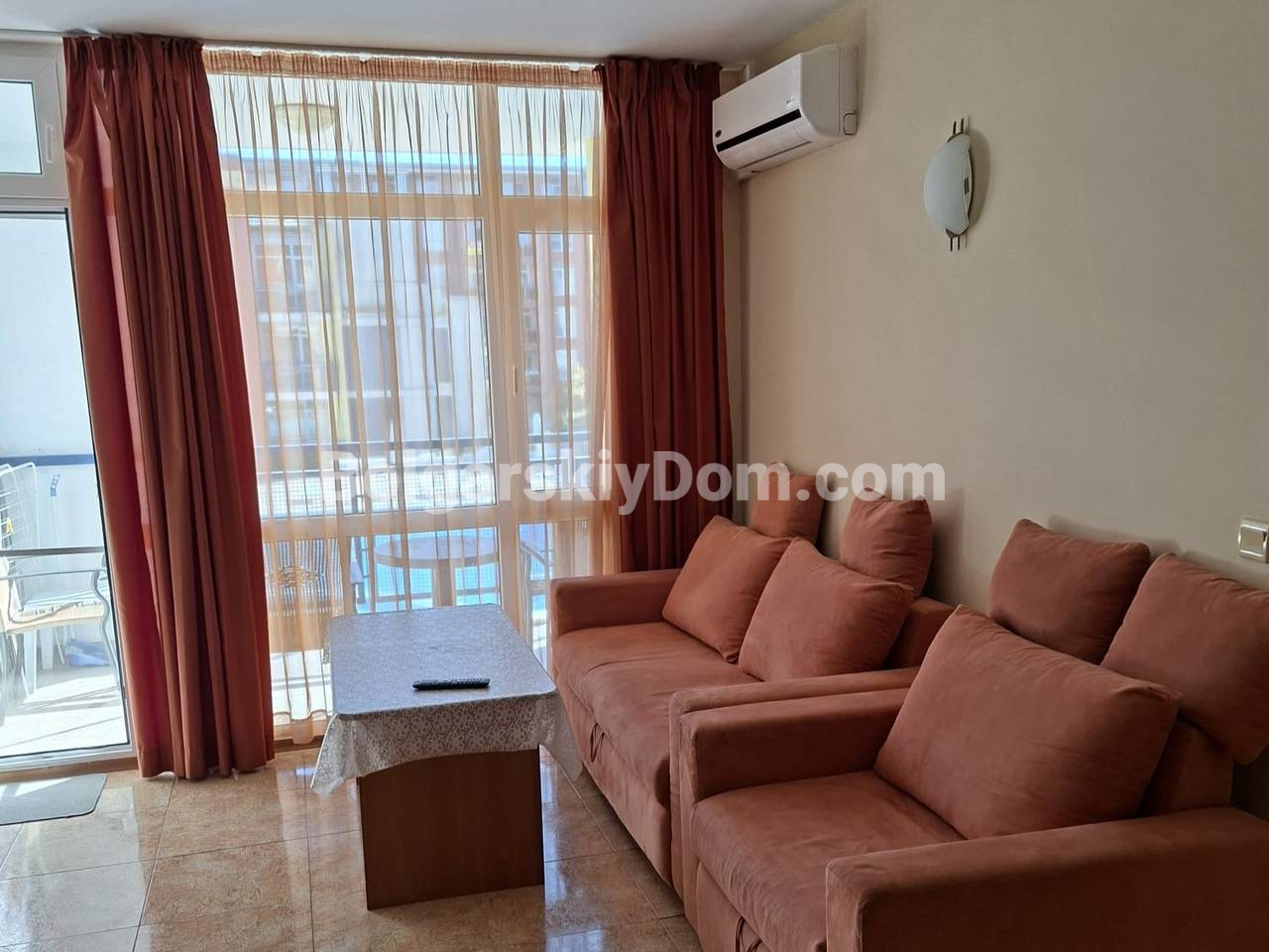 Обновление каталога вторичной недвижимости от Болгарского Дома В тихой части Солнечного Берега, в квартале Пясците, наша команда подготовила предложение в комплексе Элит 4. Это двухкомнатная квартира площадью 67 квадратных метров, расположенная на втором этаже кирпичного здания. Планировка отличается редким для этого сегмента удобством: помимо просторной гостиной с кухонной зоной и отдельной спальни, в распоряжении владельцев сразу два полноценных санузла. Квартира находится в хорошем жилом состоянии и полностью укомплектована мебелью и техникой. Напишите своему агенту, чтобы согласовать время для осмотра.