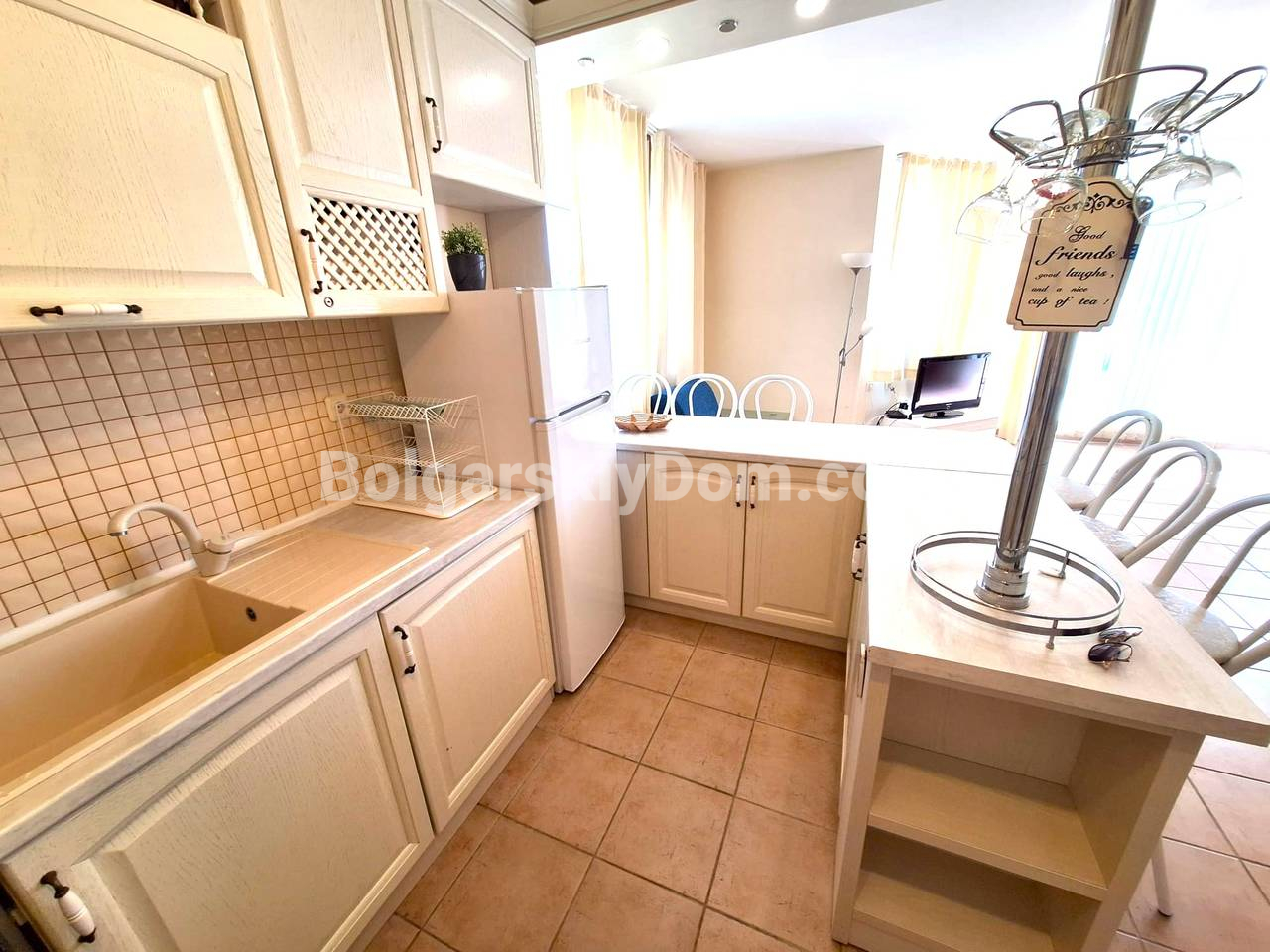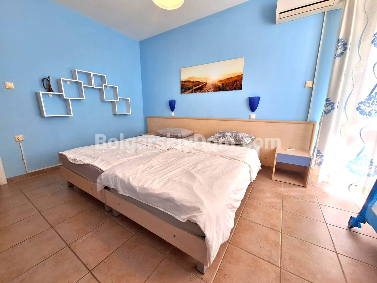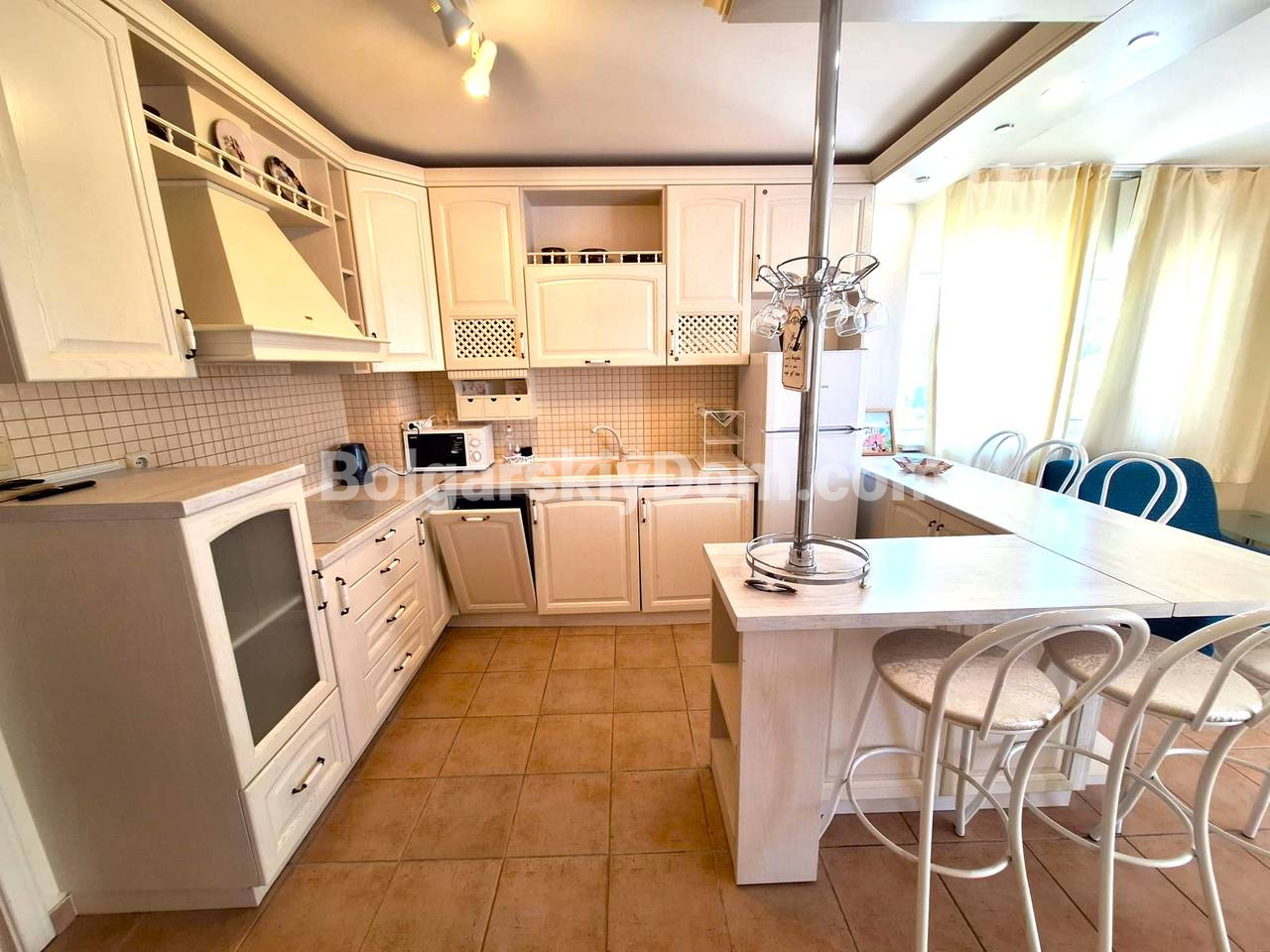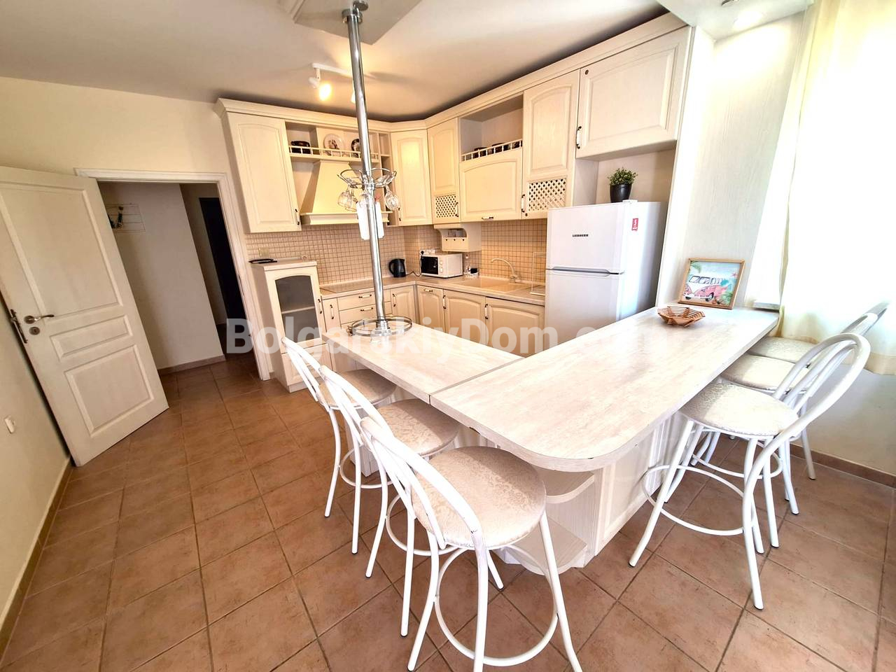 Эксперты Болгарского Дома подготовили эксклюзивное предложение в южной части Солнечного Берега - просторную трехкомнатную квартиру в комплексе Бриз, и она готова к заезду прямо сейчас! На площади 109 кв.м. удалось создать по-настоящему комфортное пространство для жизни: здесь вы найдете огромную гостиную, две светлые спальни и весомое преимущество - два полноценных санузла. Квартира расположена на втором этаже и продается в отличном состоянии, полностью укомплектованная мебелью и качественной бытовой техникой, включая посудомоечную машину. Изюминка объекта - масштабный балкон с видом на бассейн, который легко превращается в уютную летнюю столовую для семейных завтраков на воздухе.