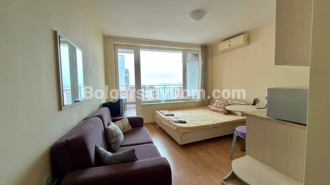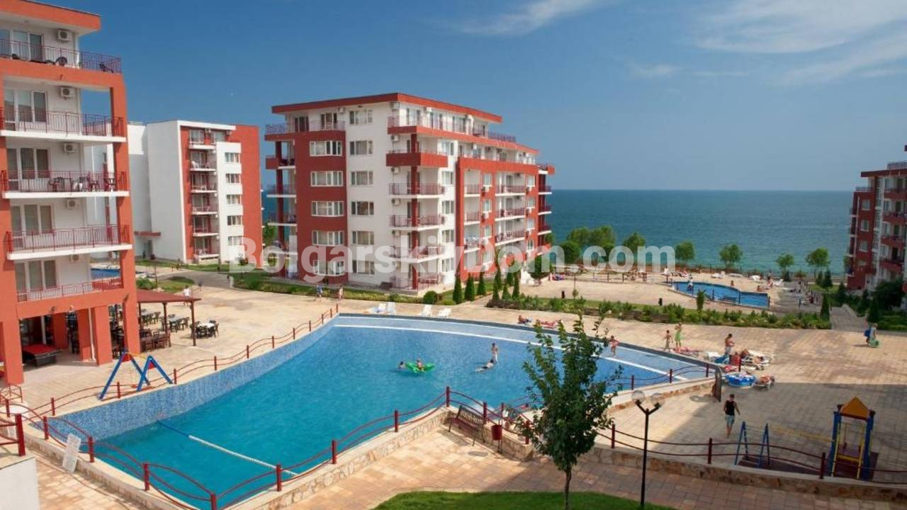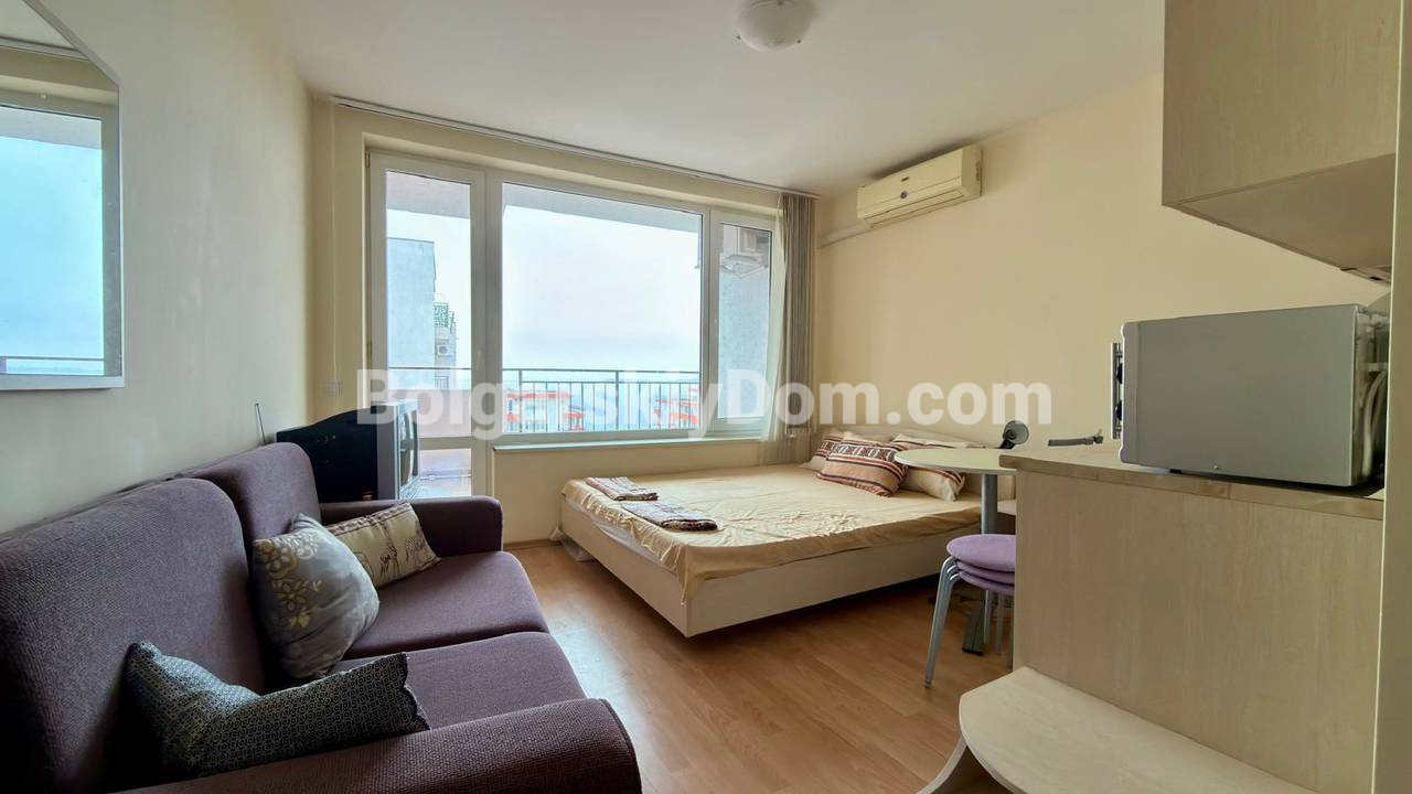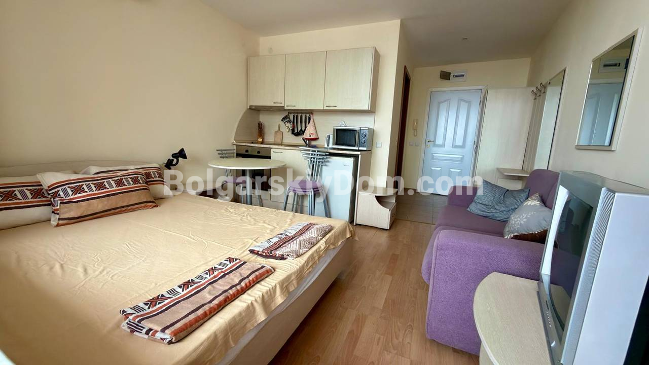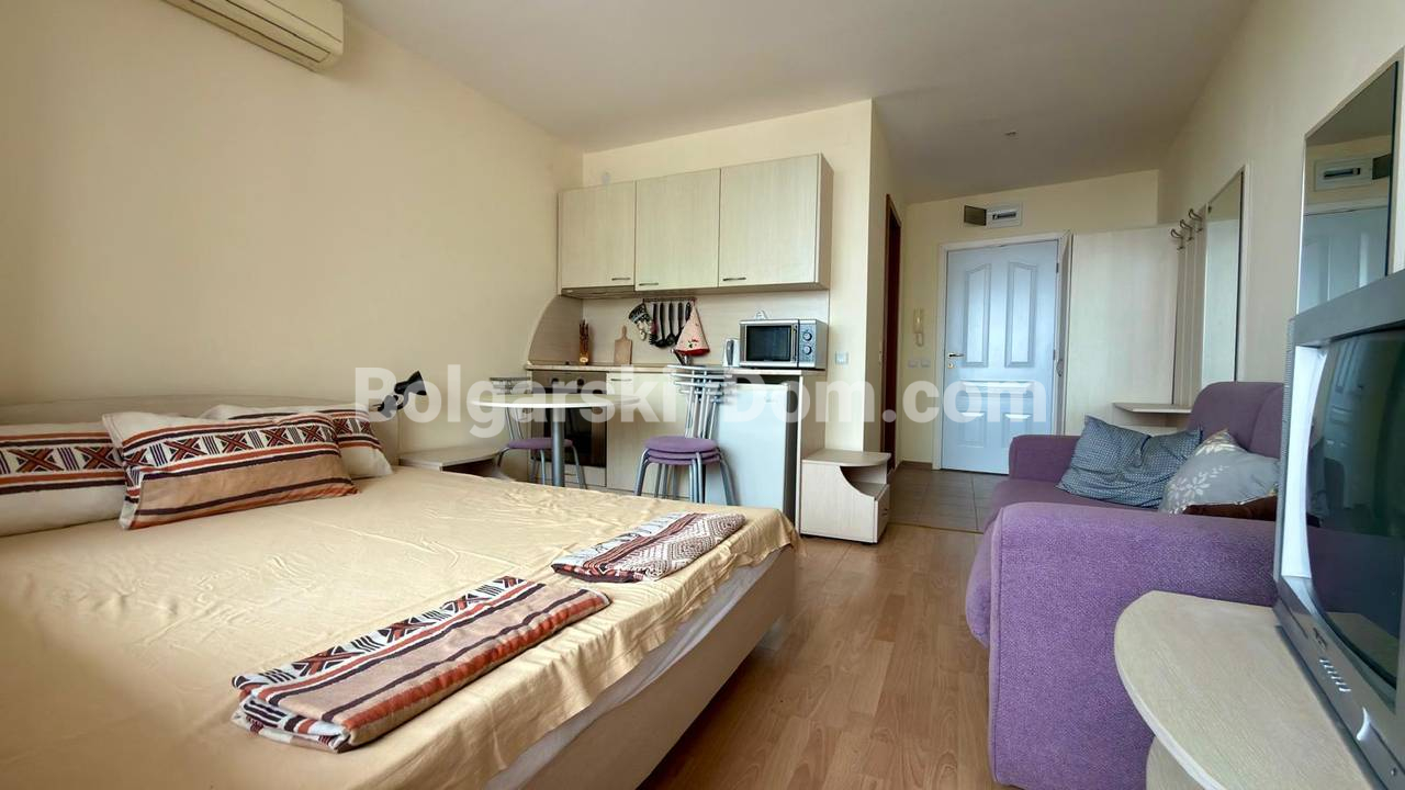 Ищете ликвидную квартиру у моря? Пополнение каталога именно в этой серии вторичных объектов! Команда Болгарского Дома представляет компактный и функциональный вариант жилья на первой линии в Святом Власе. Студийная квартира площадью 33 кв.м. расположена на четвертом этаже престижного комплекса Марина Форт. Главное преимущество этого объекта - прямой вид на морскую гладь, которым можно наслаждаться каждый день. Жилье полностью обустроено и готово к приему новых владельцев. Всего 150 метров отделяют ваш порог от чистого песчаного пляжа Робинзон, до которого можно дойти за пару минут прогулочным шагом.